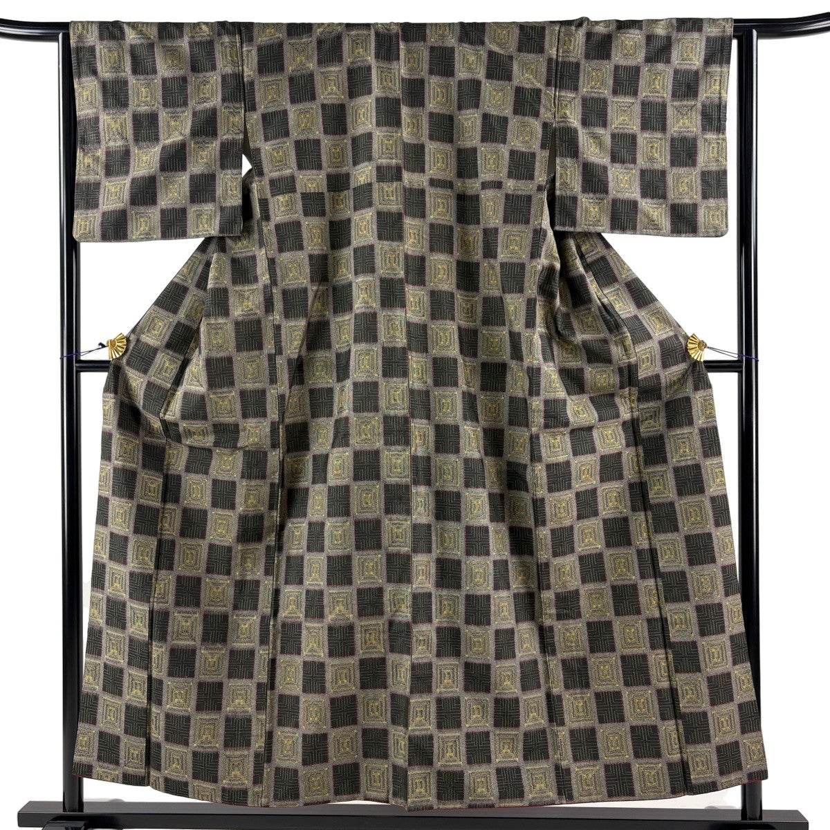 【美品】 紬 身丈161.5cm 裄丈62.5cm S 袷 幾何学模様 灰色 正絹 優品