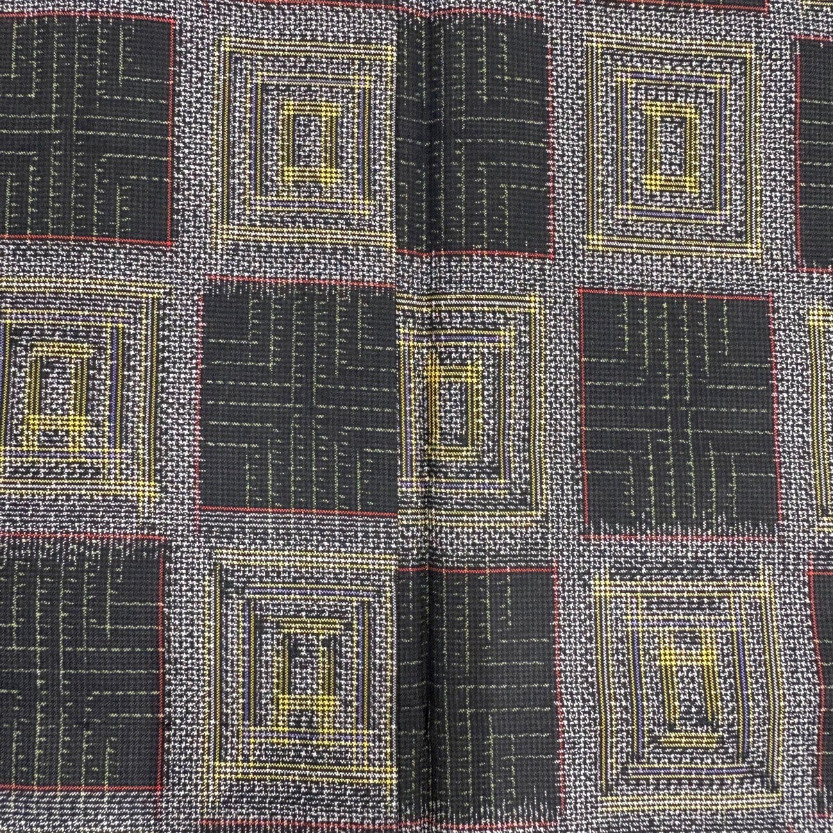 男着物 身丈140cm 裄丈67.5cm S 薄物 夏紬 幾何学模様 黒 正絹 秀品