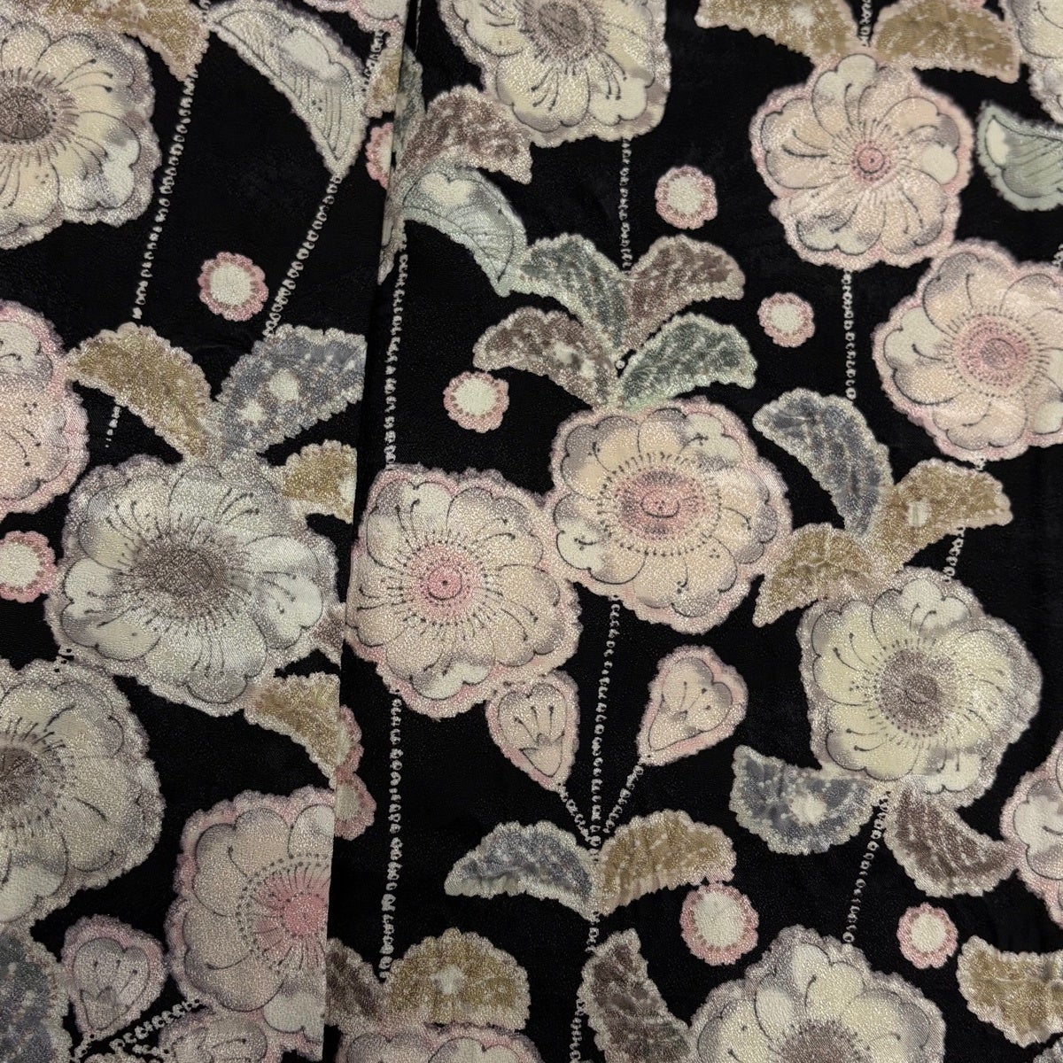 【美品】 小紋 身丈156.5cm 裄丈63.5cm S 袷 桜 地紋 灰緑 正絹 秀品