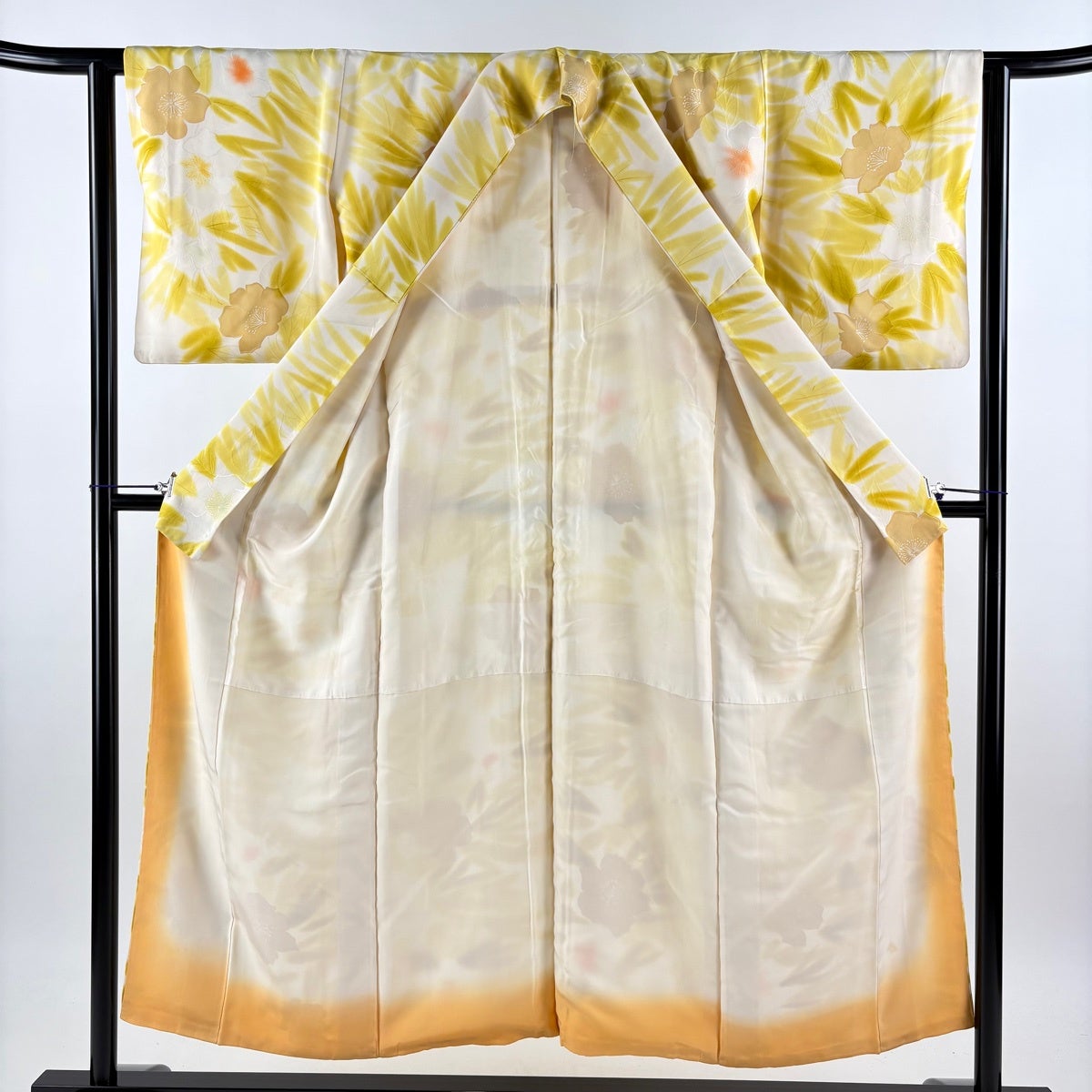 振袖 身丈157cm 裄丈62cm S 袷 花車 ヱ霞 金彩 ぼかし クリーム 正絹 秀品