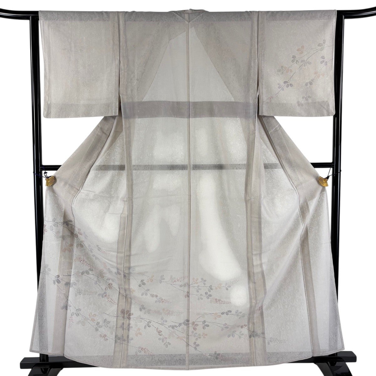 【美品】 付下げ 身丈160cm 裄丈63.5cm S 紗袷 萩 流水 金彩 灰茶 正絹 名品