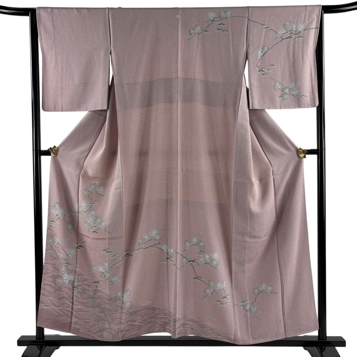 訪問着 身丈155.5cm 裄丈63cm S 袷 松竹梅 菊 金銀彩 刺繍 灰紫 正絹 秀品 一つ紋