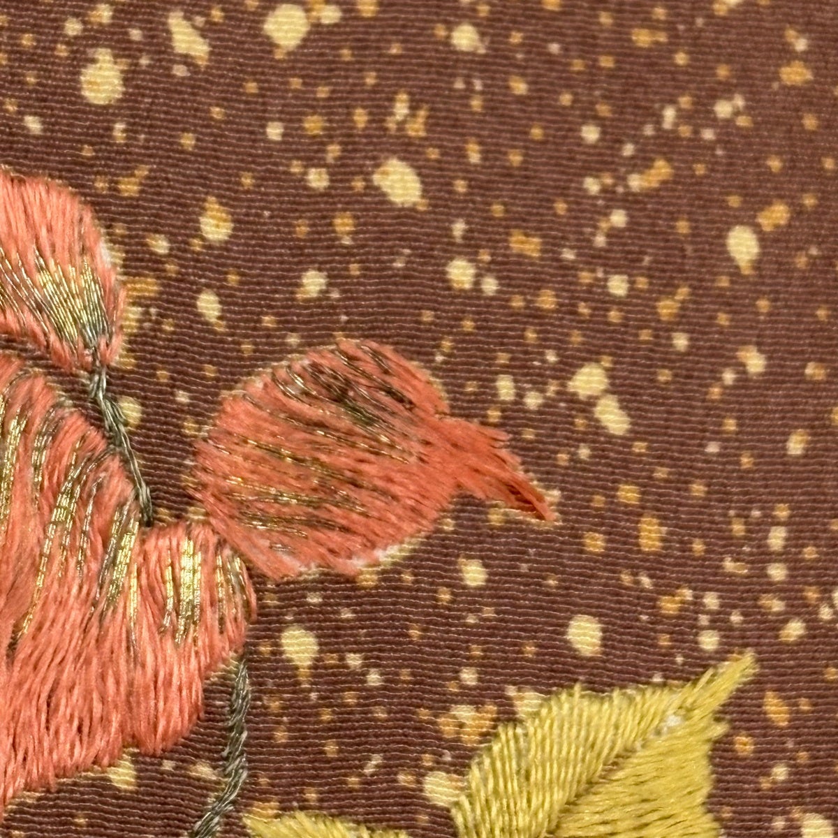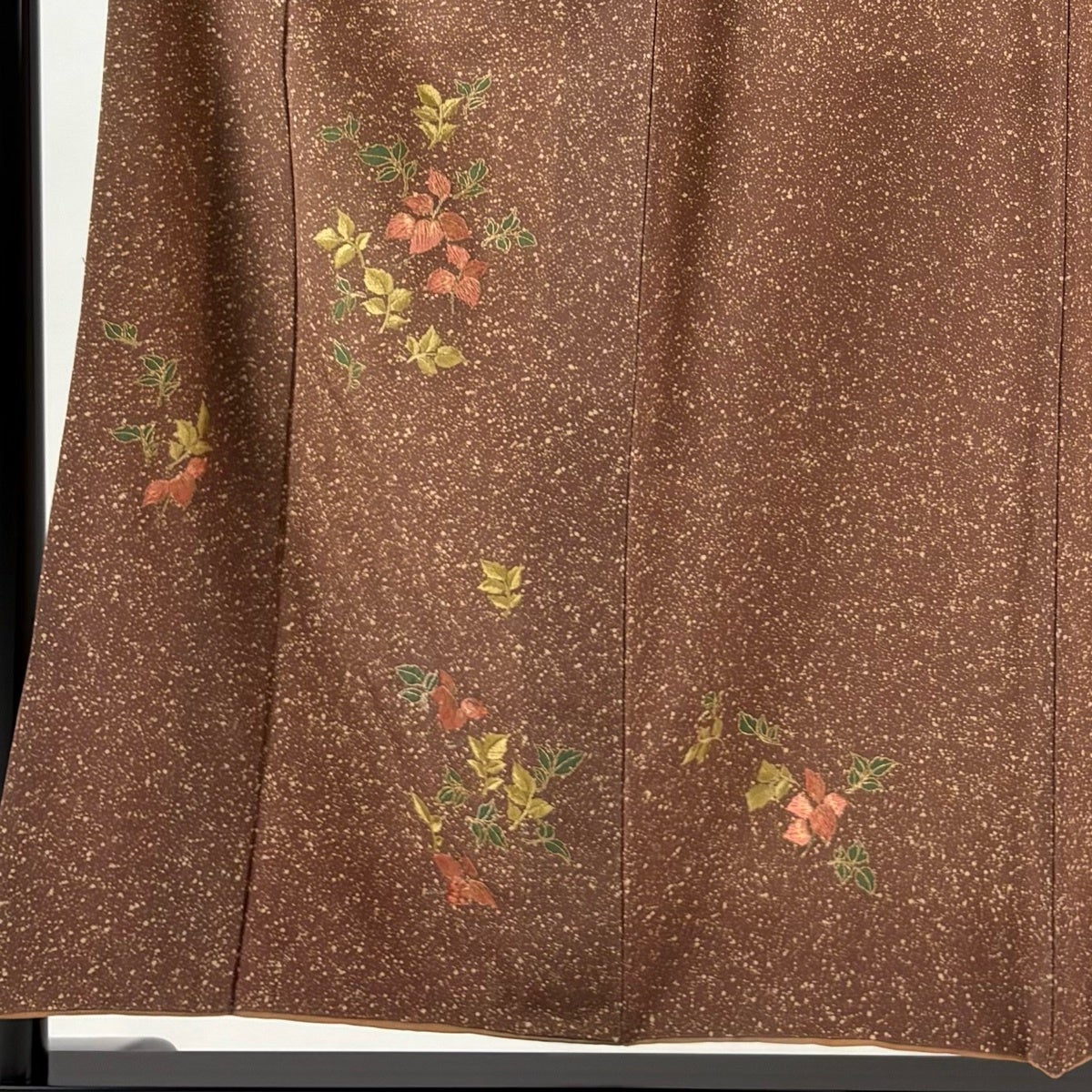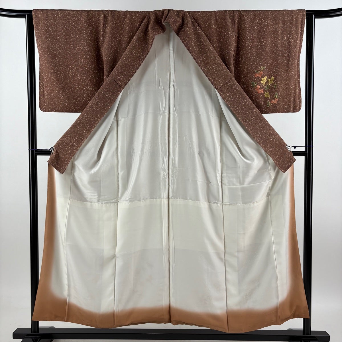 付下げ 身丈152cm 裄丈62.5cm S 袷 花菱 地紋 刺繍 ぼかし 茶色 正絹 秀品 一つ紋
