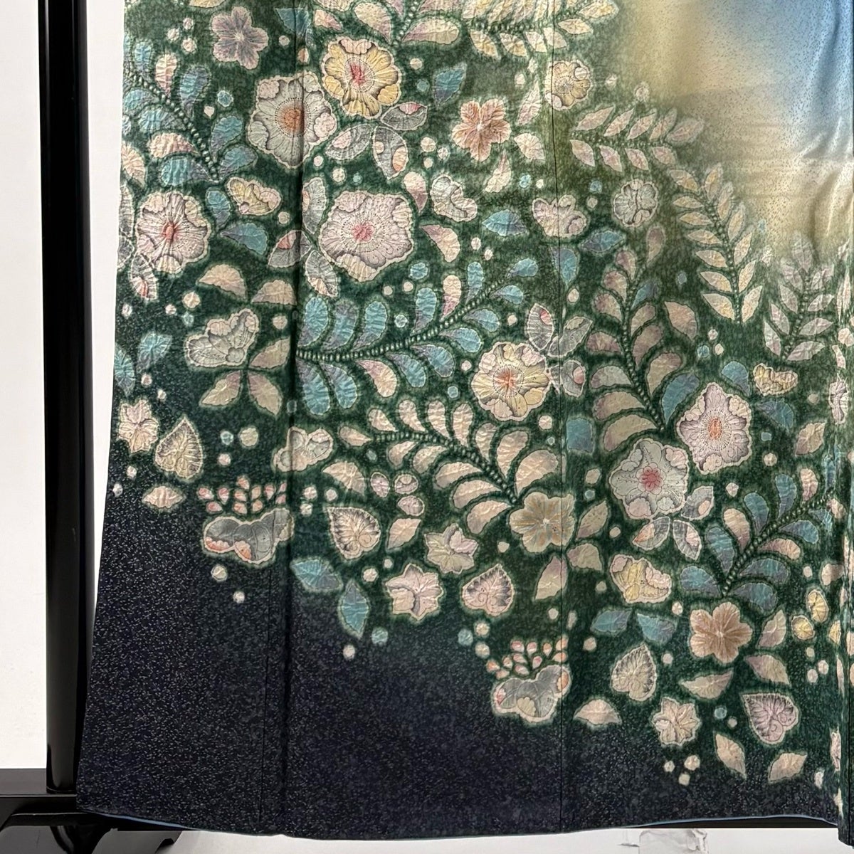 付下げ 身丈156cm 裄丈62.5cm S 袷 草花 地紋 刺繍 ぼかし 薄緑 正絹 秀品 一つ紋