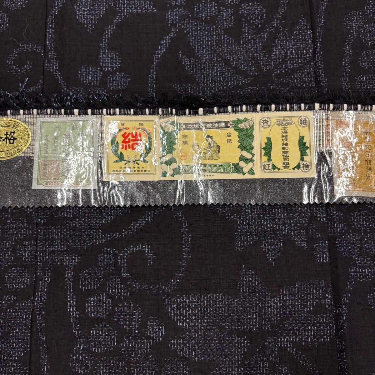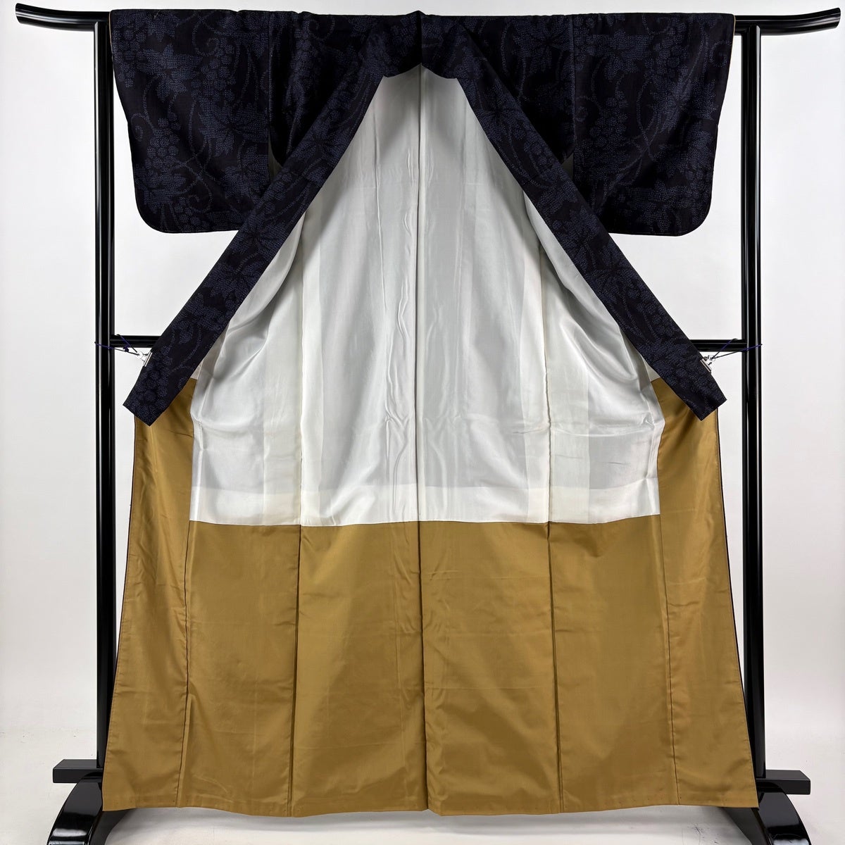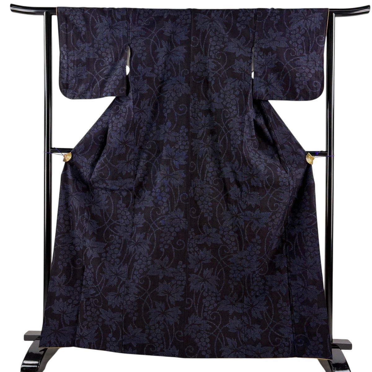 【美品】 結城紬 身丈165cm 裄丈62cm S 袷 本場結城紬 奥順 証紙あり 葡萄唐草 濃紺 正絹 逸品