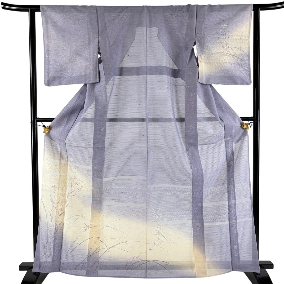 訪問着 身丈155cm 裄丈61.5cm S 袷 四代目上野眞 落款あり 枝梅 流水 金糸 灰色 正絹 逸品
