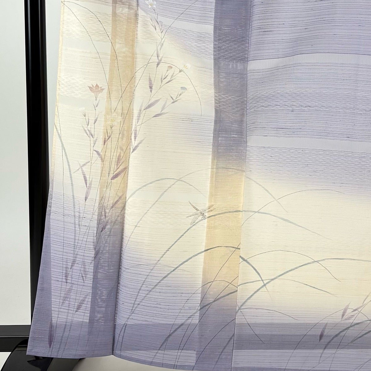 【美品】 訪問着 身丈152.5cm 裄丈63cm S 袷 落款あり 橋 草花 絞り クリーム 正絹 逸品