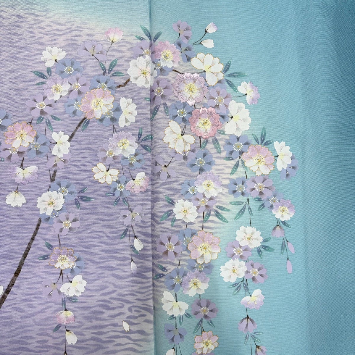 【美品】 訪問着 身丈150cm 裄丈63.5cm S 袷 鴛鴦 辻が花柄 金彩 ぼかし 灰緑 正絹 秀品