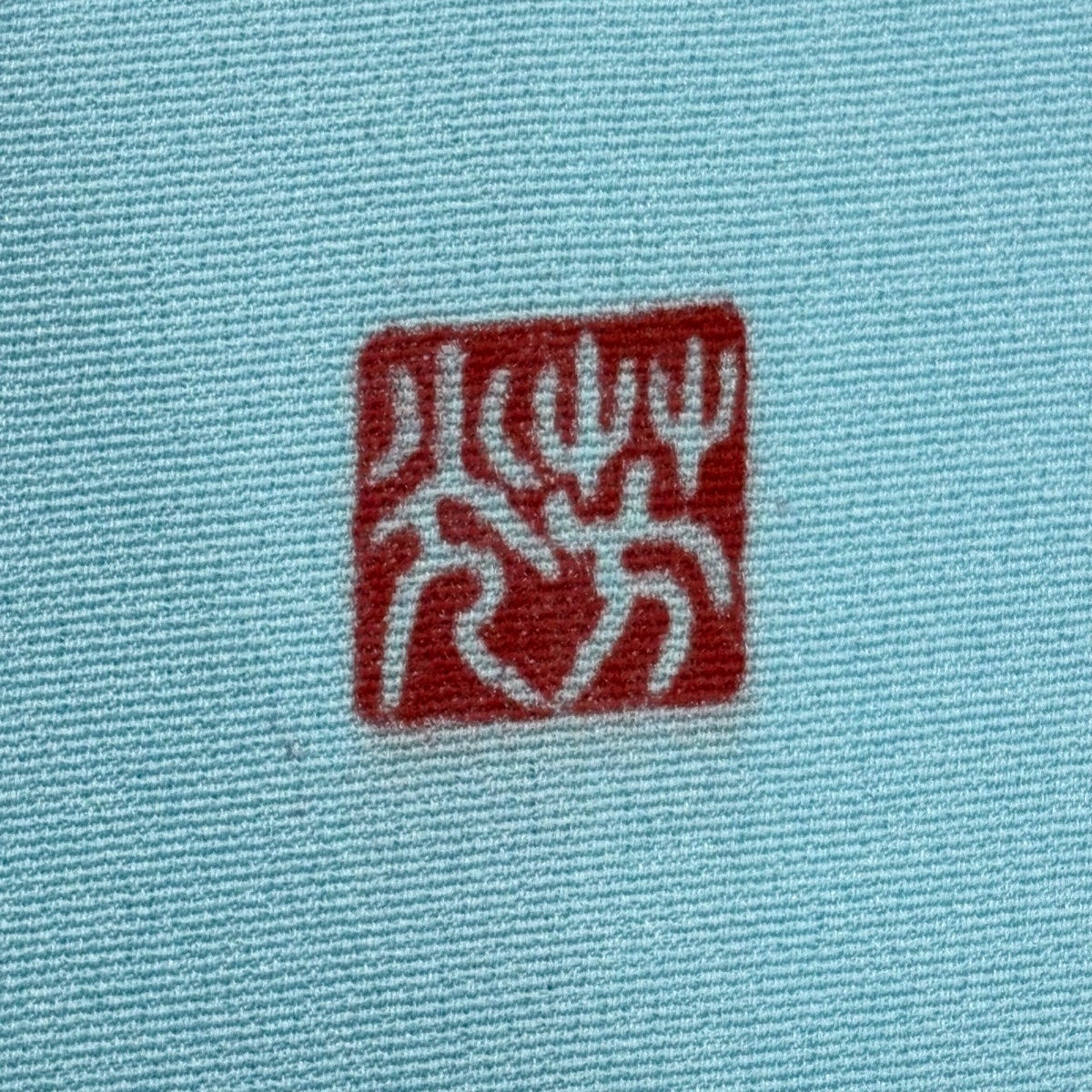 【美品】 小紋 身丈152cm 裄丈62cm S 単衣 牛首紬地 証紙あり 幾何学 青緑 正絹 逸品 一つ紋