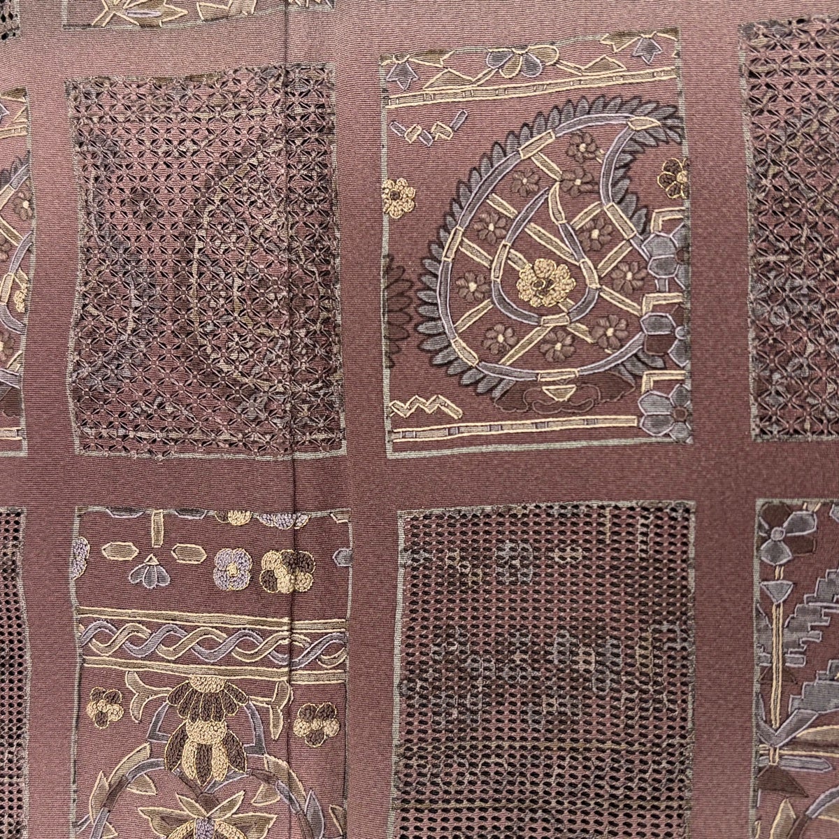 【美品】 付下げ 身丈150cm 裄丈63cm S 袷 ますいわ屋 源氏香 草花 刺繍 総絞り 薄小豆 正絹 秀品