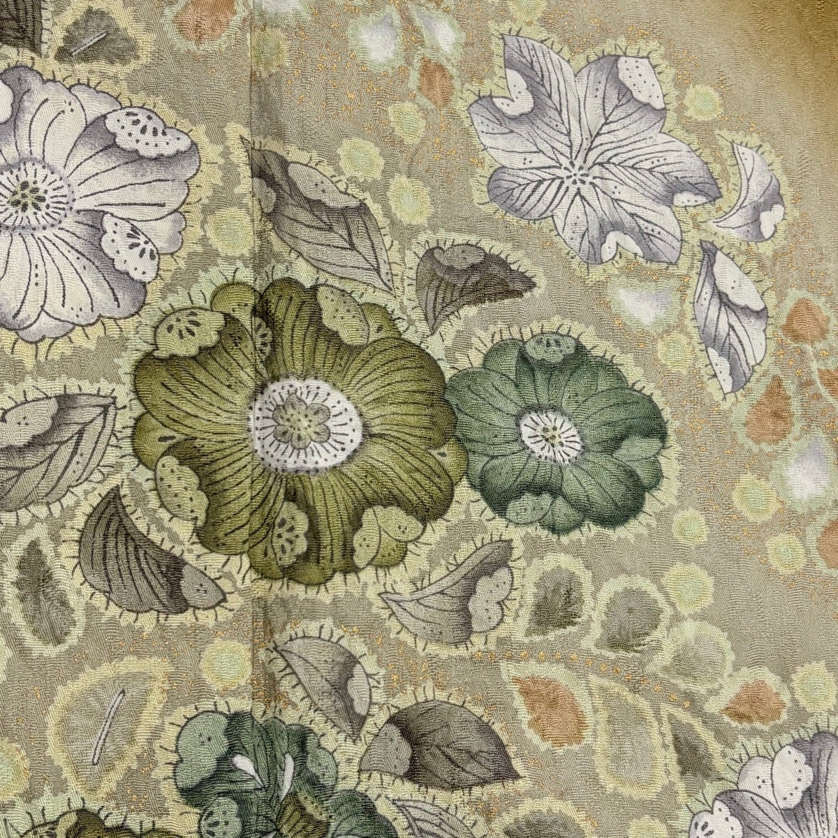 【美品】 訪問着 身丈161.5cm 裄丈63cm S 袷 華文 花唐草 金銀彩 ぼかし ベージュ 正絹 秀品