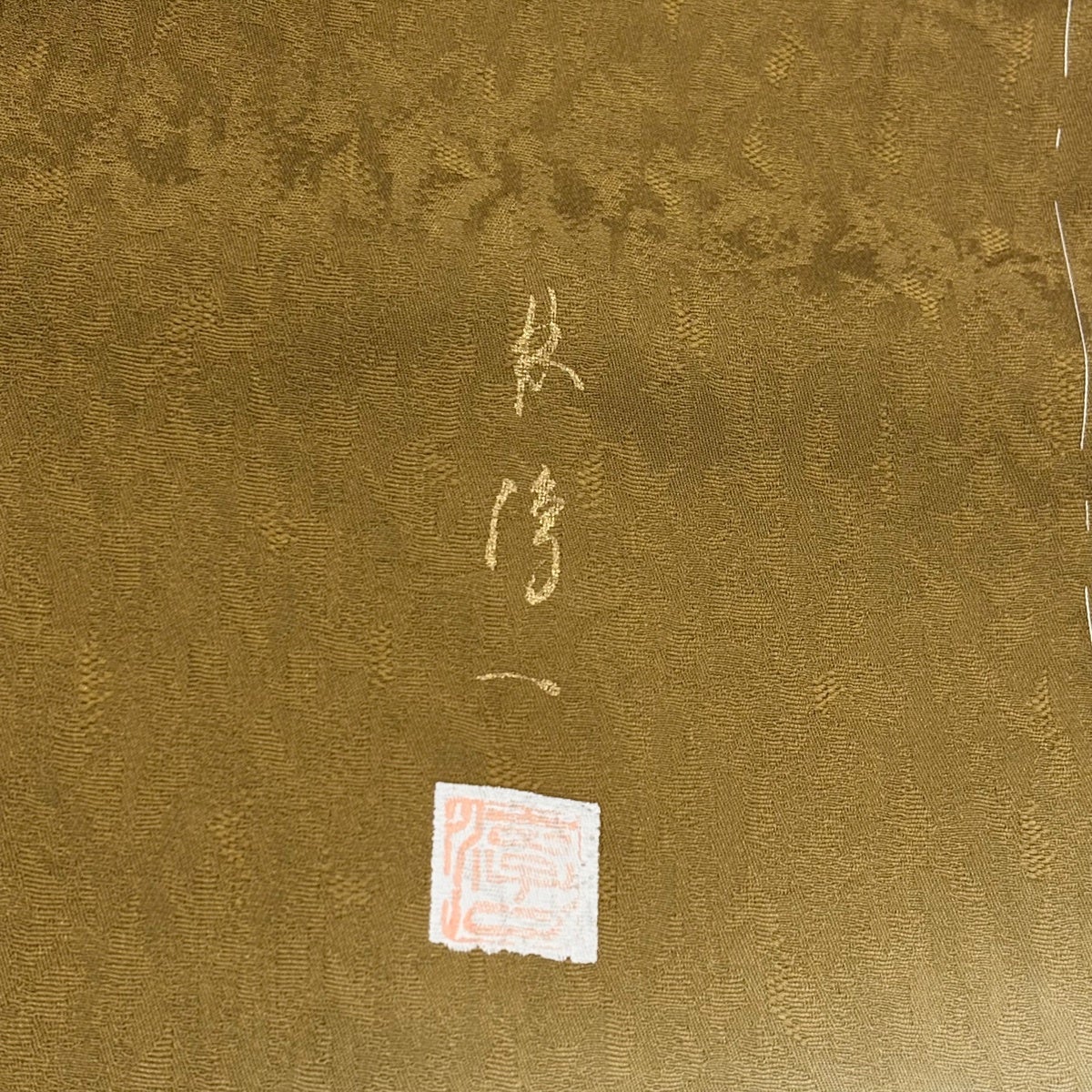 付下げ 身丈152cm 裄丈61cm S 袷 和田光正 落款あり 秋草 短冊 金銀彩 ぼかし 山吹茶色 正絹 名品