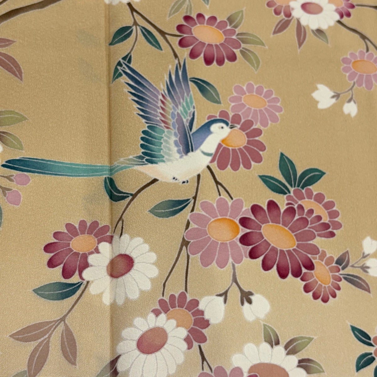 色留袖 身丈156cm 裄丈62cm S 袷 落款あり 枝花 鳥 染め分け ぼかし ベージュ 正絹 秀品 一つ紋