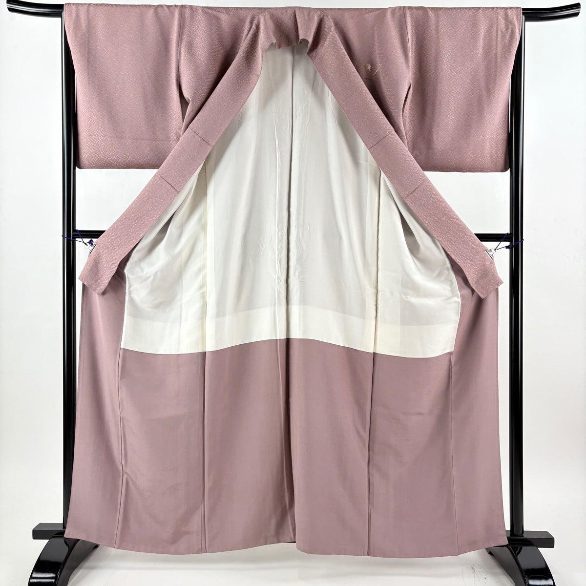 反物 秀品 紬 証紙 草花 薄紫 正絹