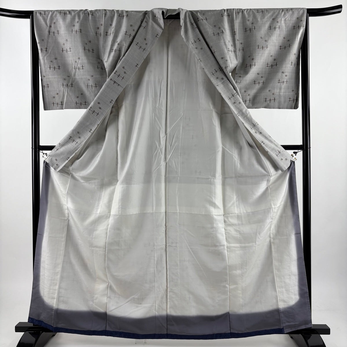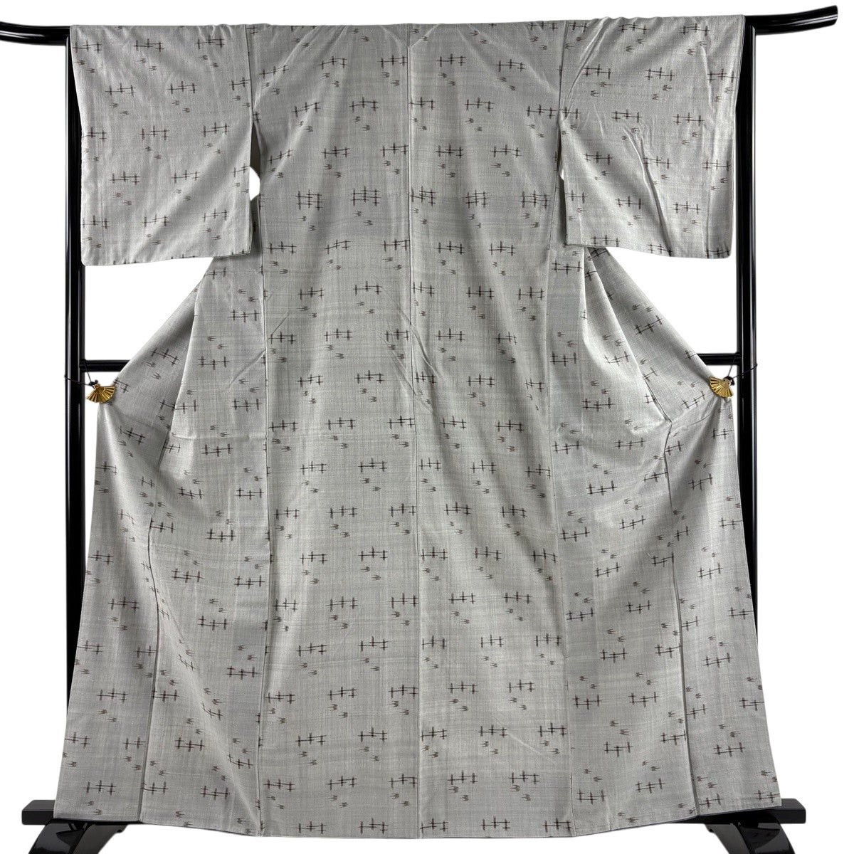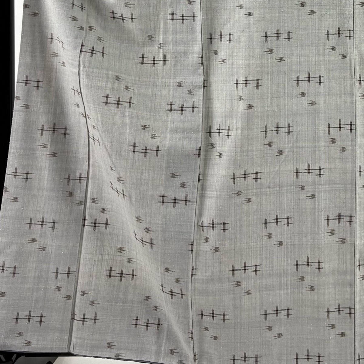 紬 身丈162.5cm 裄丈64cm M 袷 草木染め 本場久米島紬 証紙あり 燕 絣 灰色 正絹 逸品