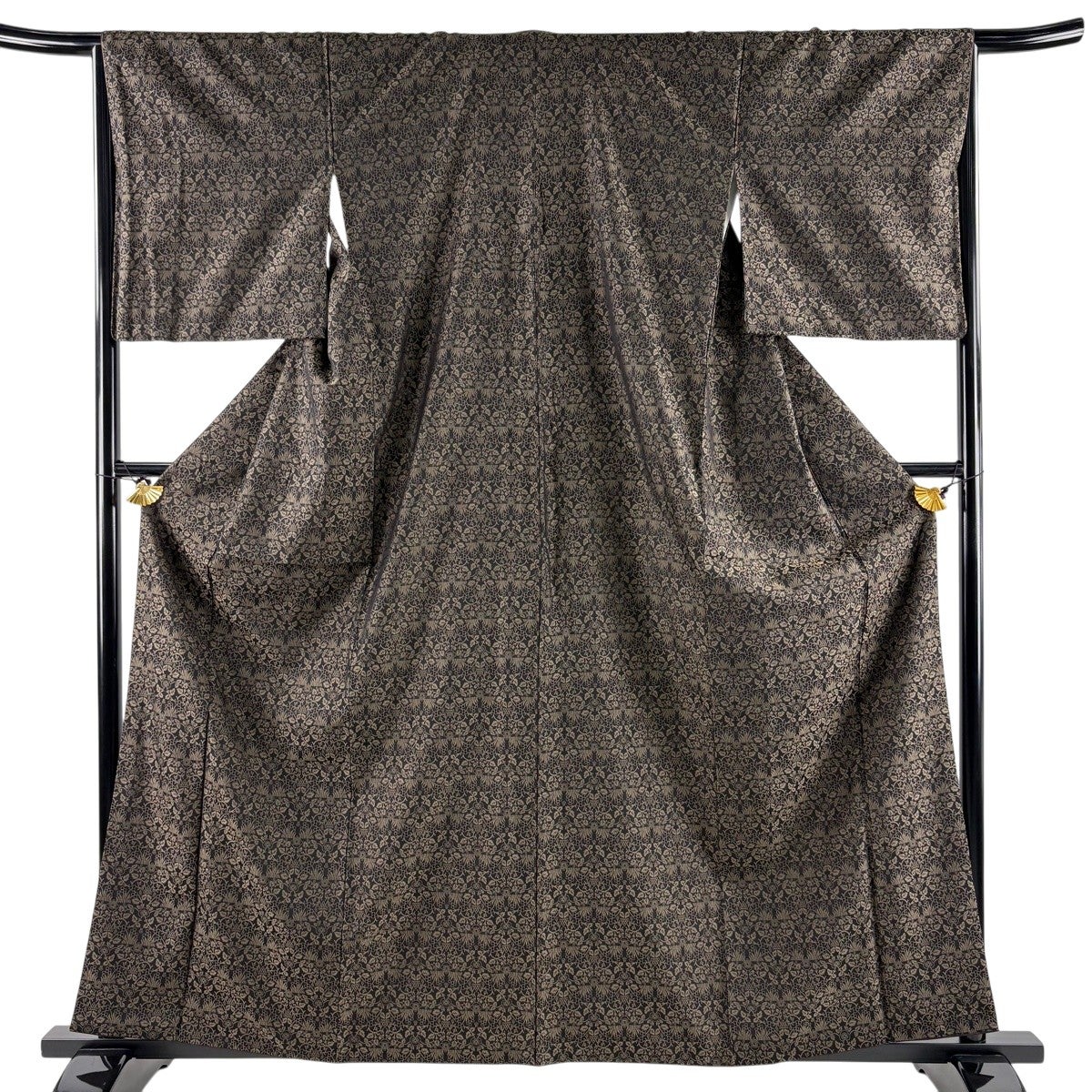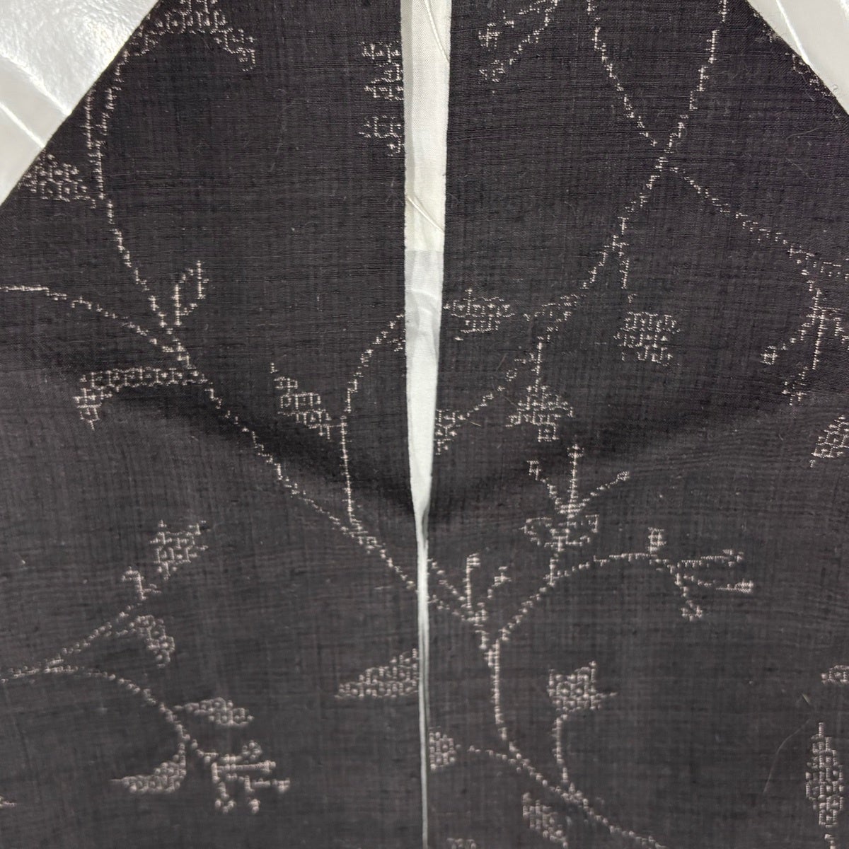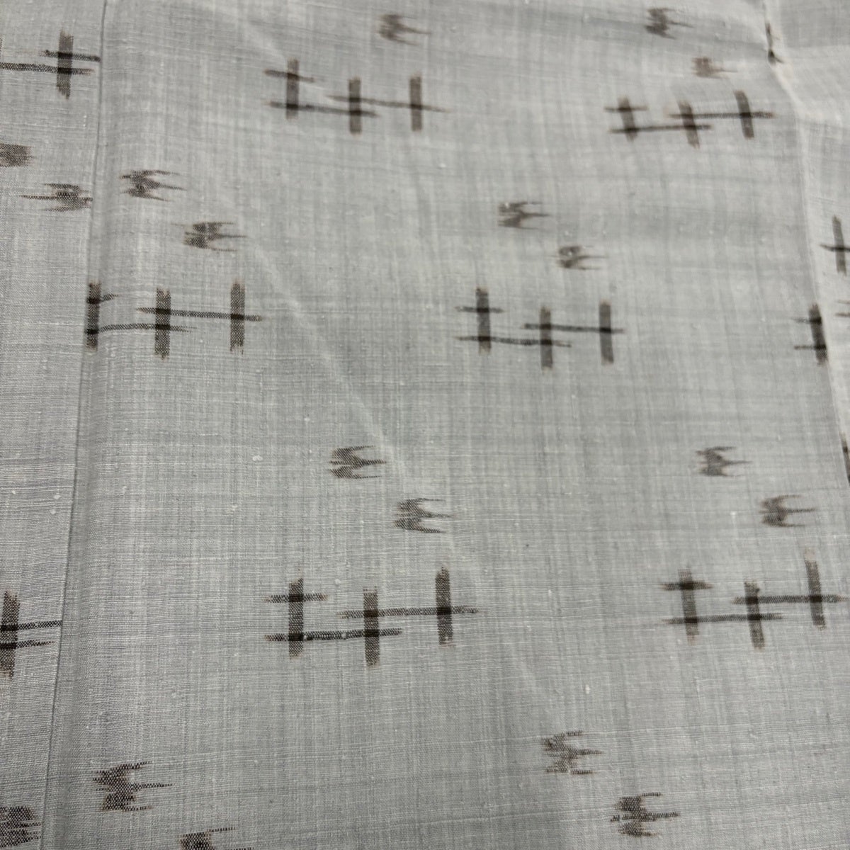 紬 身丈162.5cm 裄丈64cm M 袷 草木染め 本場久米島紬 証紙あり 燕 絣 灰色 正絹 逸品