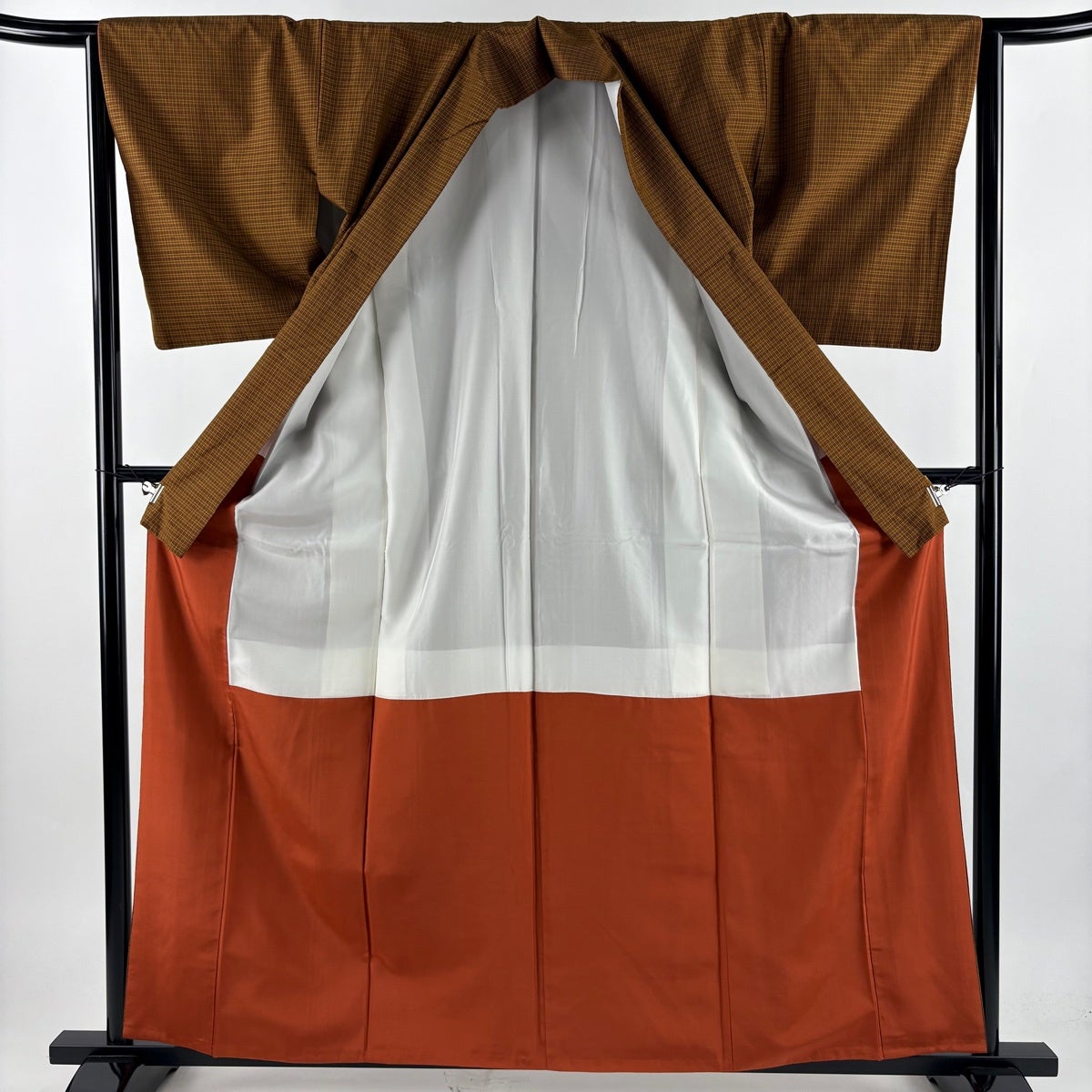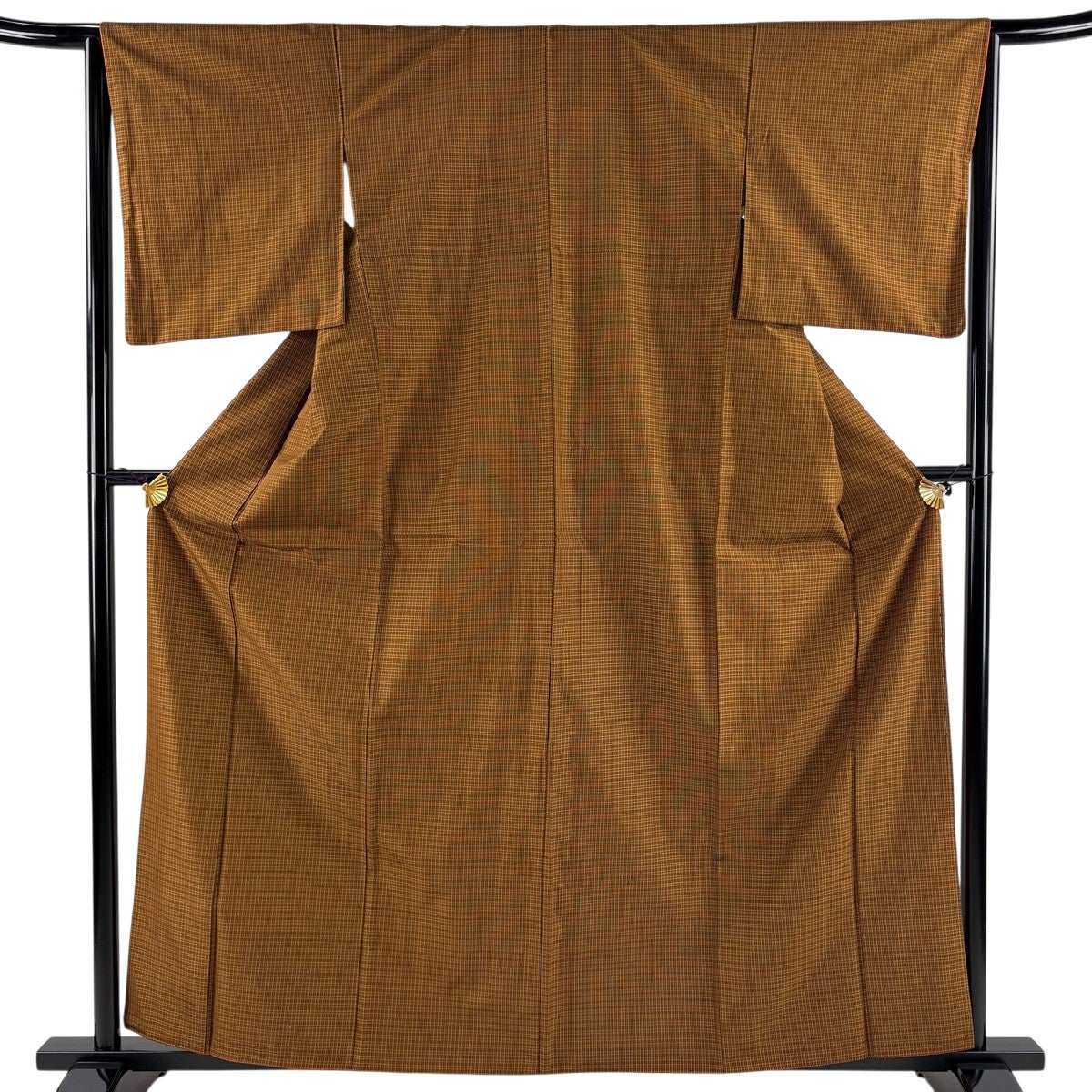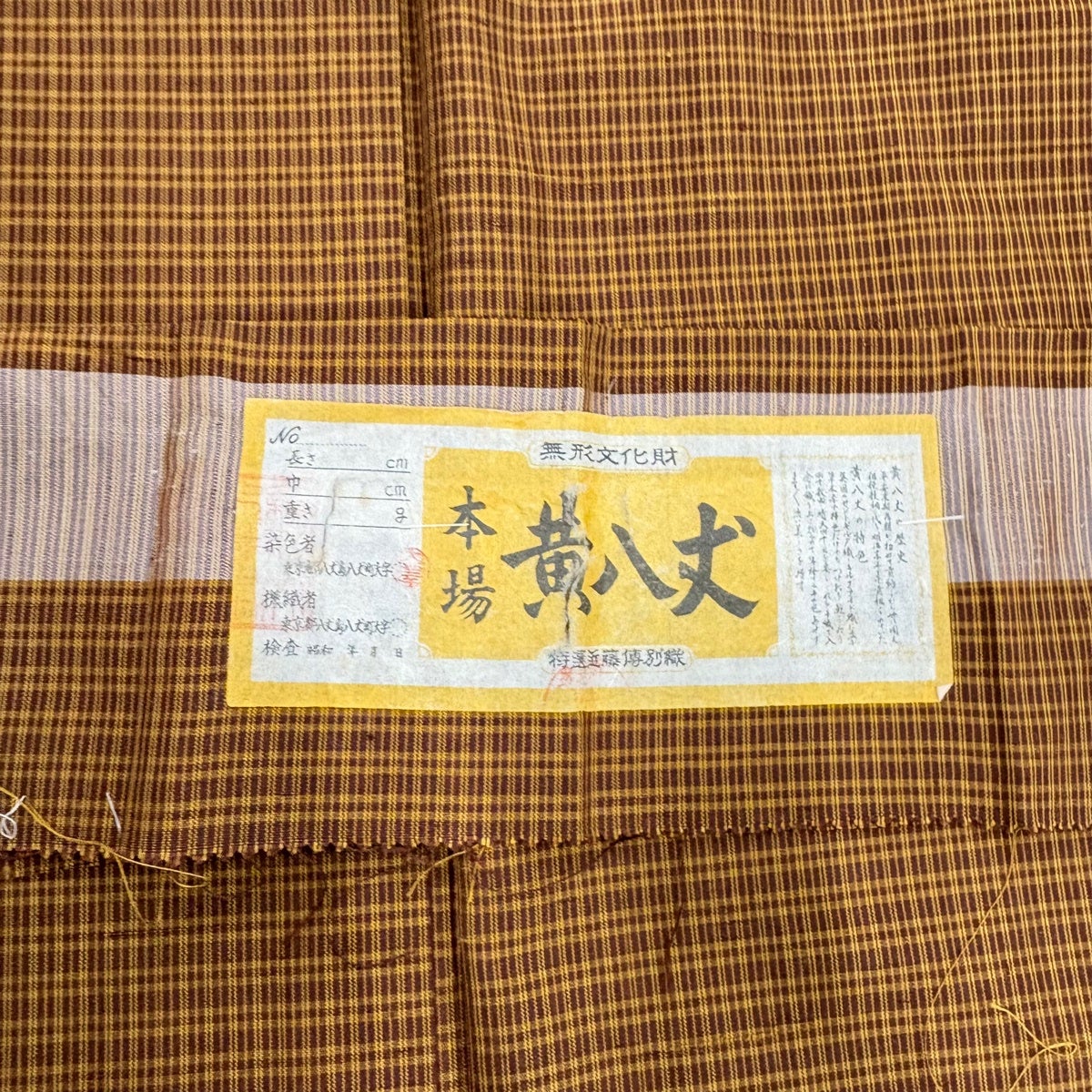 紬 身丈160.5cm 裄丈64.5cm M 袷 本場黄八丈 やまと 証紙あり 格子 茶色 正絹 逸品
