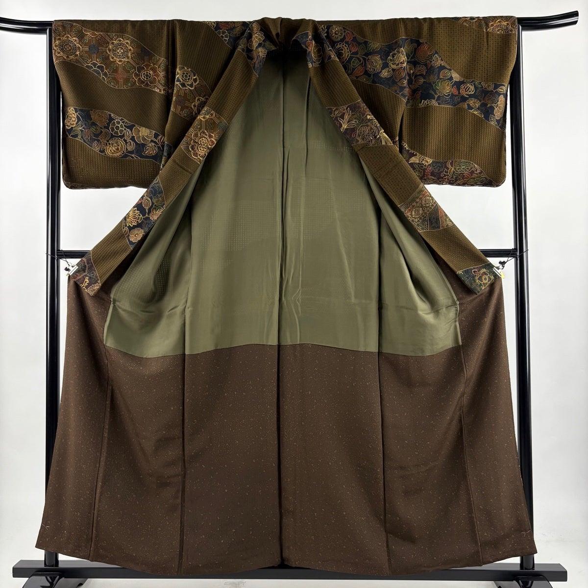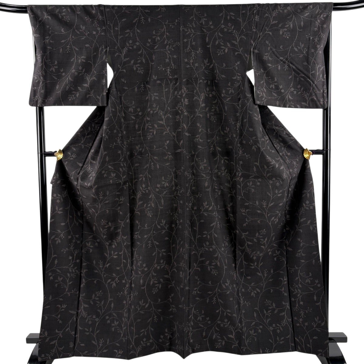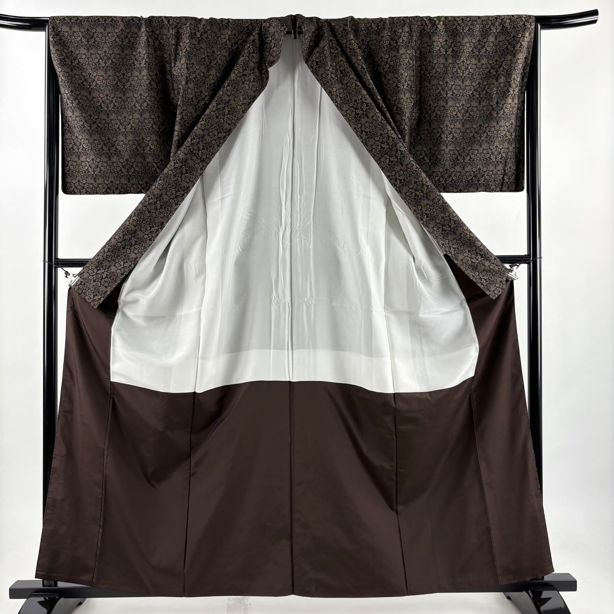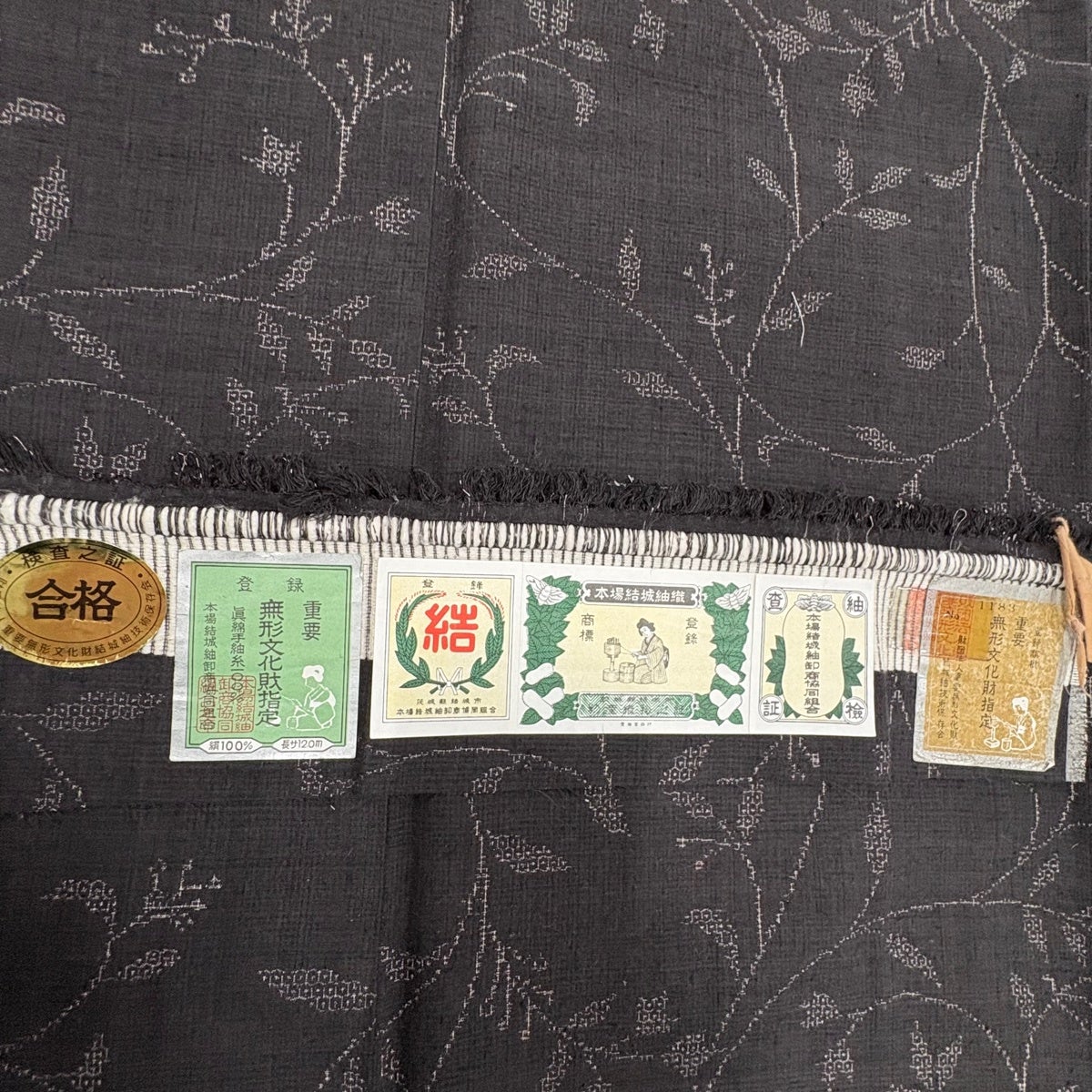 【美品】 結城紬 身丈168.5cm 裄丈68cm L 袷 本場結城紬 証紙あり 草花 焦茶色 正絹 逸品