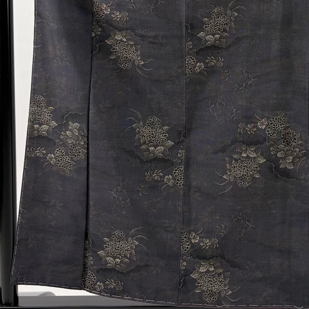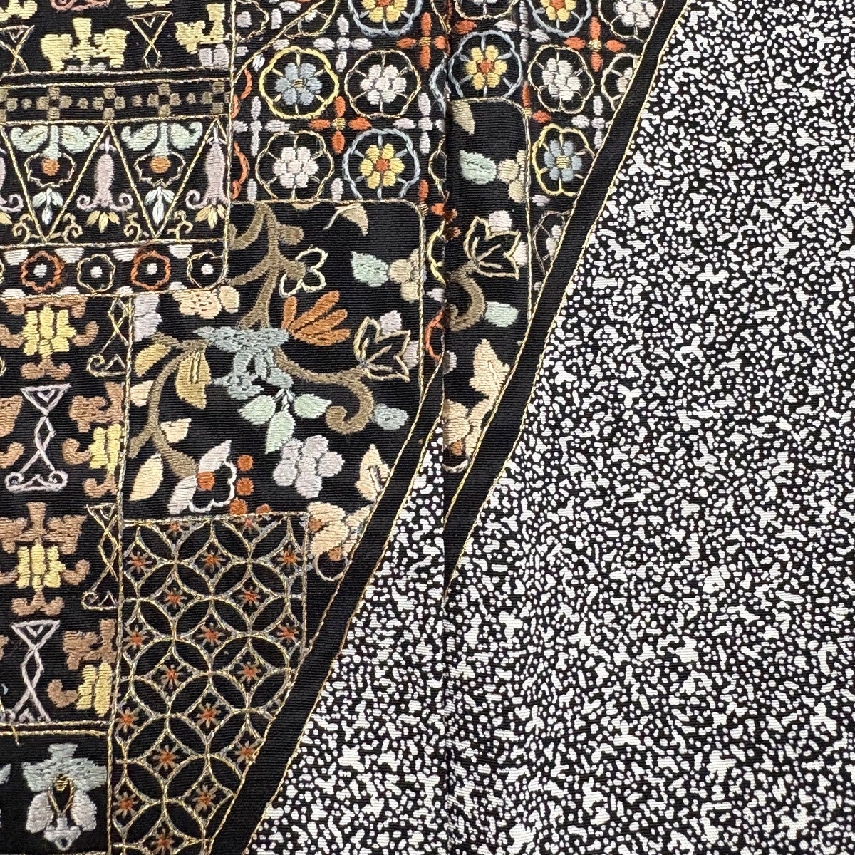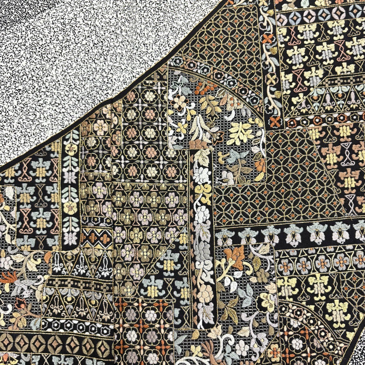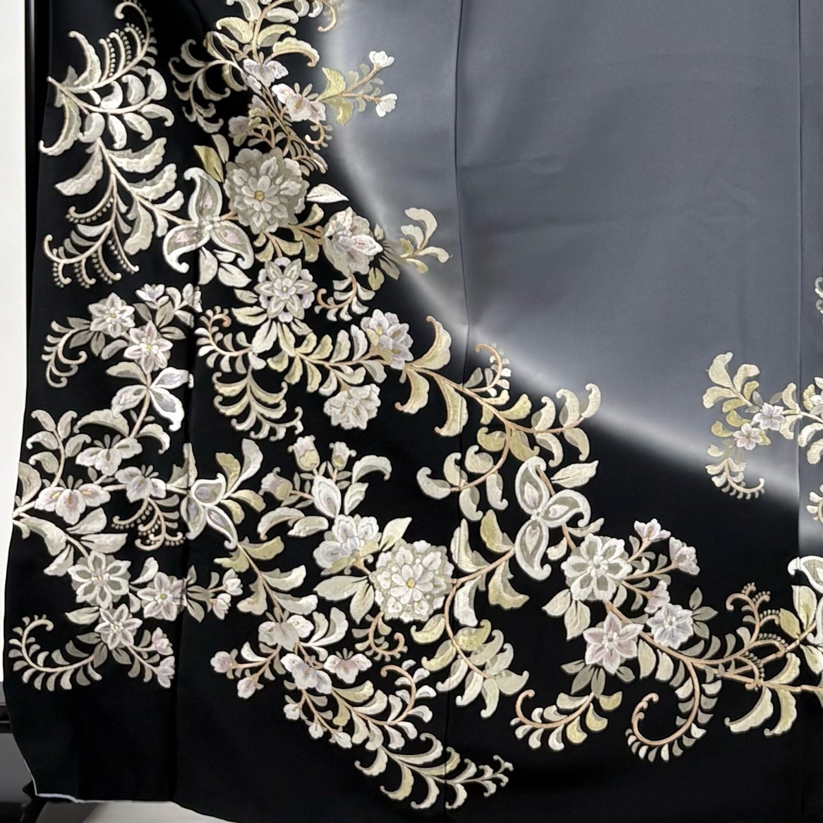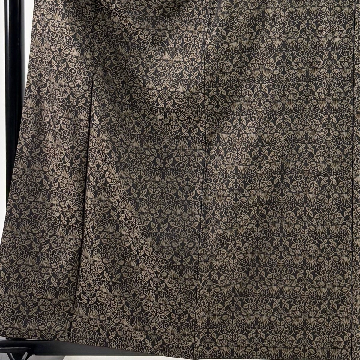 訪問着 身丈170cm 裄丈69cm L 袷 日本刺繍 花唐草 華文 刺繍 金糸 黒 正絹 逸品