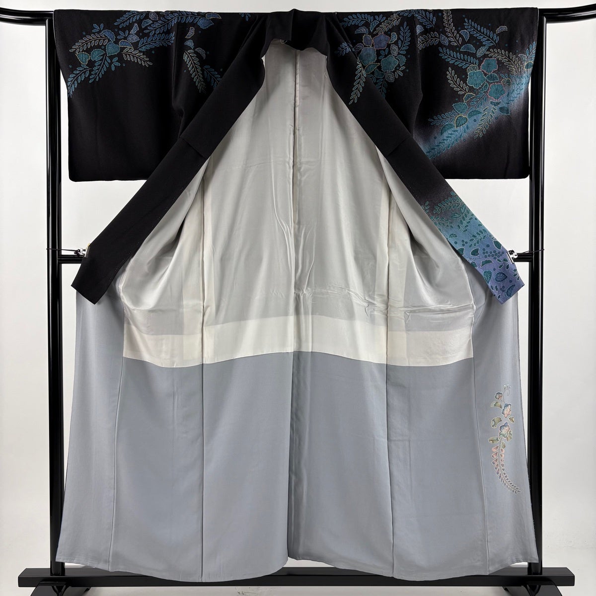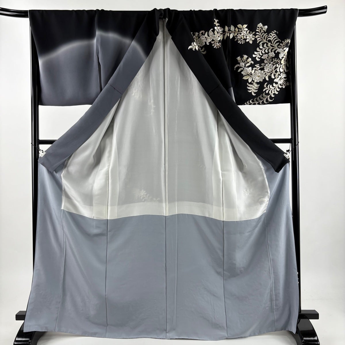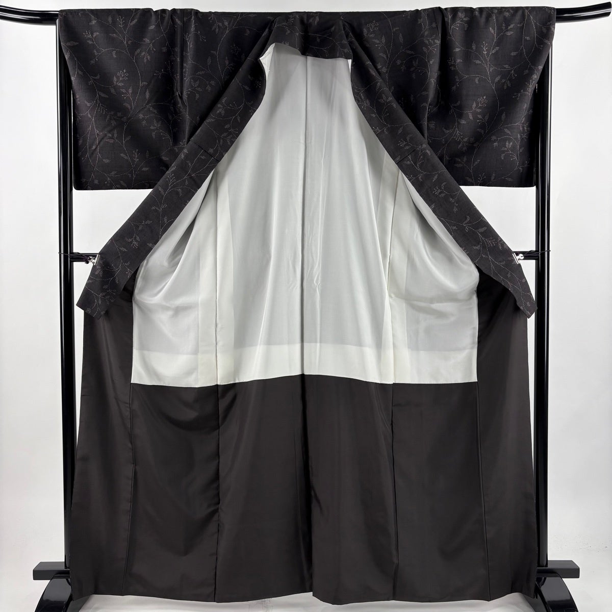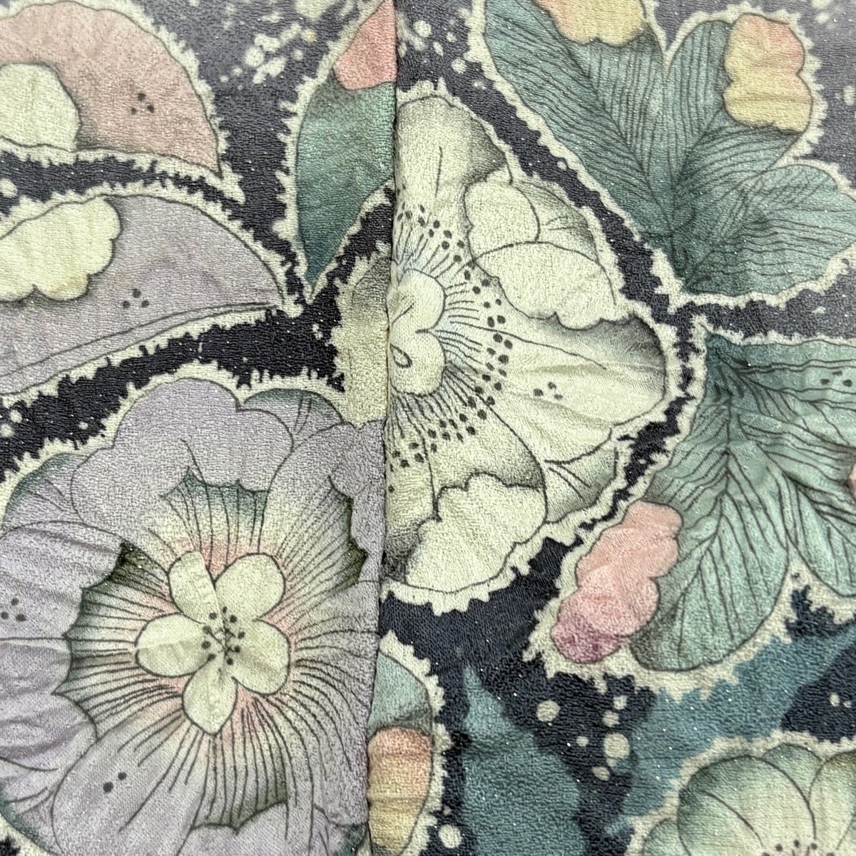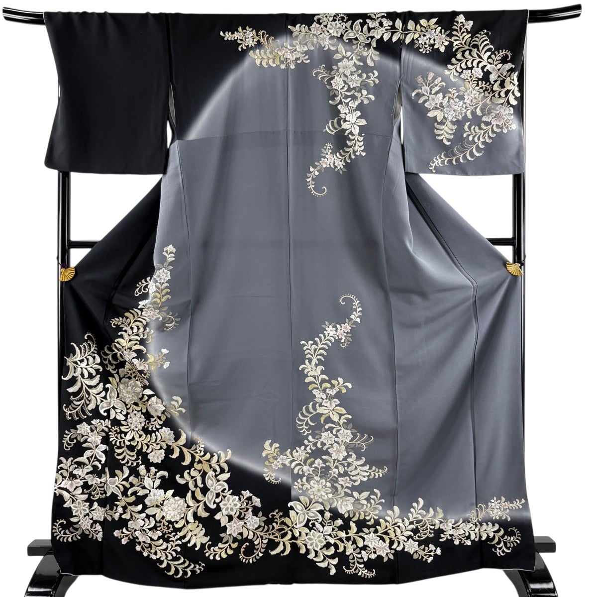 訪問着 身丈170cm 裄丈69cm L 袷 日本刺繍 花唐草 華文 刺繍 金糸 黒 正絹 逸品