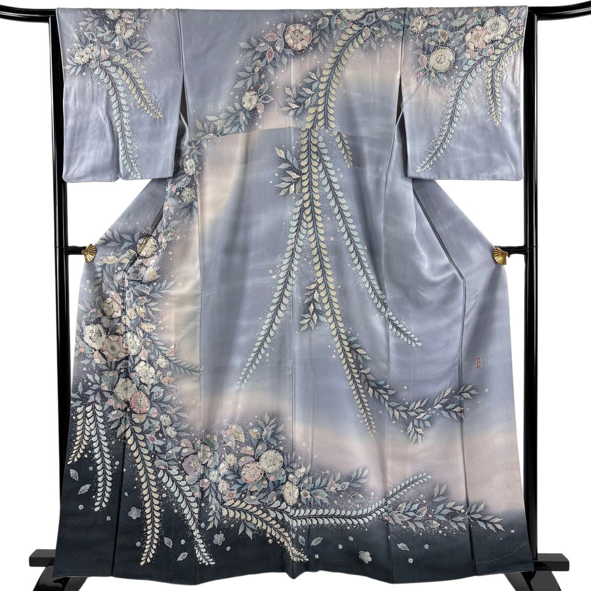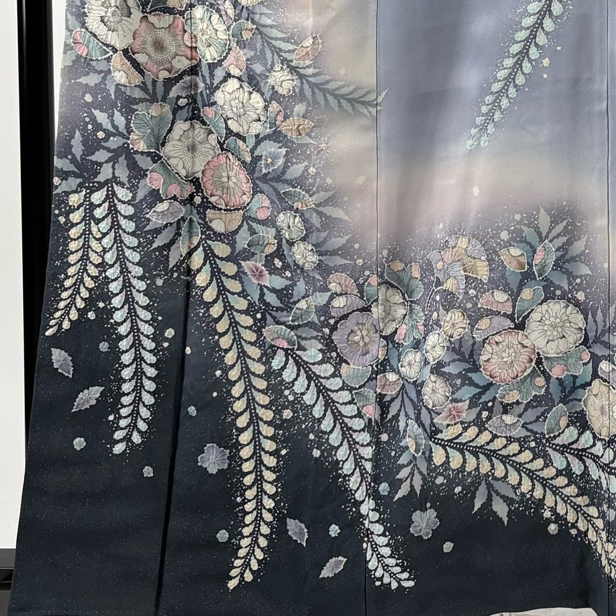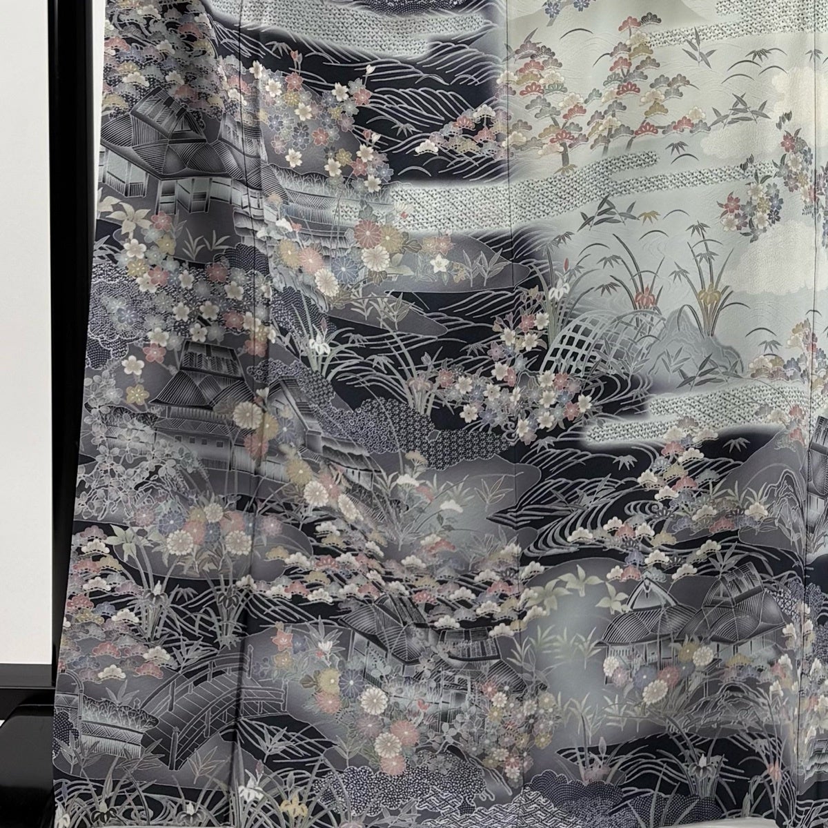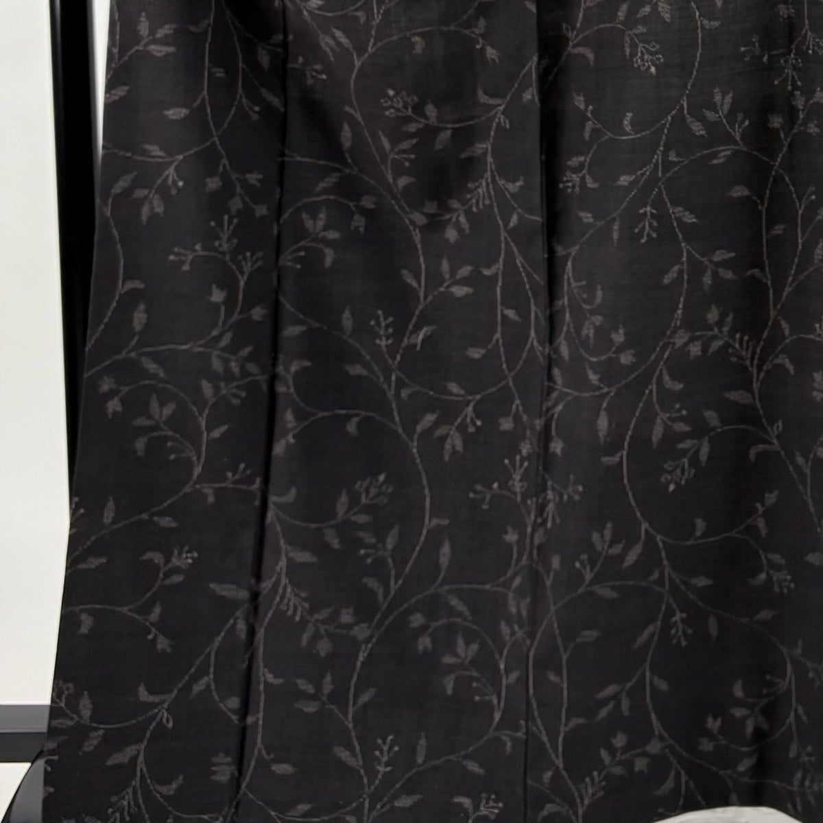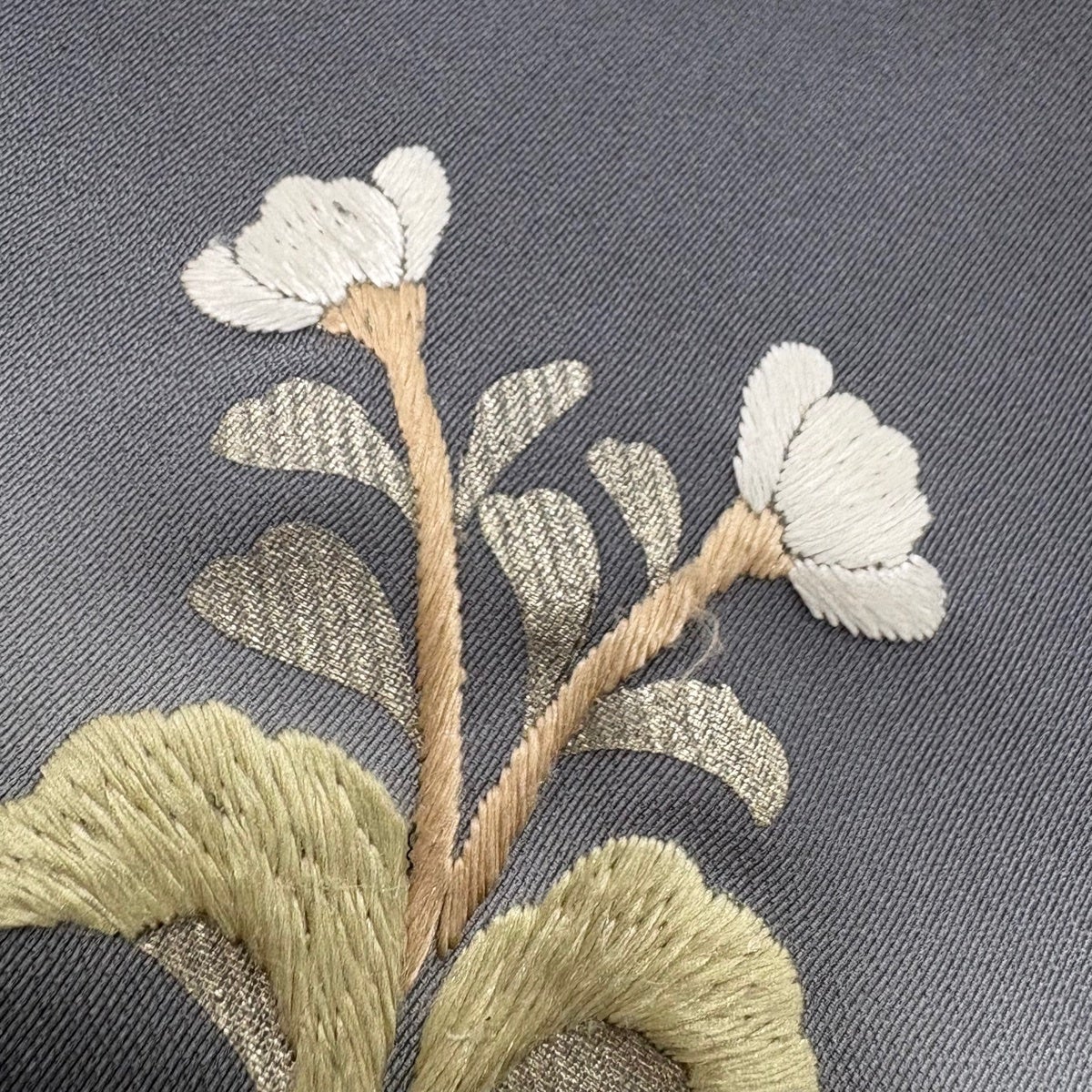 訪問着 身丈170cm 裄丈69cm L 袷 日本刺繍 花唐草 華文 刺繍 金糸 黒 正絹 逸品