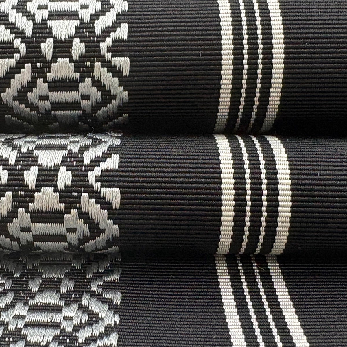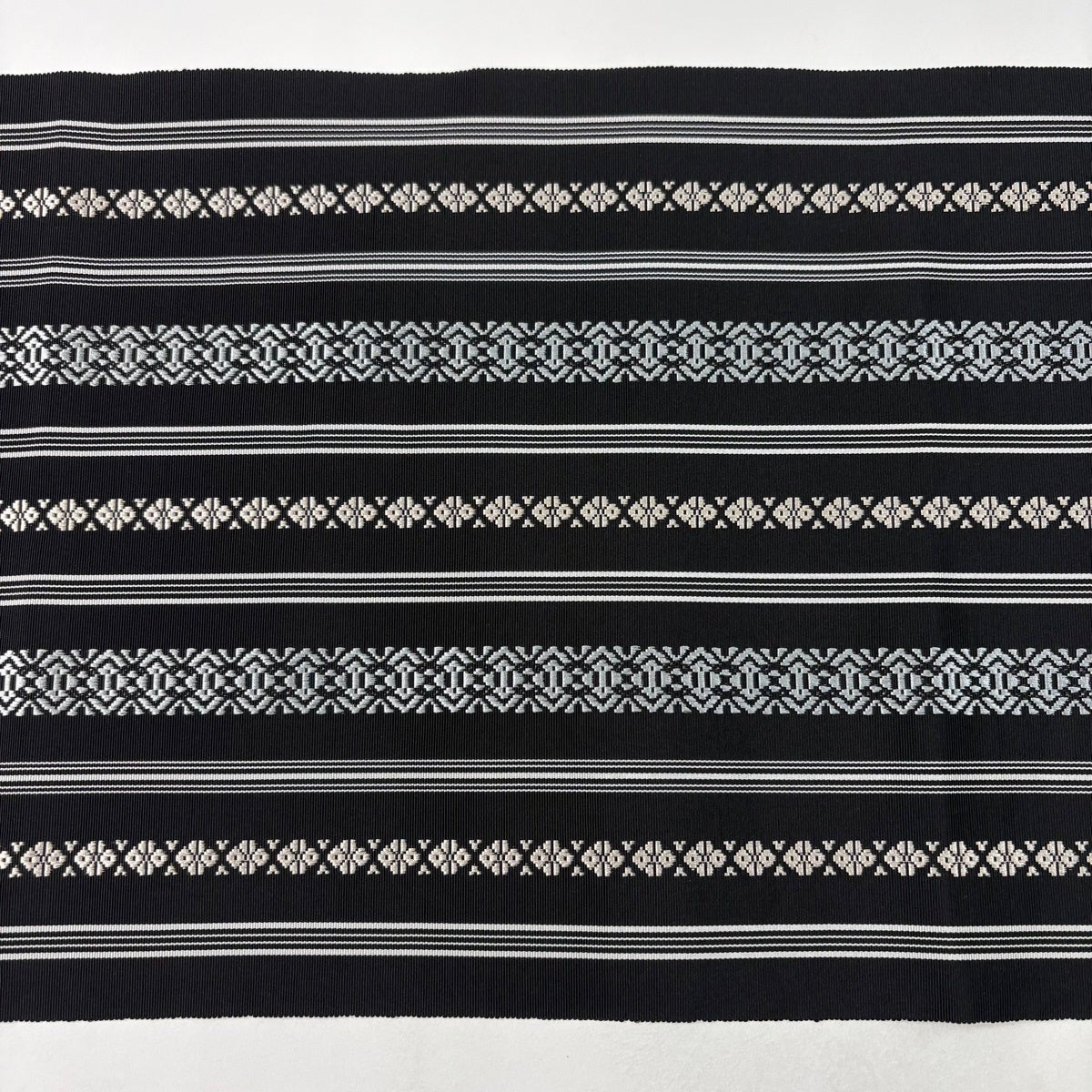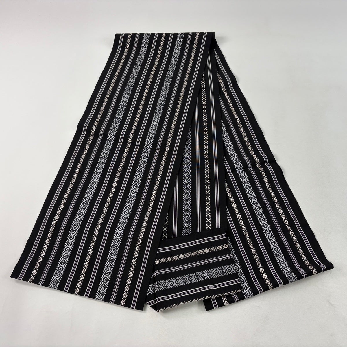 【美品】 名古屋帯 逸品 八寸名古屋帯 松葉仕立て やまと 縞 幾何学 黒 正絹