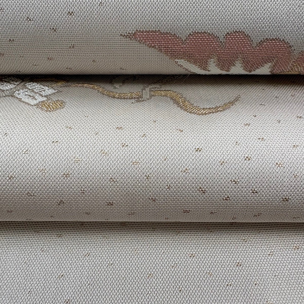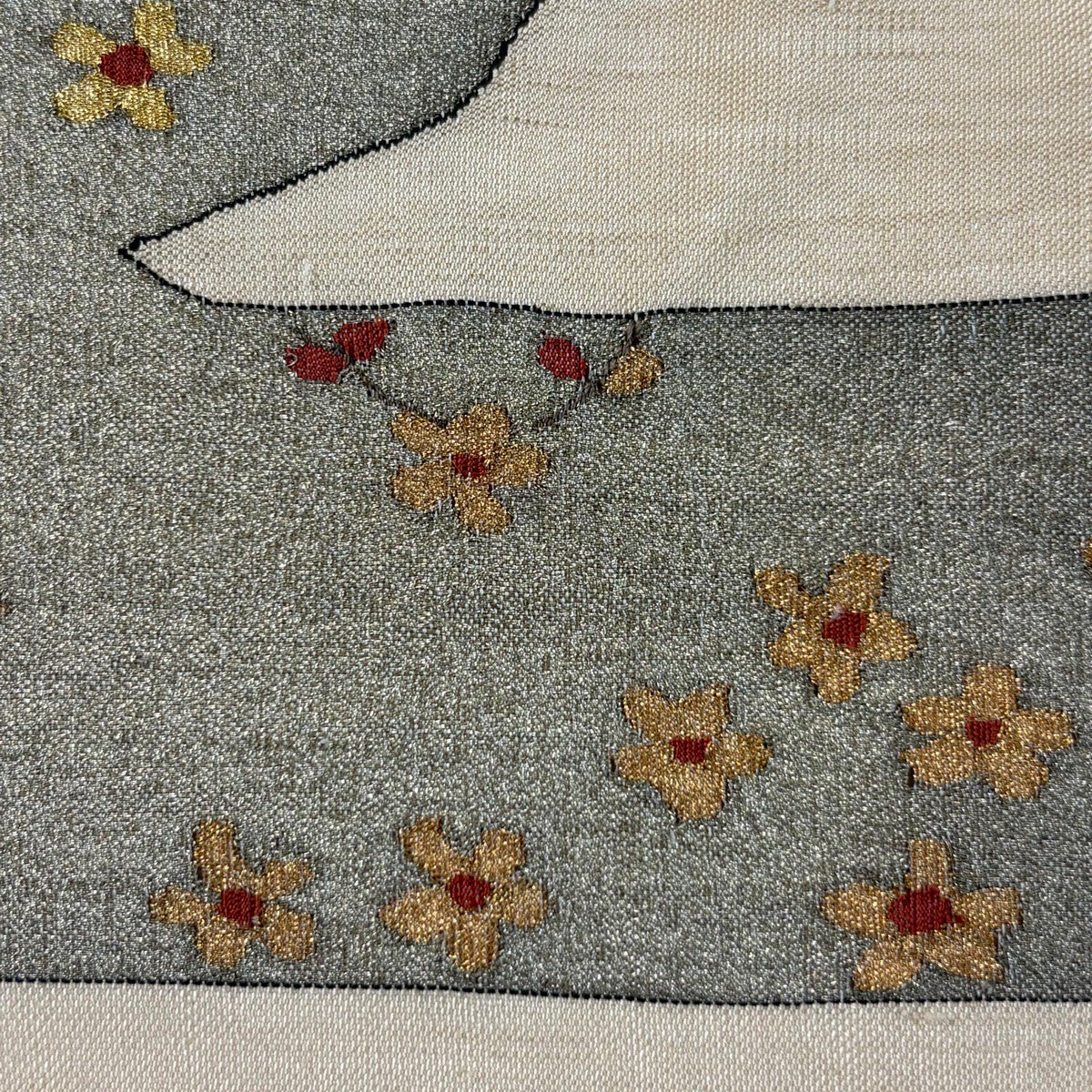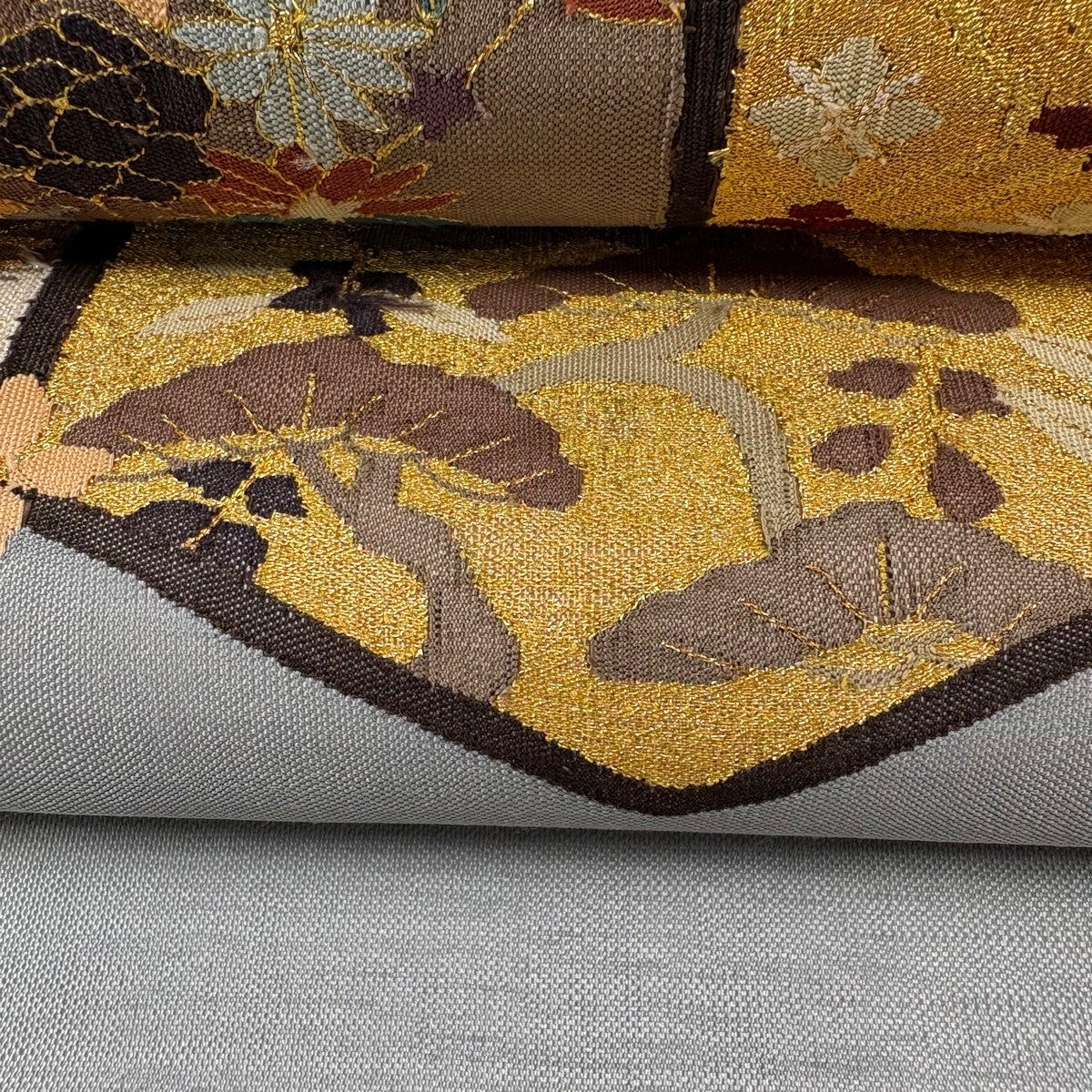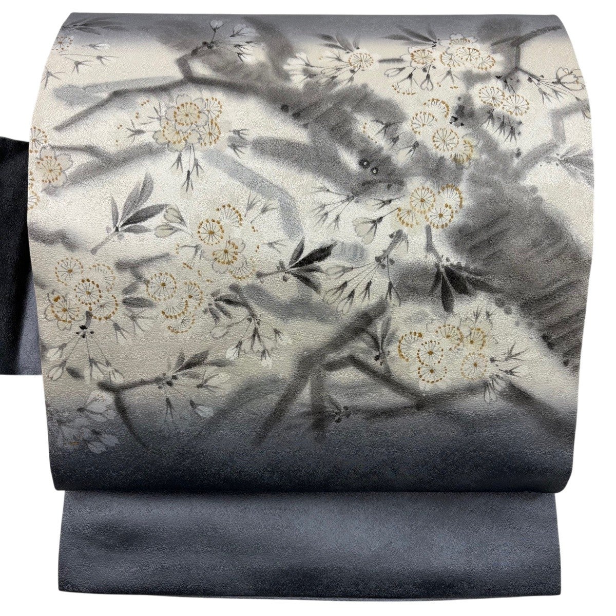 名古屋帯 逸品 桜 銀糸 金彩 灰白 正絹