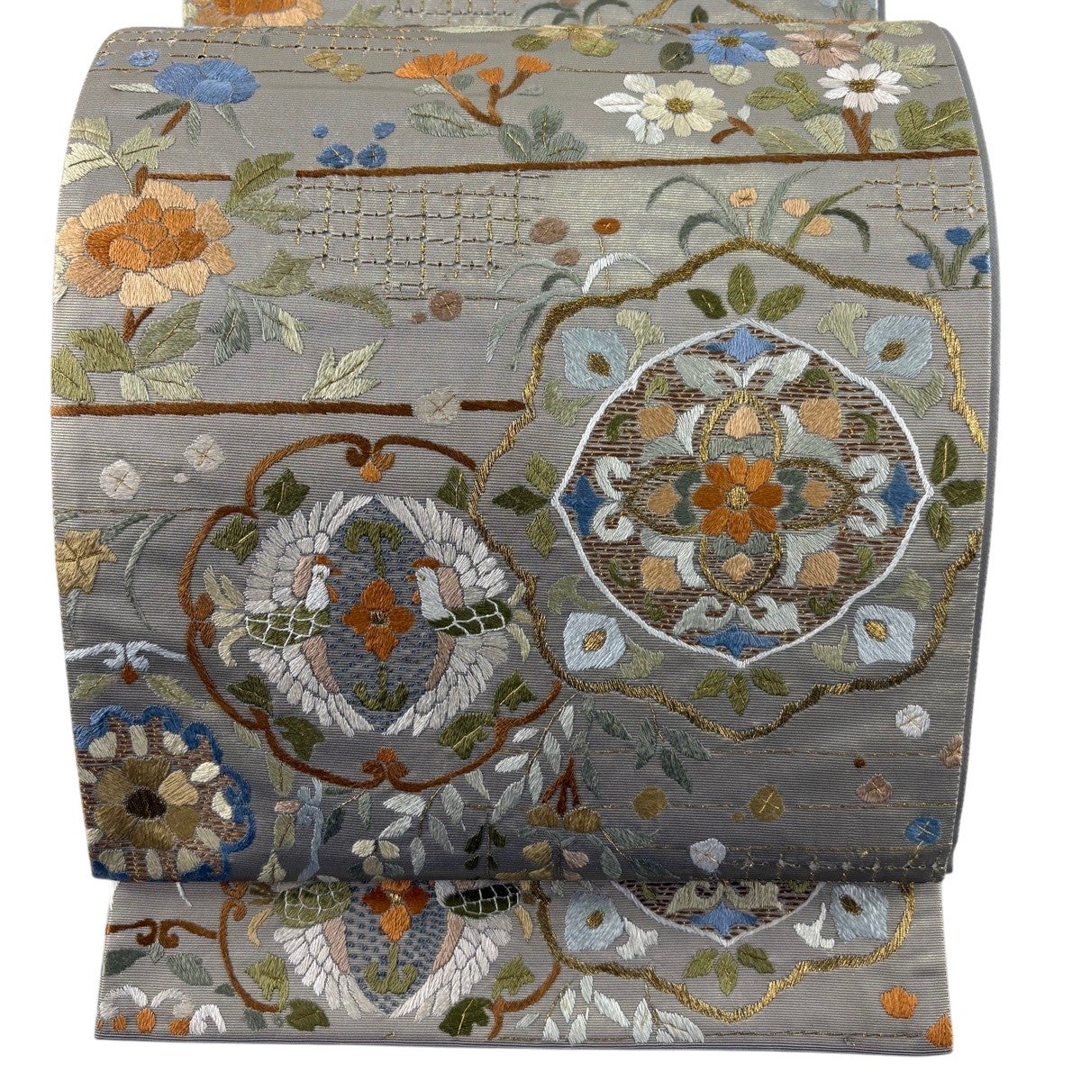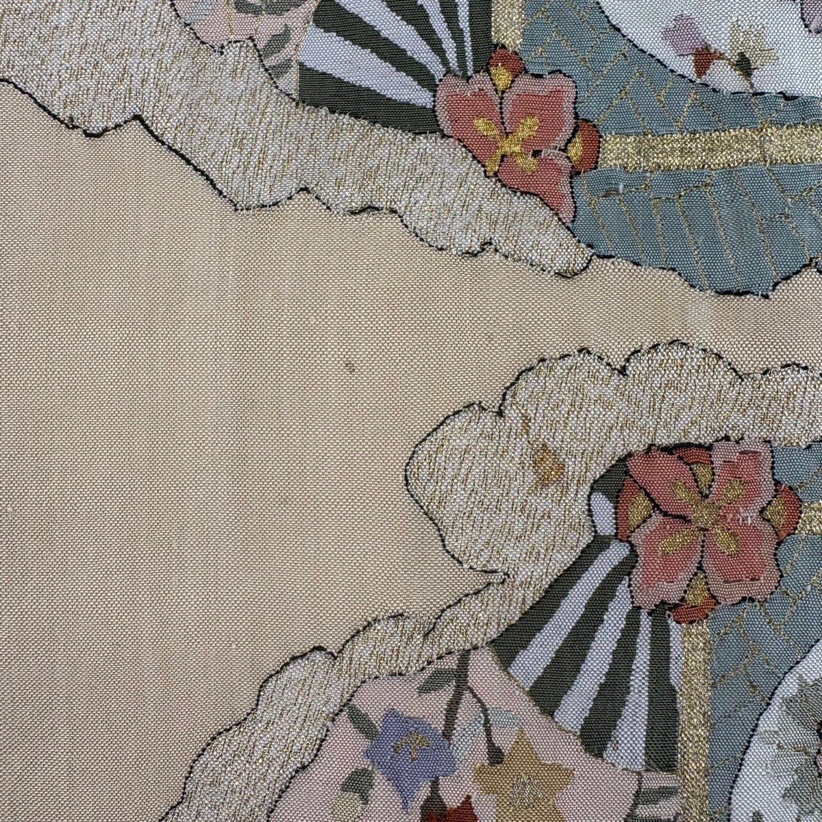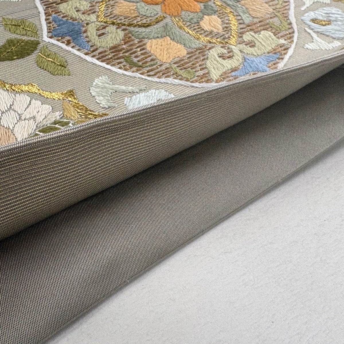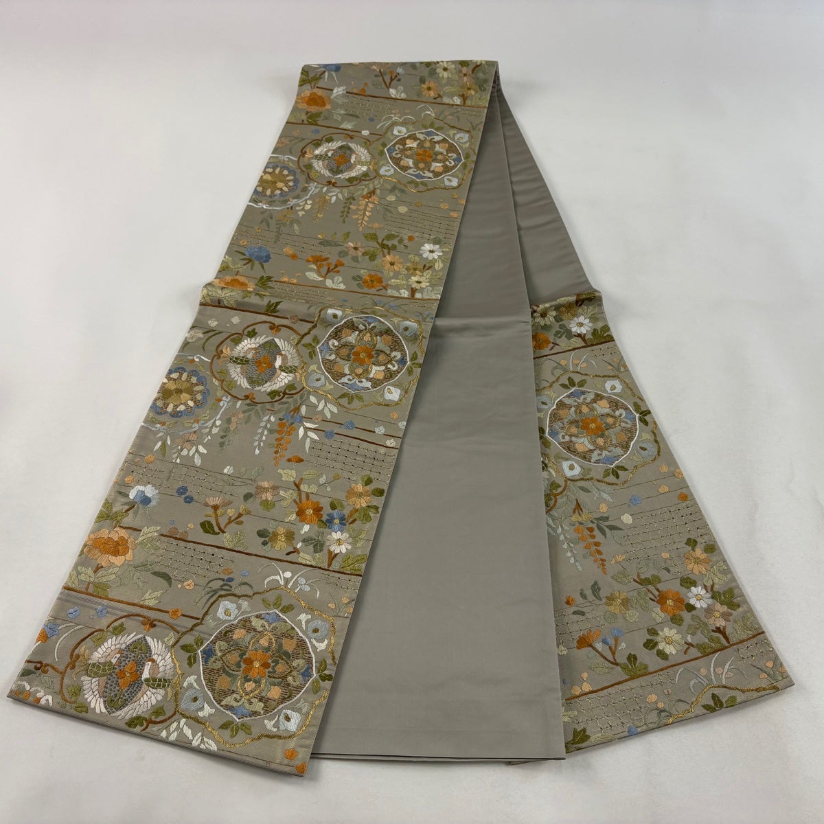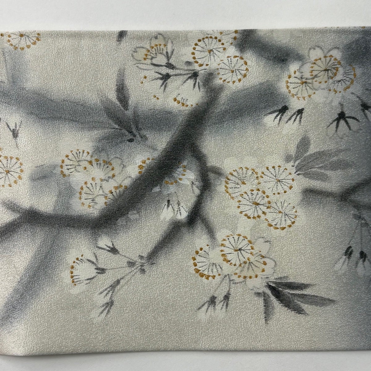 名古屋帯 逸品 桜 銀糸 金彩 灰白 正絹
