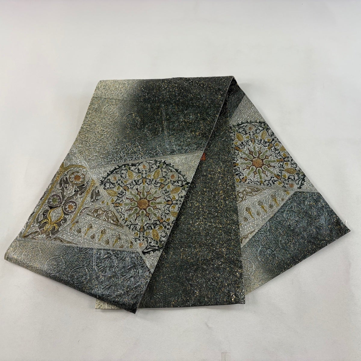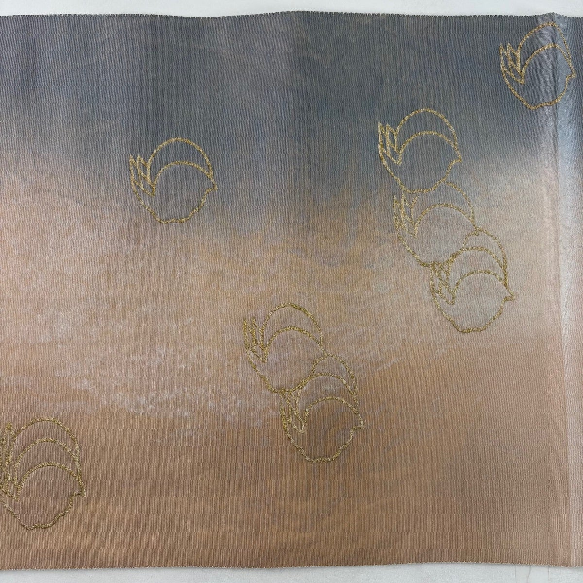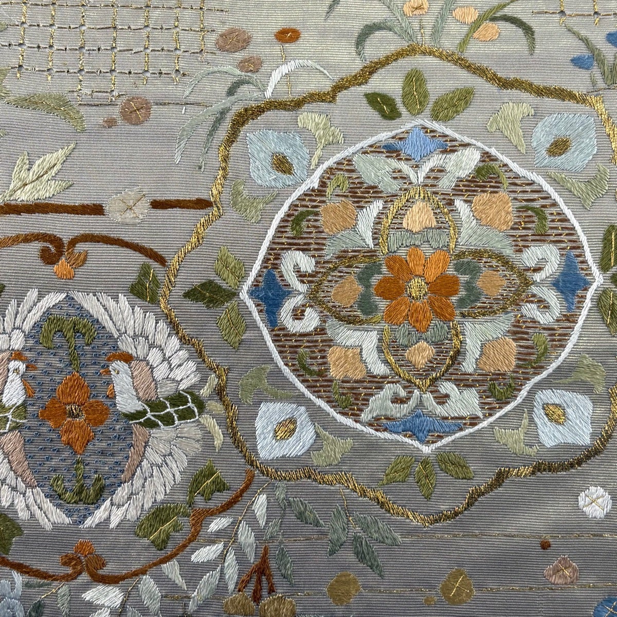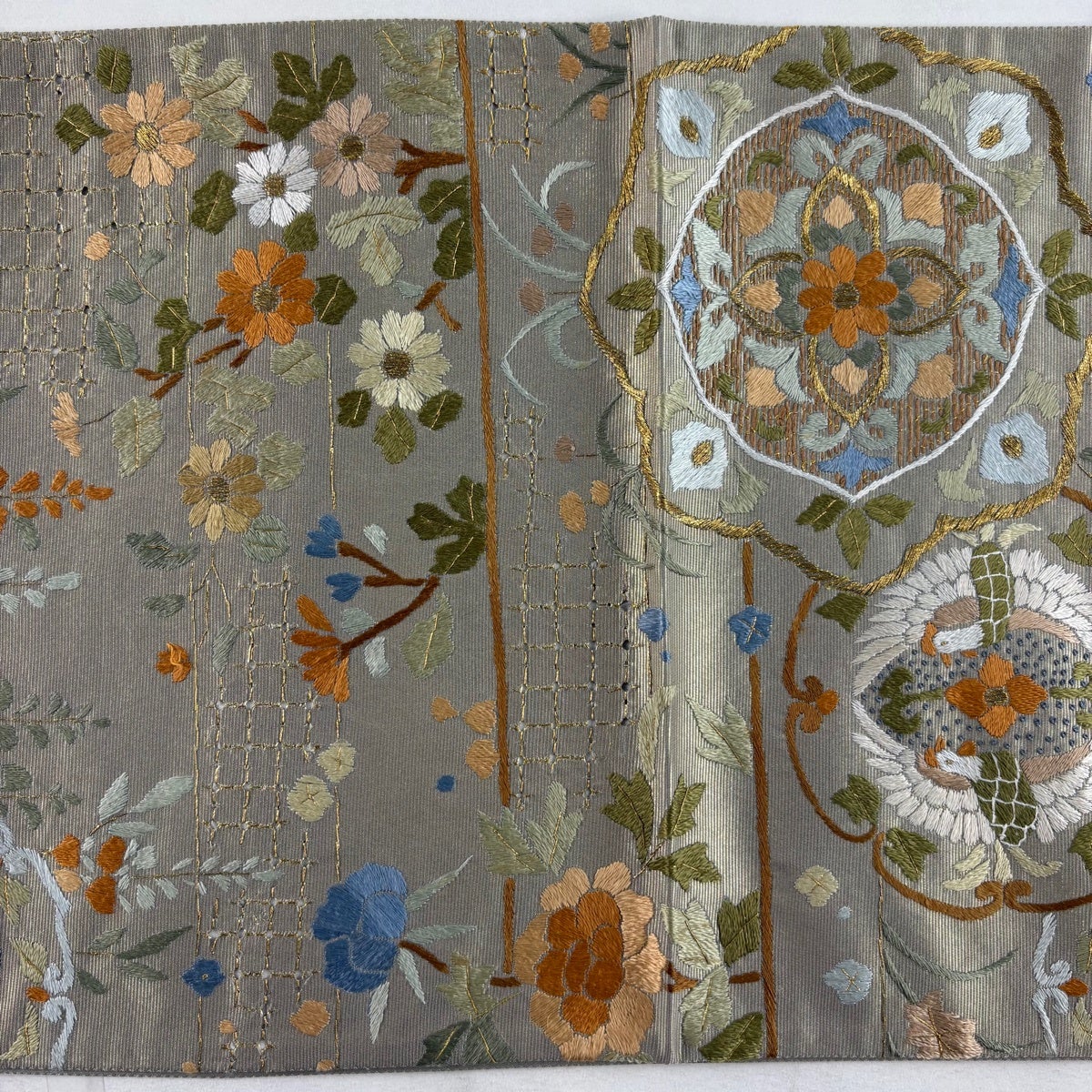 名古屋帯 逸品 桜 銀糸 金彩 灰白 正絹