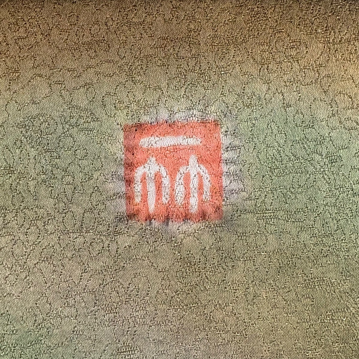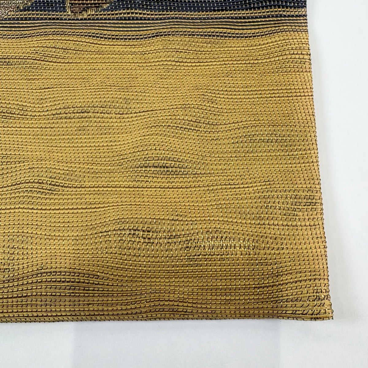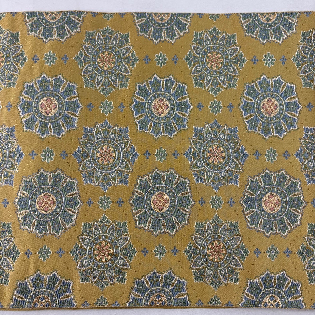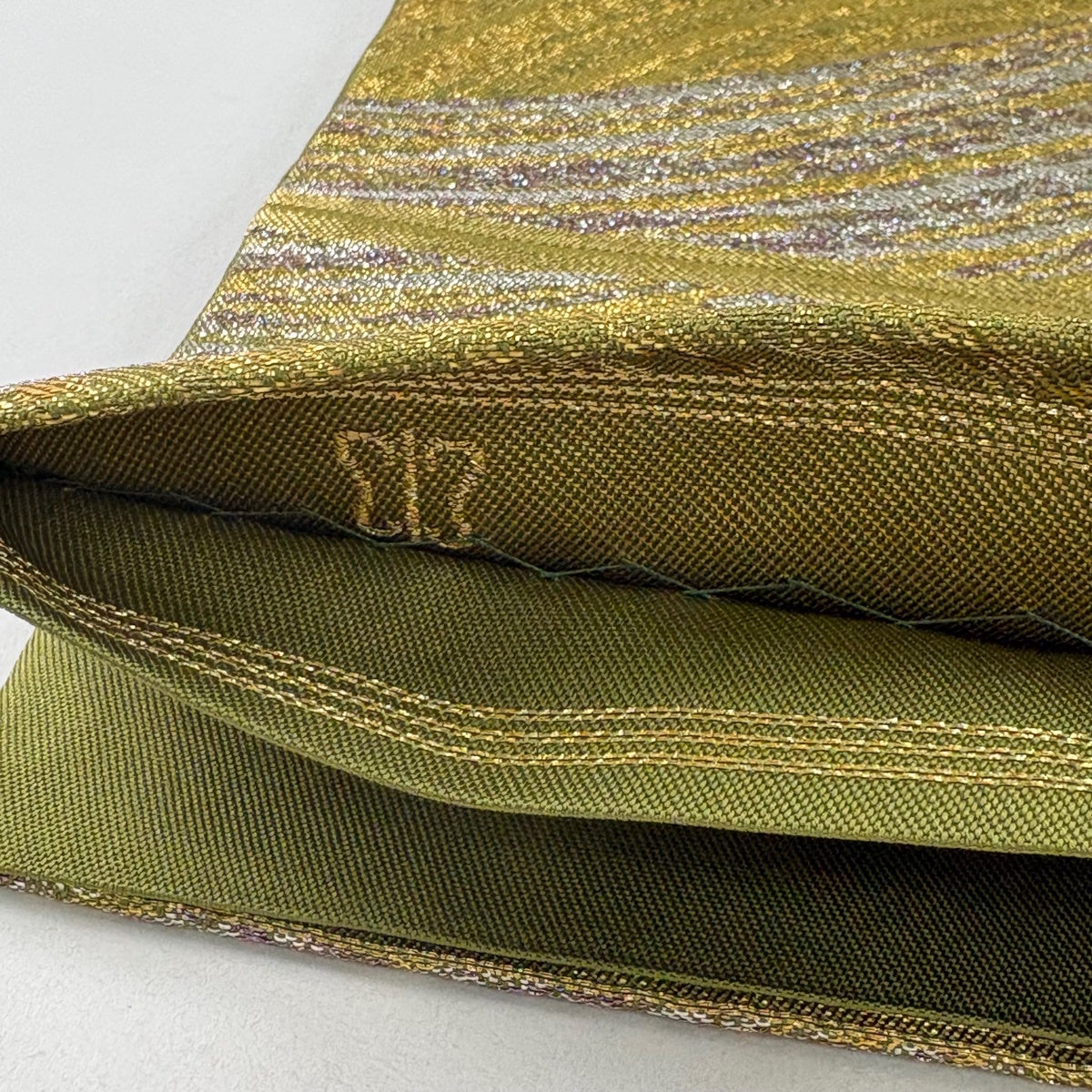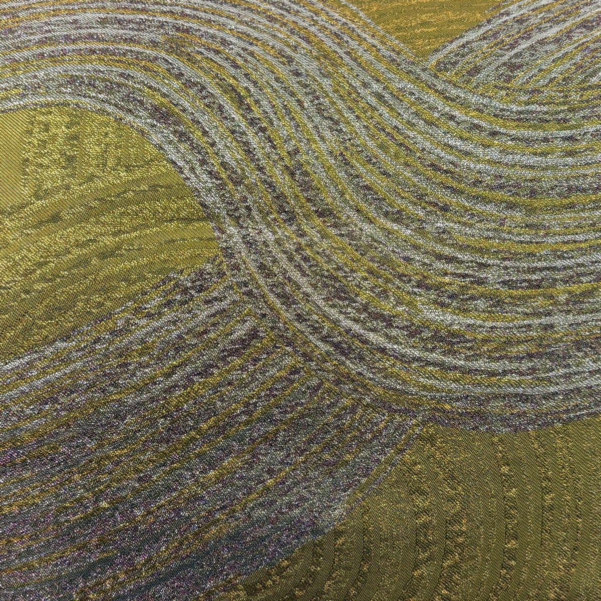 【美品】 袋帯 逸品 服部織物 落款あり 華文 花 箔 薄黄土色 六通 正絹