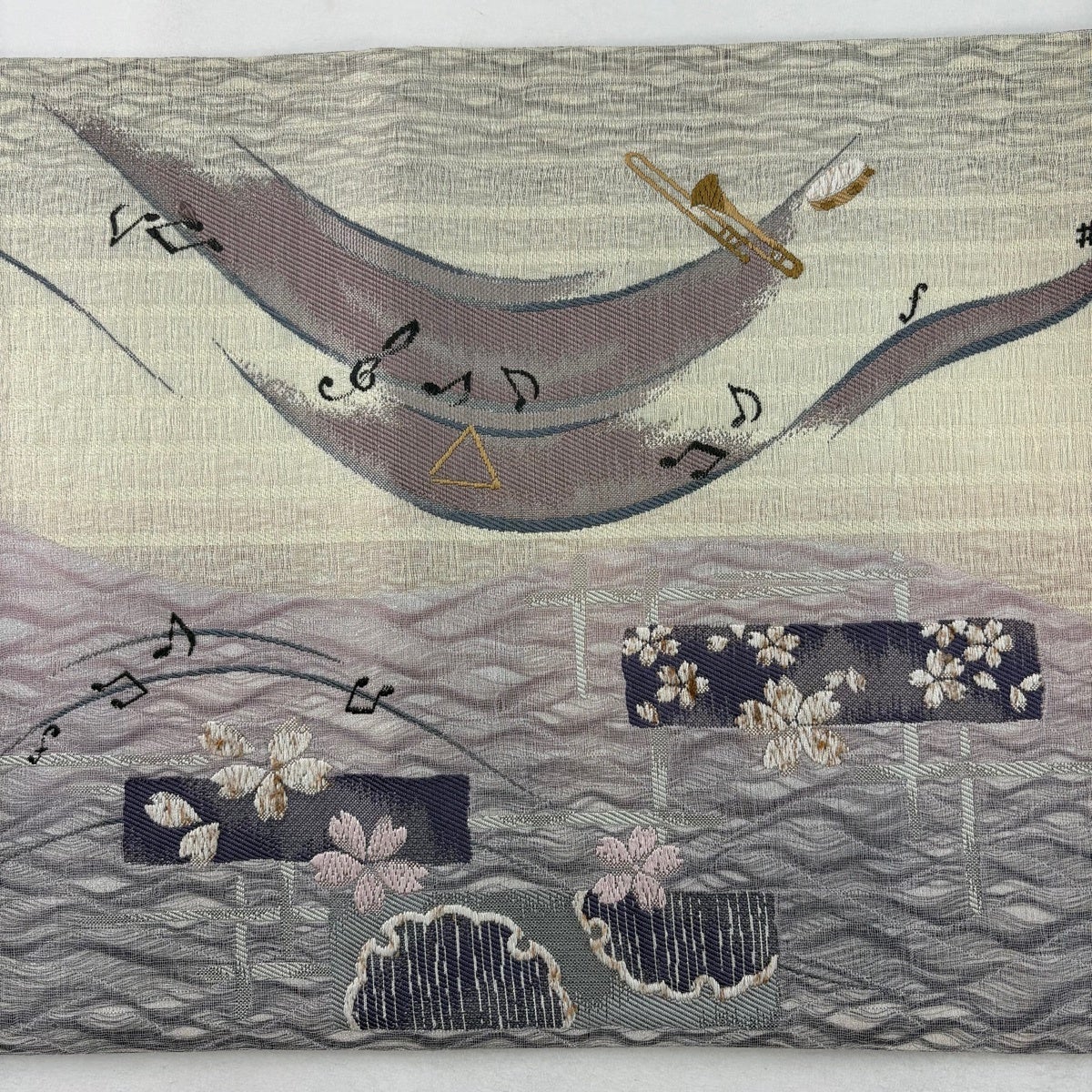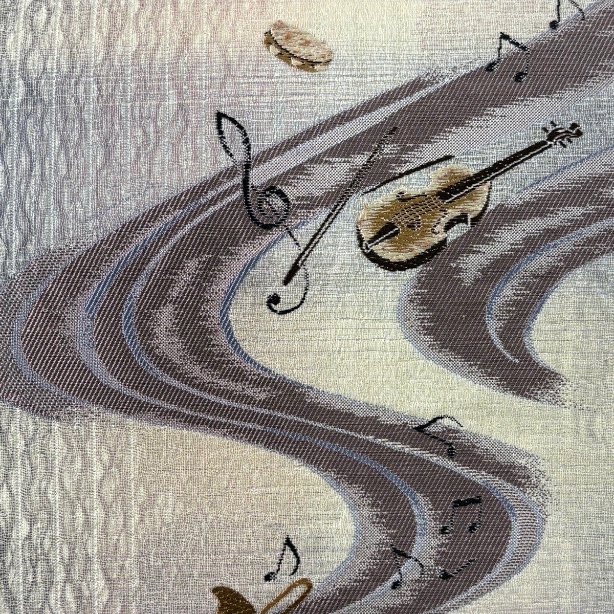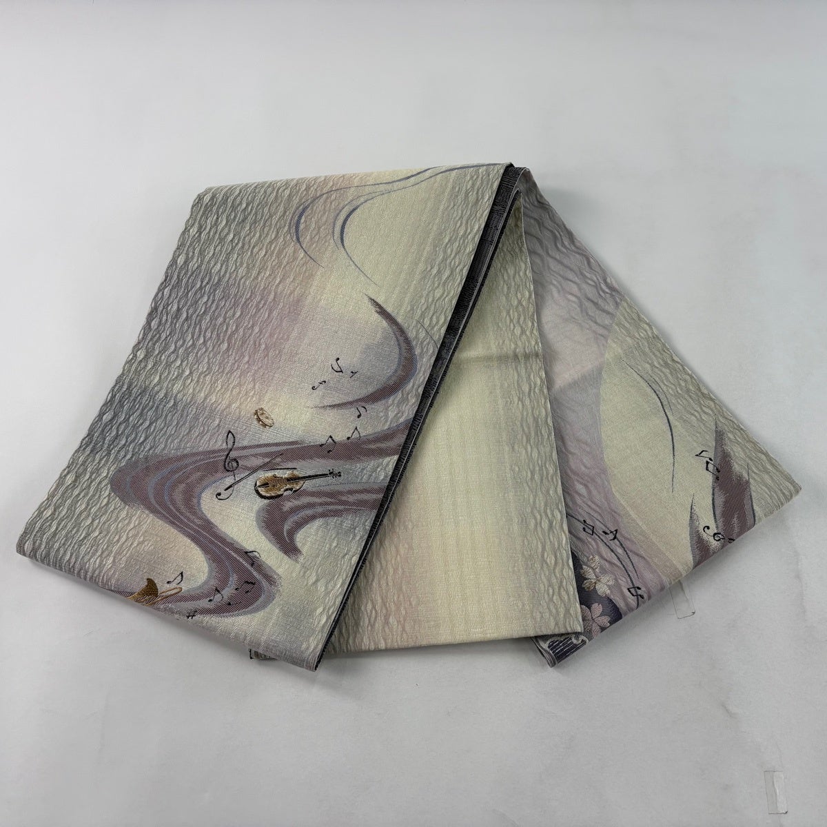 【美品】 袋帯 逸品 やまと 楽器 音符 唐織 箔 薄紫 全通 正絹