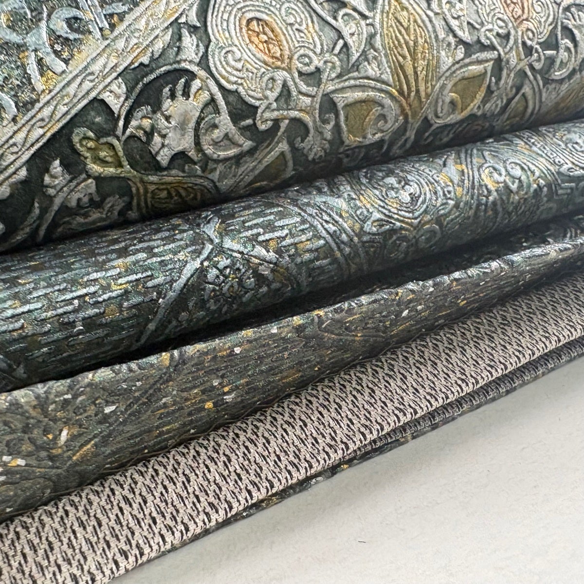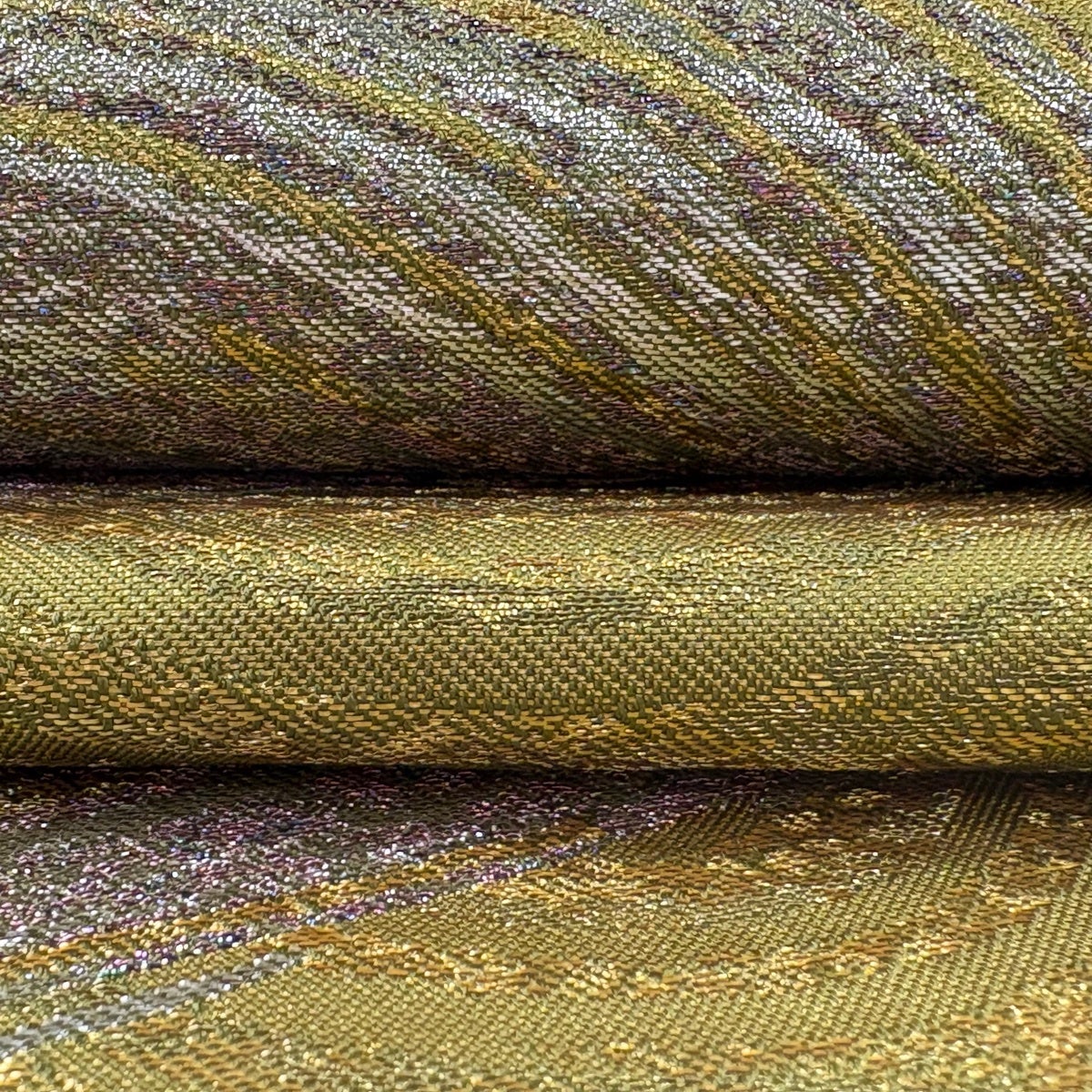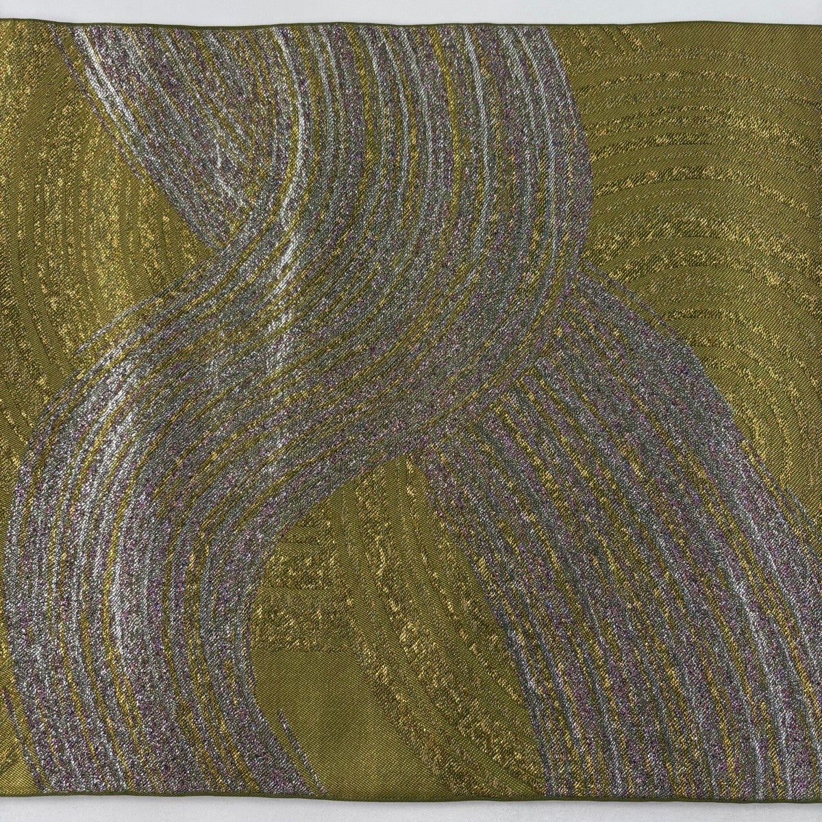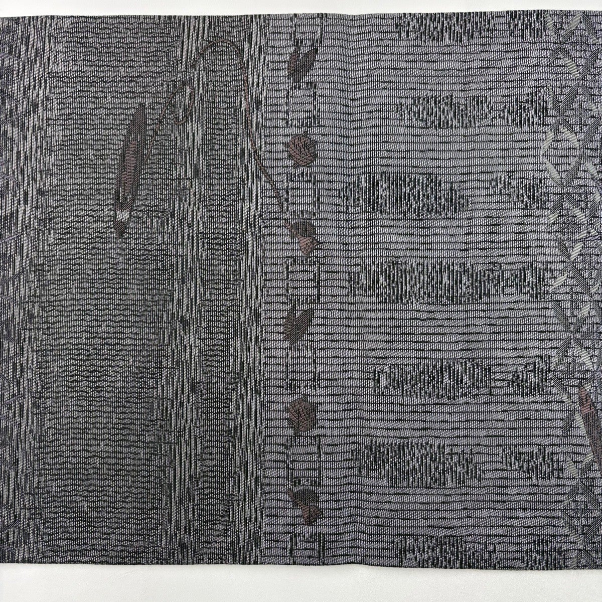 【美品】 袋帯 逸品 となみ織物 落款あり 詩情 リバーシブル 樹木 格子 箔 灰紫 全通 正絹