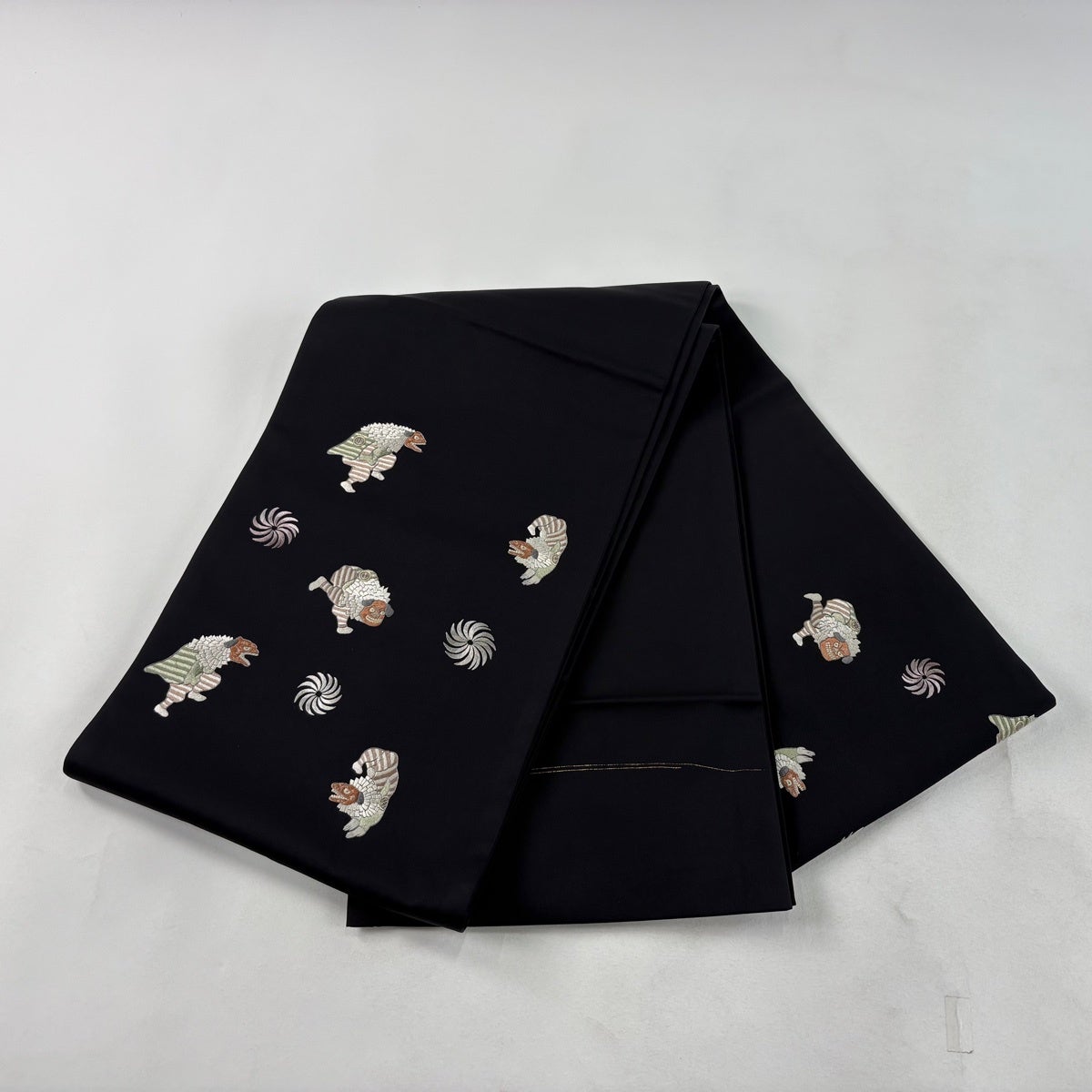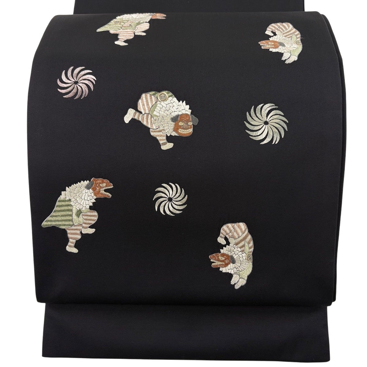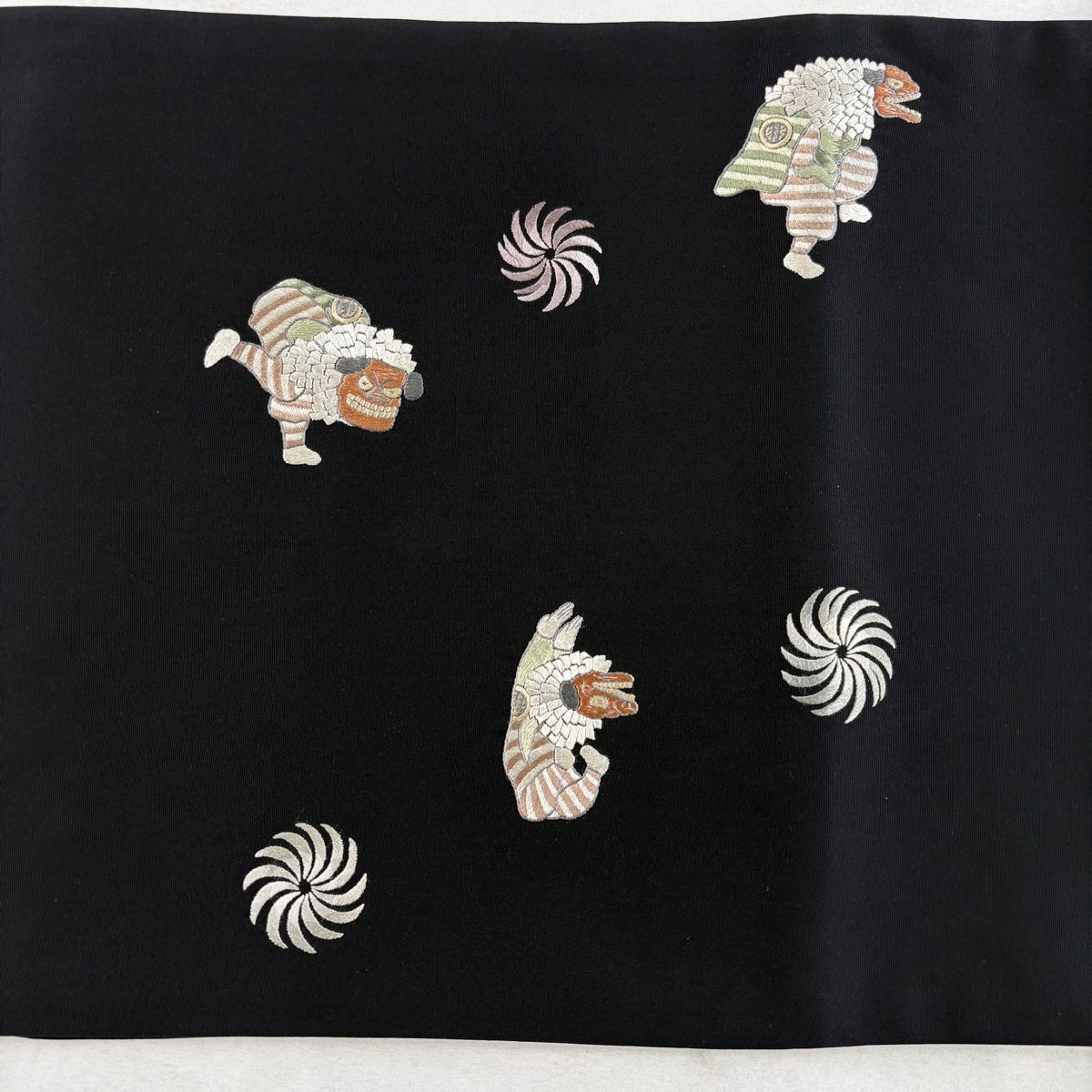 【美品】 袋帯 逸品 やまと 獅子舞 刺繍 箔 黒 お太鼓柄 正絹