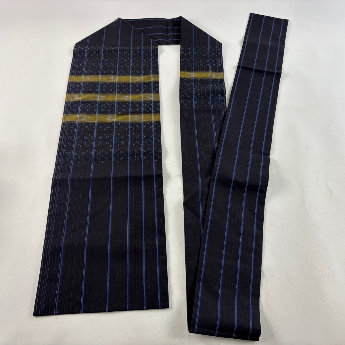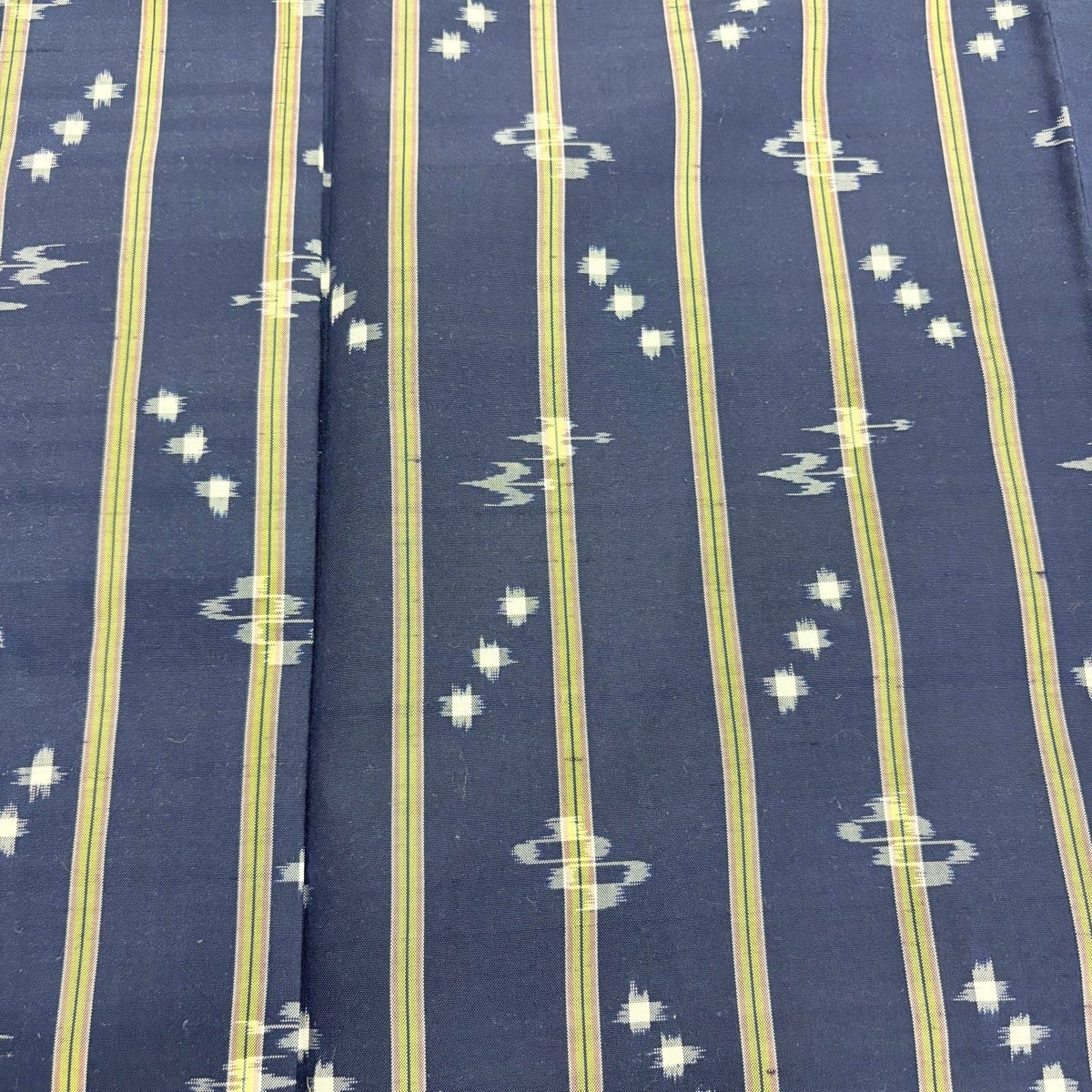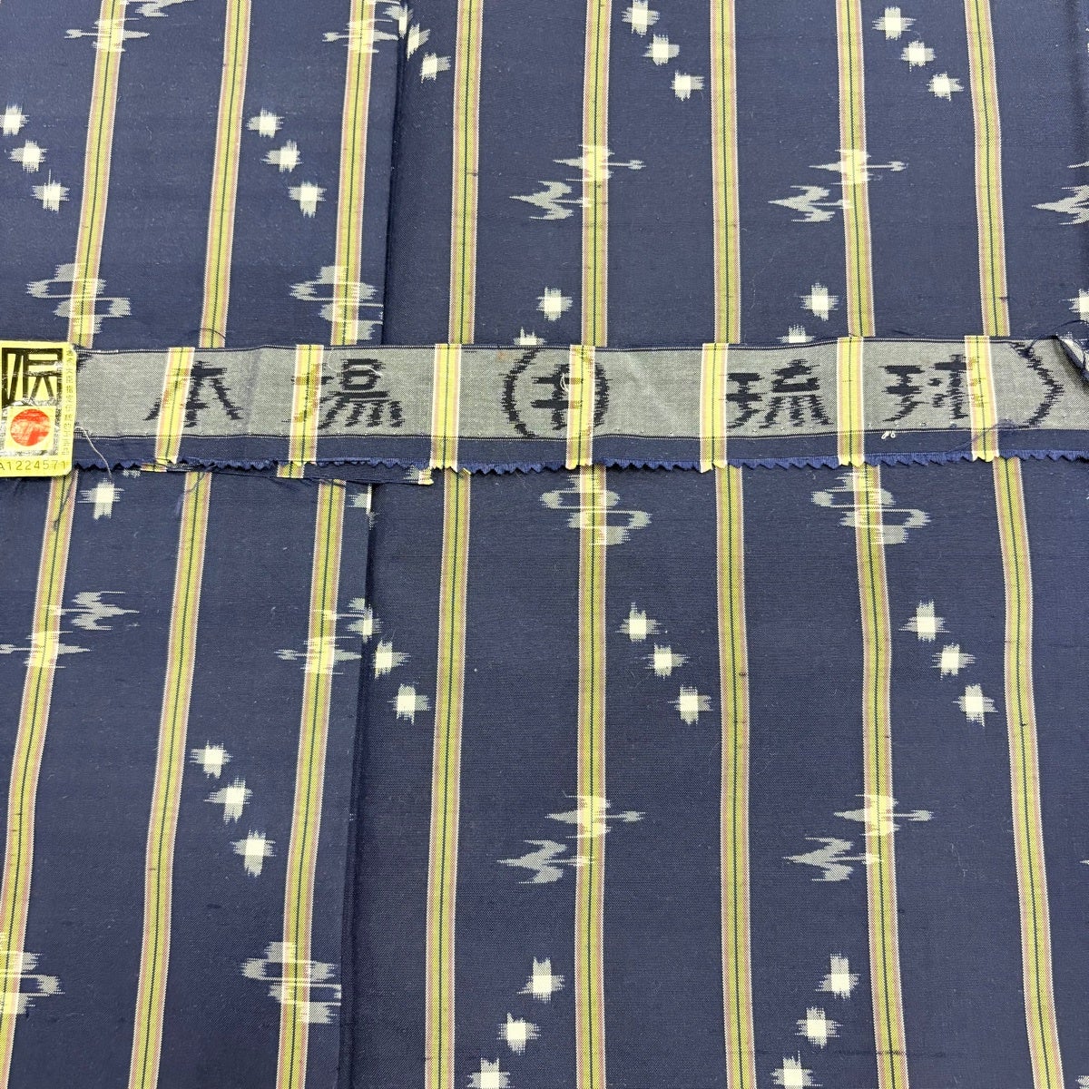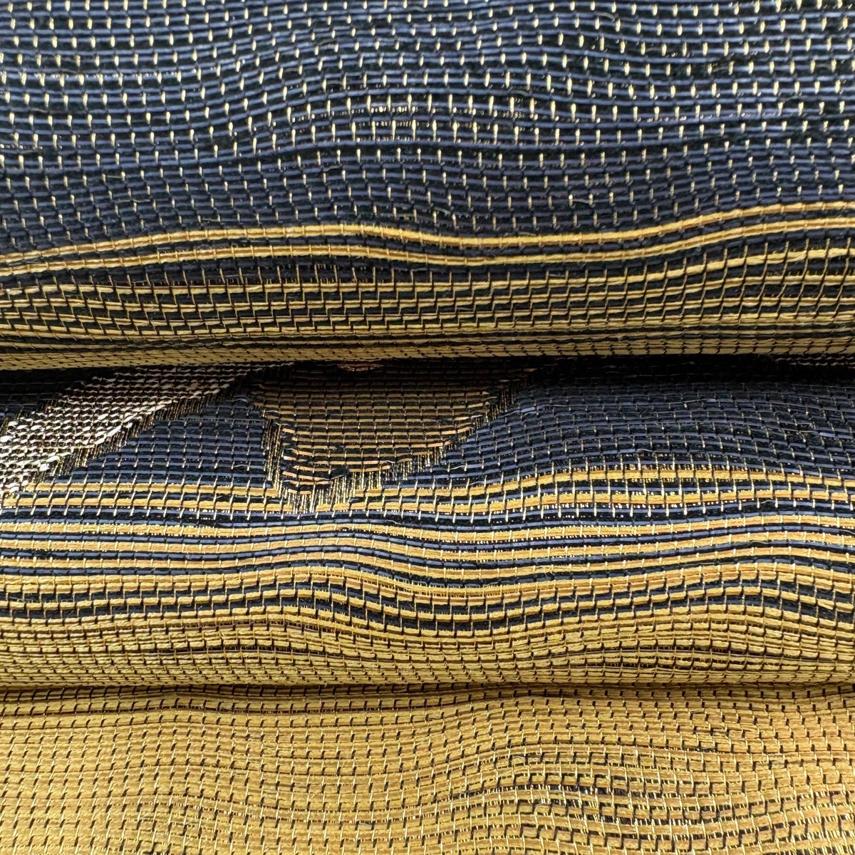 【美品】 名古屋帯 逸品 証紙あり 本場琉球かすり つばめ 縞 濃紺 正絹
