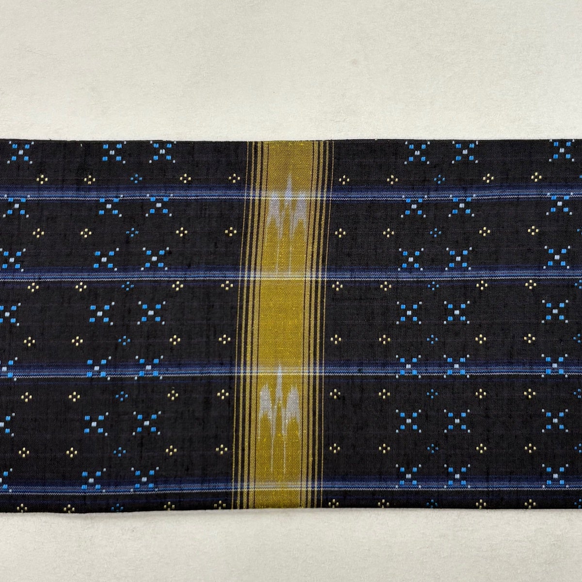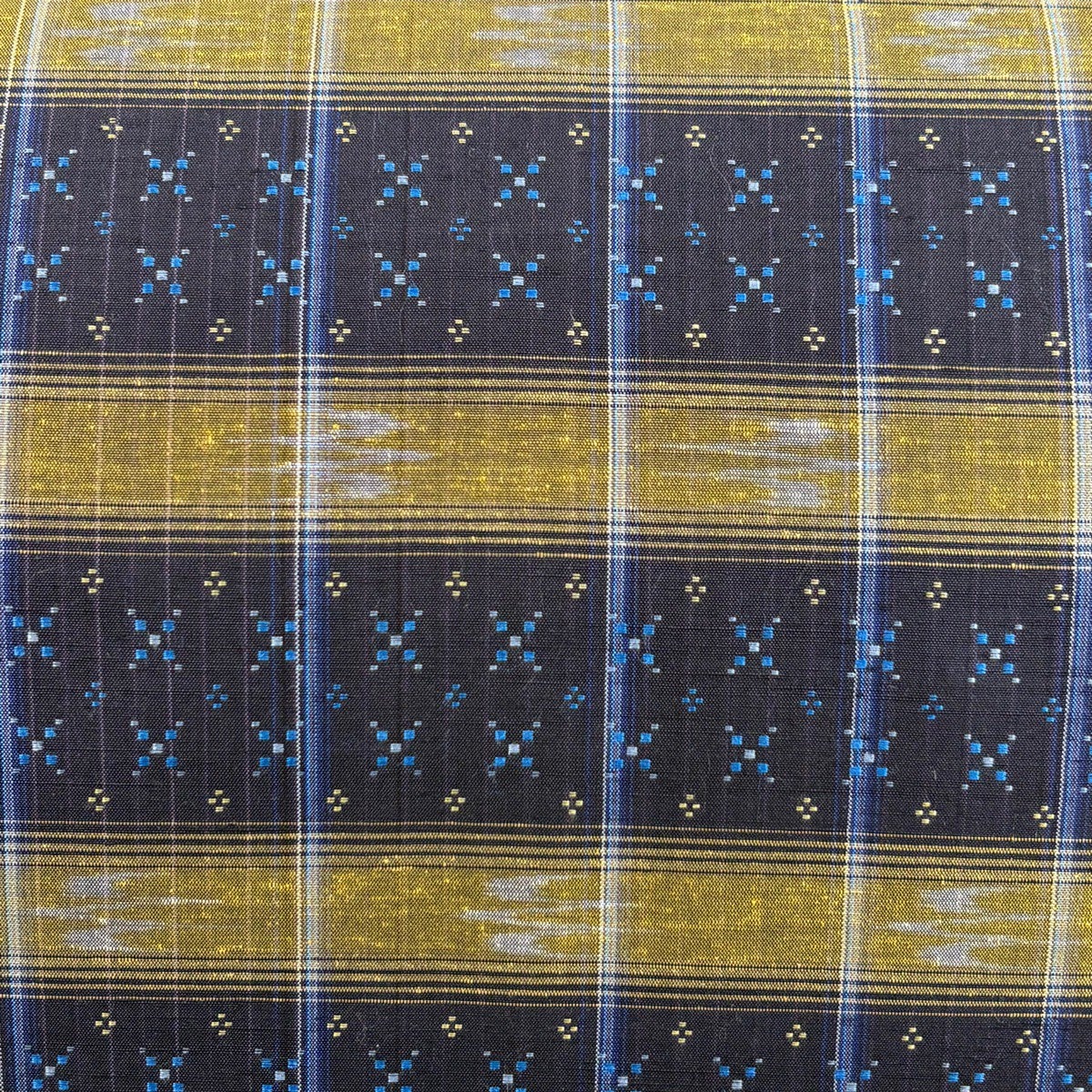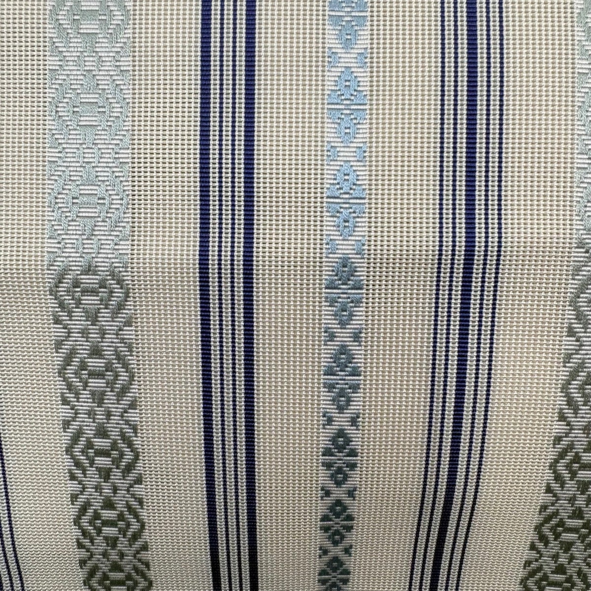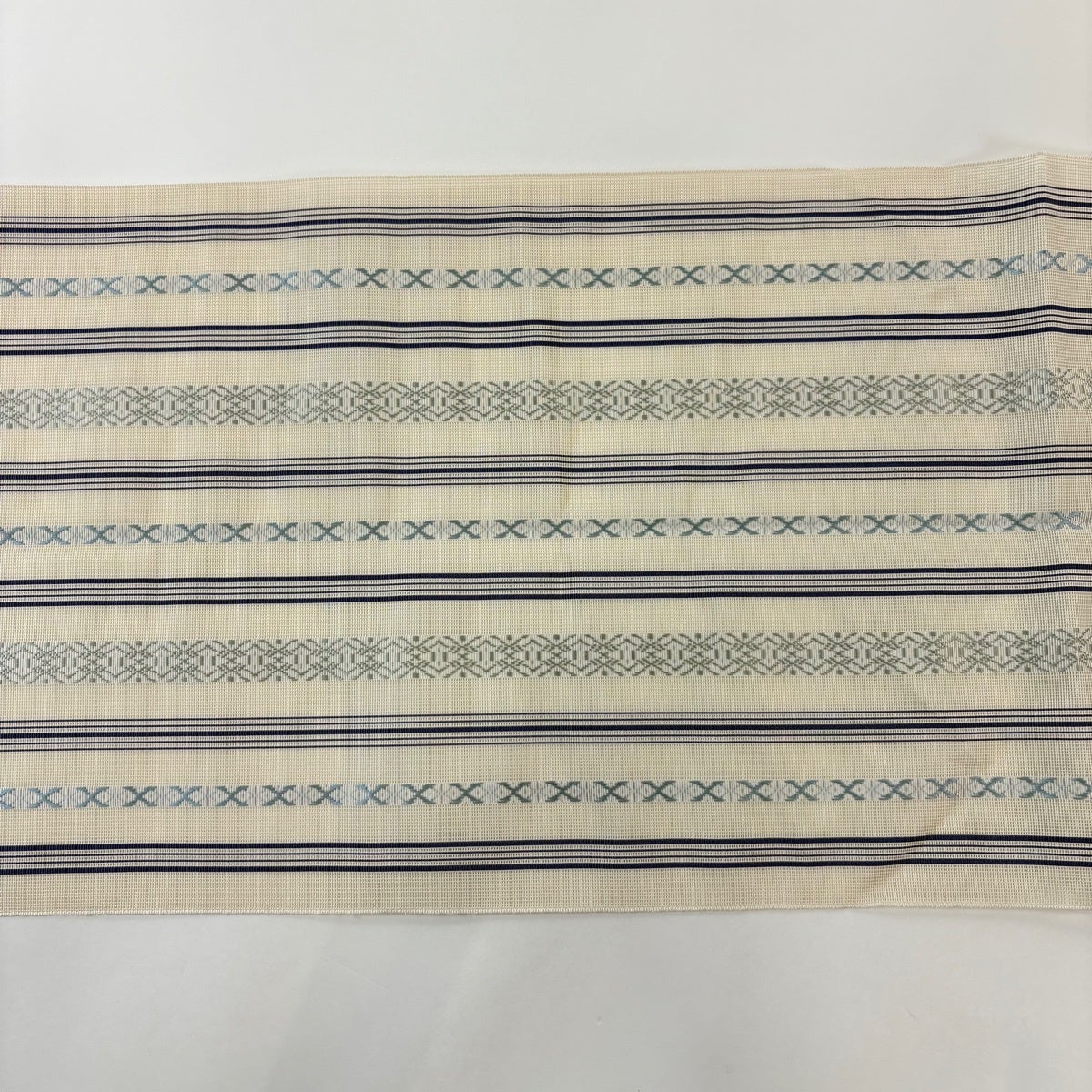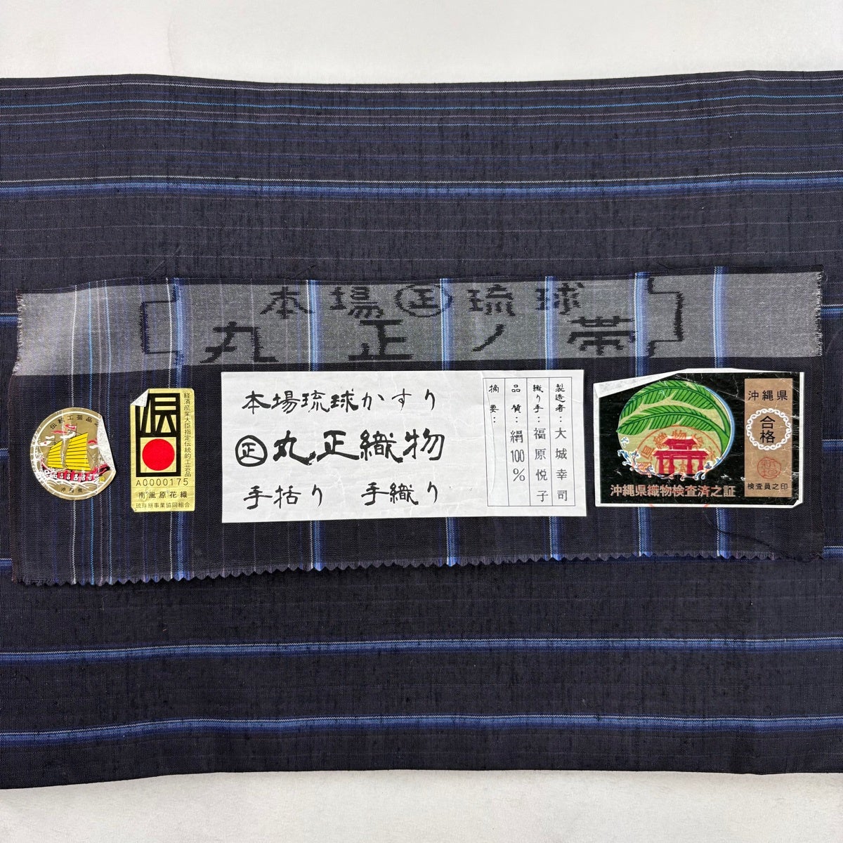 【美品】 名古屋帯 逸品 証紙あり 本場琉球かすり つばめ 縞 濃紺 正絹
