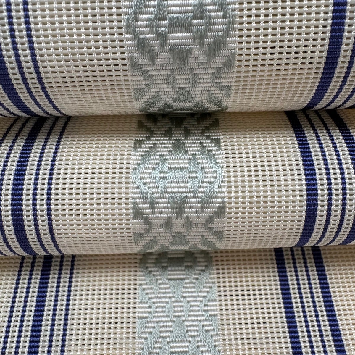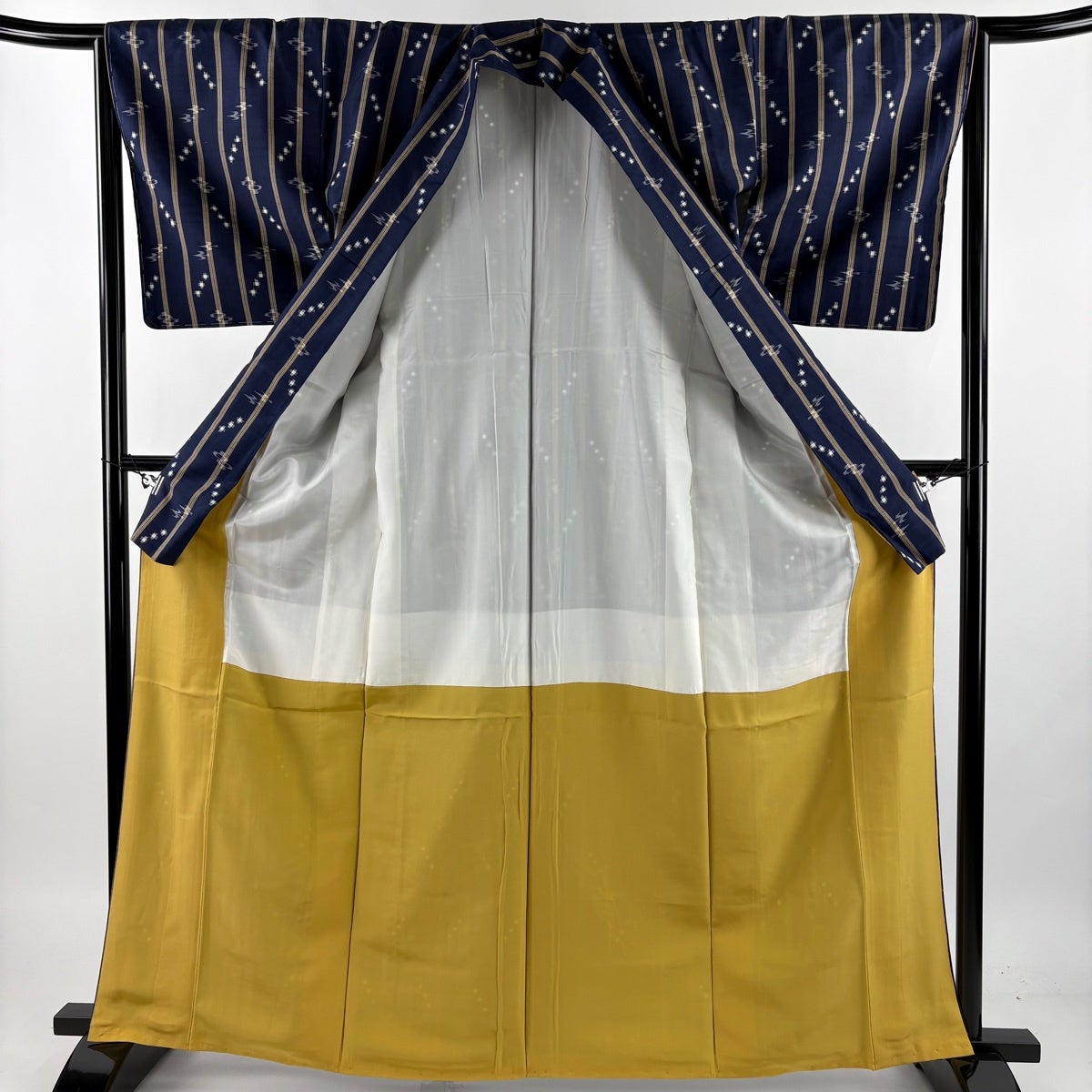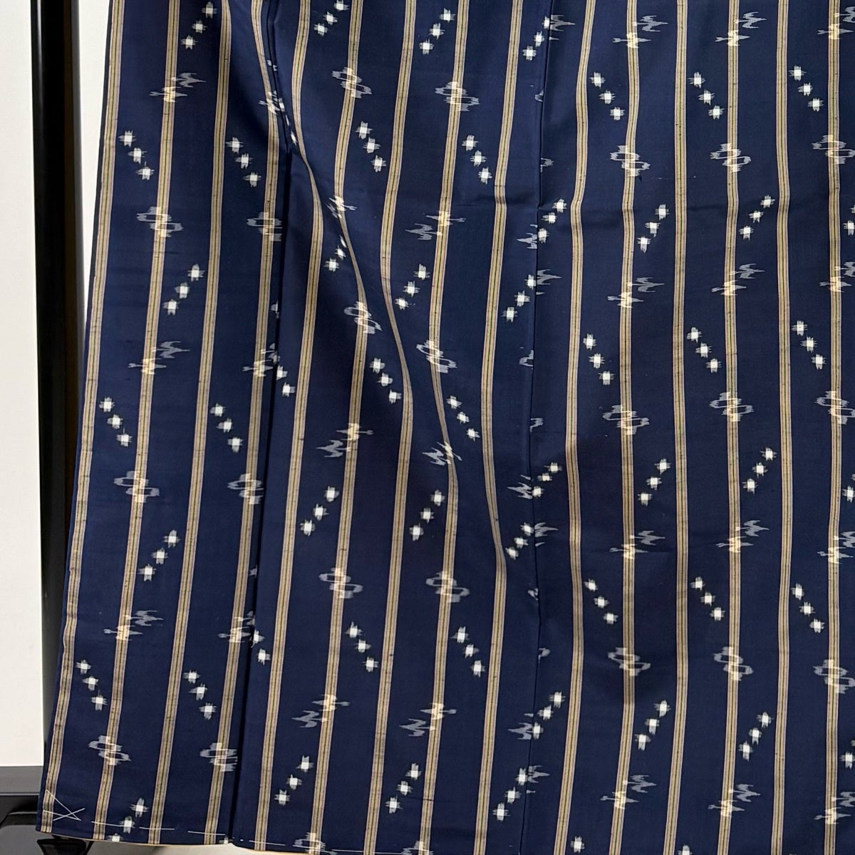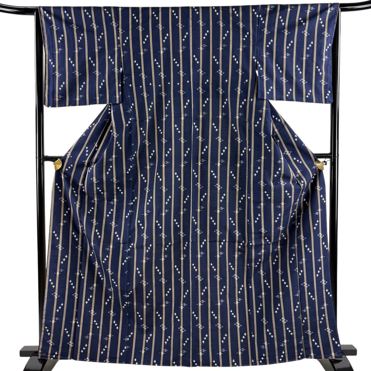 【美品】 名古屋帯 逸品 証紙あり 本場琉球かすり つばめ 縞 濃紺 正絹