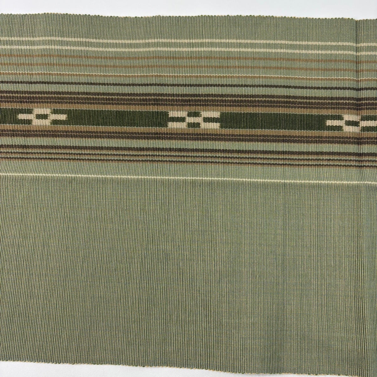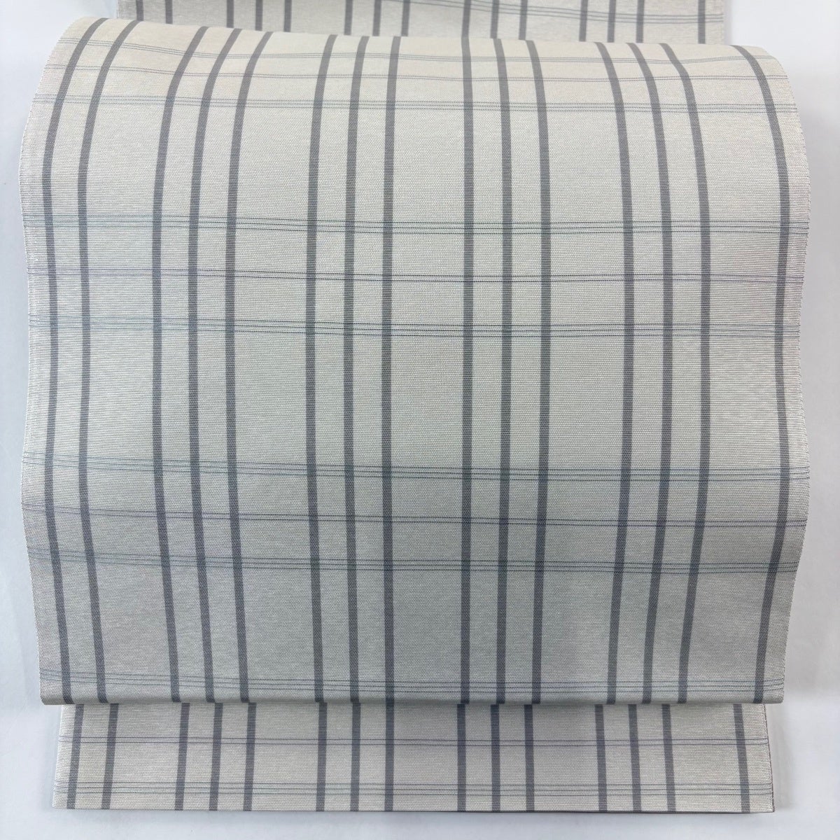 【美品】 名古屋帯 逸品 夏帯 紗 八寸名古屋帯 松葉仕立て 縞 幾何学 灰白 正絹