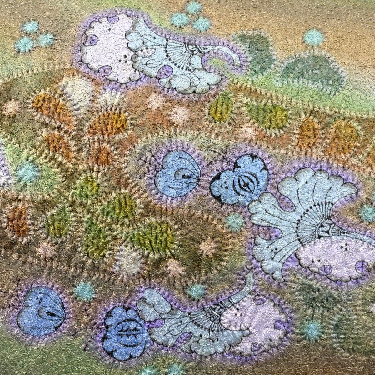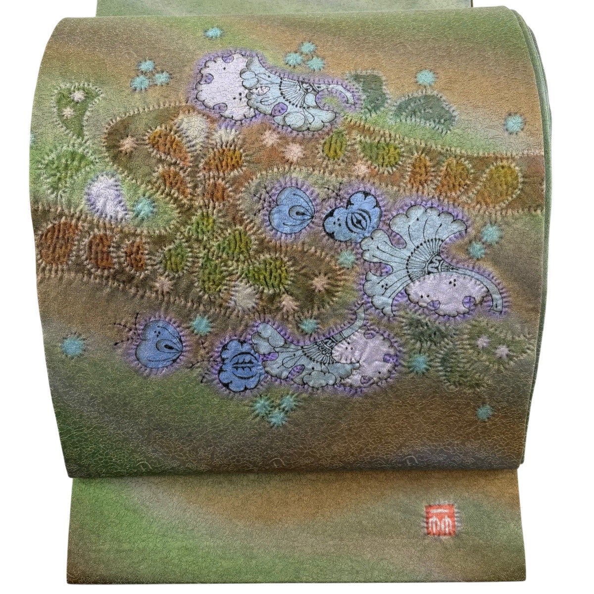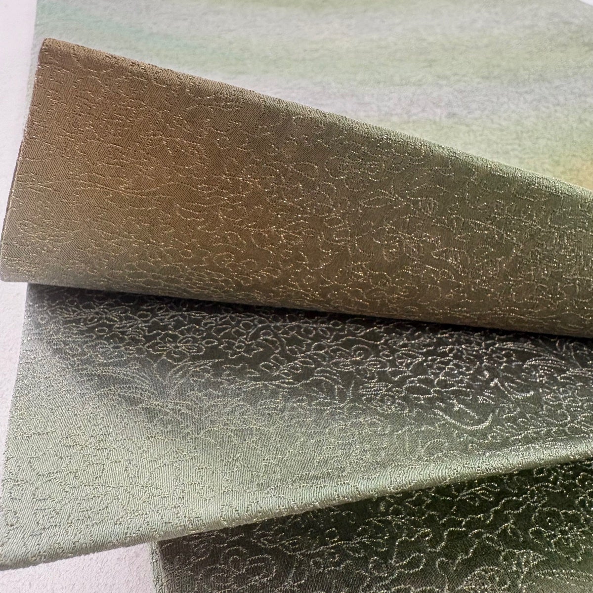 【美品】 袋帯 逸品 久保田一竹工房 落款あり 辻が花 金通し 薄緑 お太鼓柄 正絹