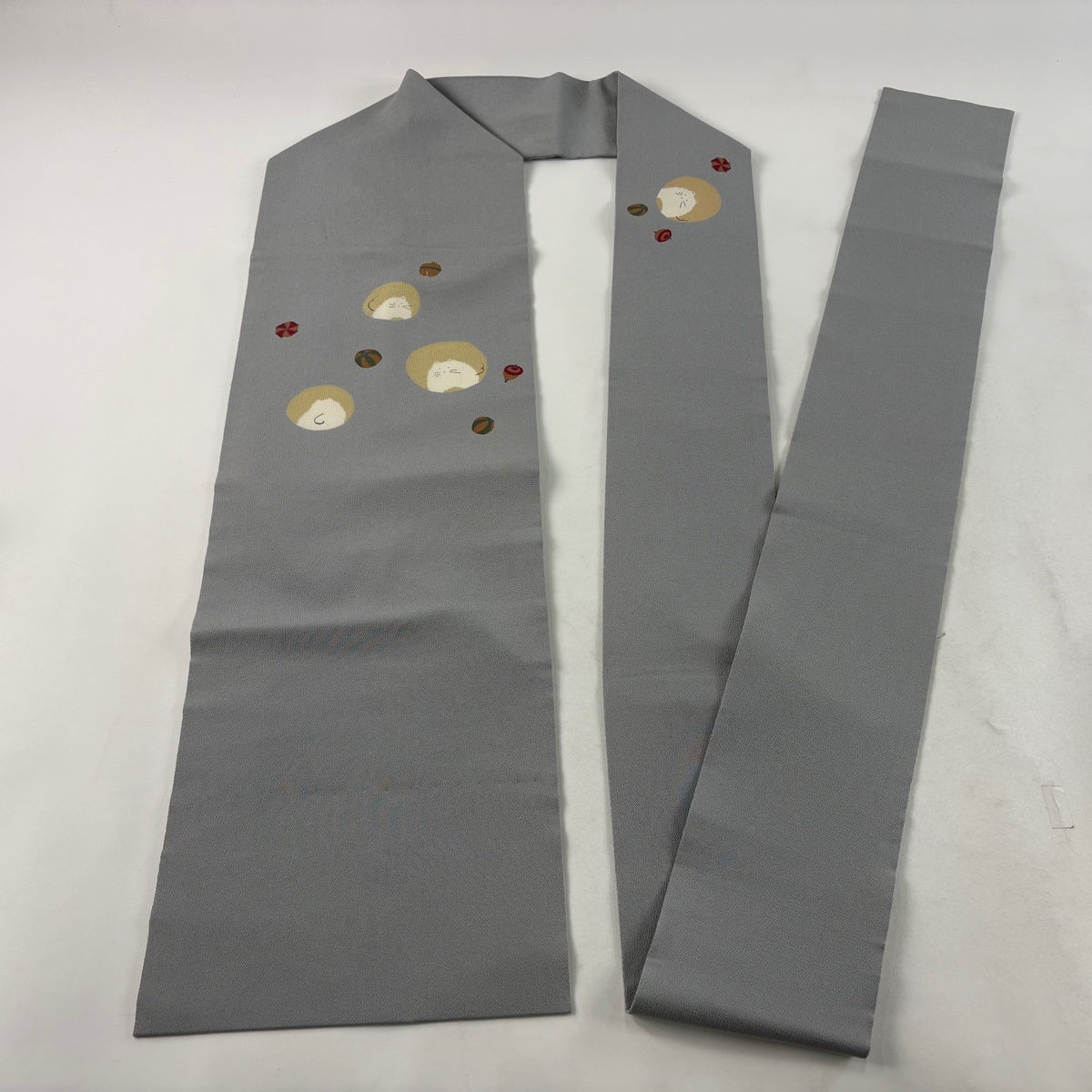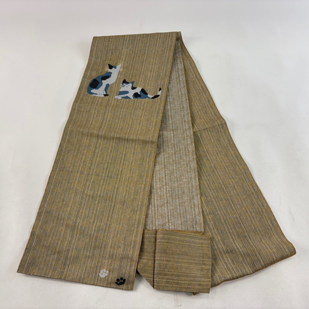 【美品】 名古屋帯 逸品 松葉仕立て 八寸名古屋帯 猫 肉球 山吹茶色 正絹