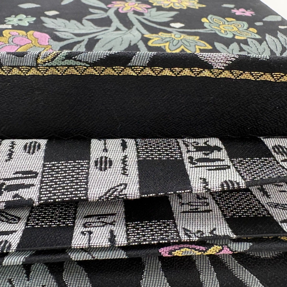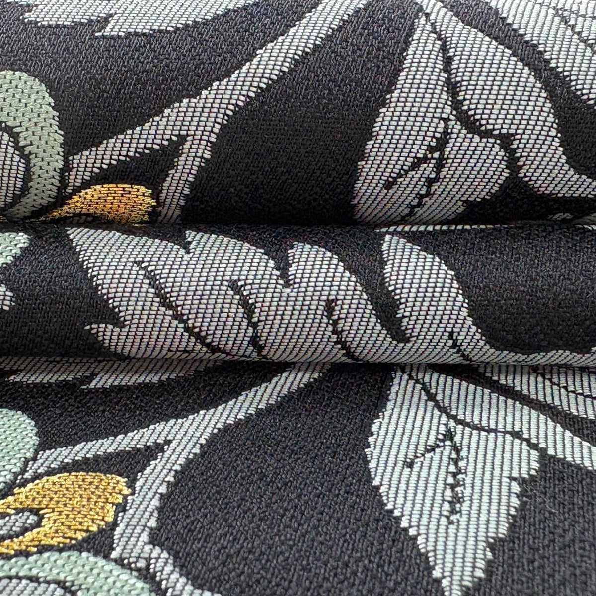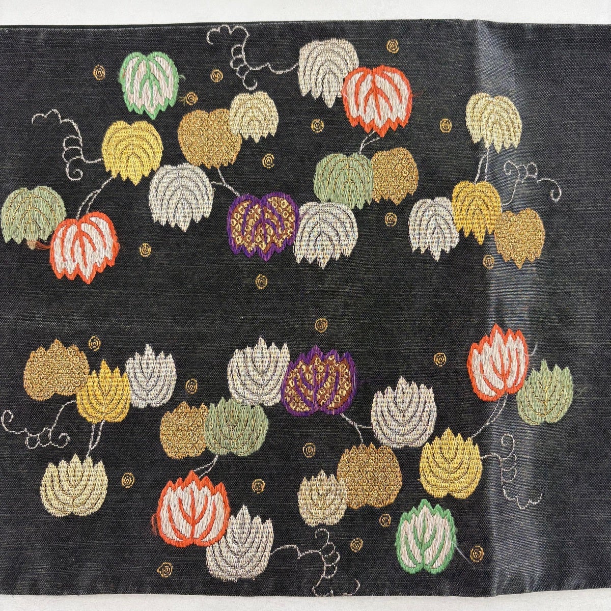 【美品】 袋帯 逸品 花唐草 花 金銀糸 黒 六通 正絹