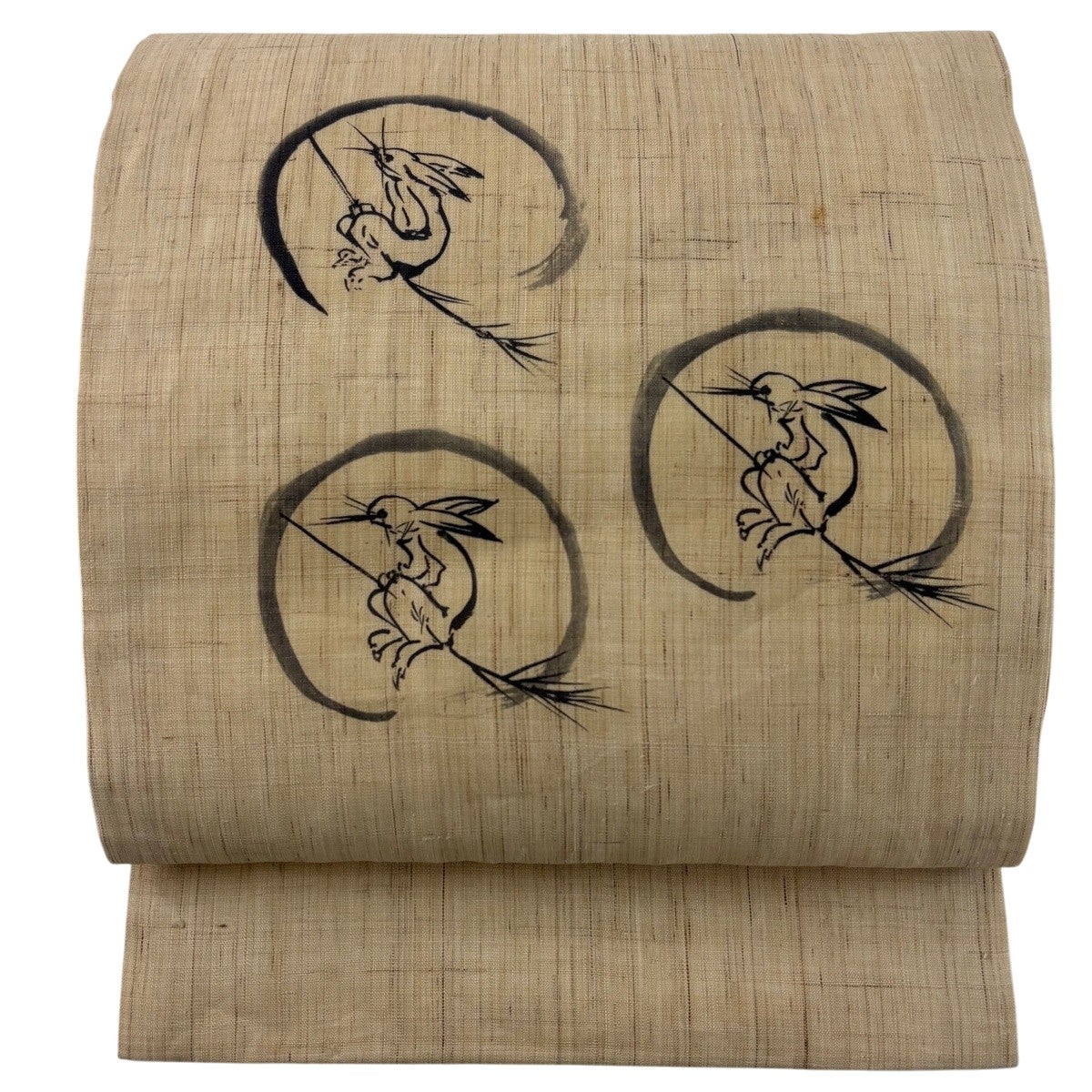 【美品】 名古屋帯 逸品 満月 うさぎ 銀彩 銀糸 黒 正絹