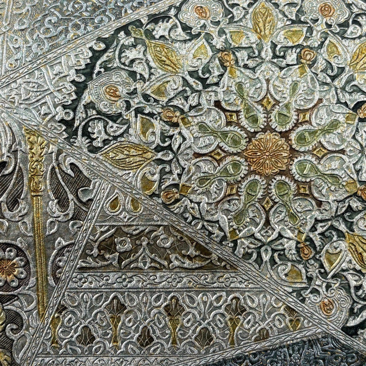 【美品】 袋帯 逸品 菱屋善兵衛 落款あり 抽象柄 銀糸 箔 黒灰 六通 正絹
