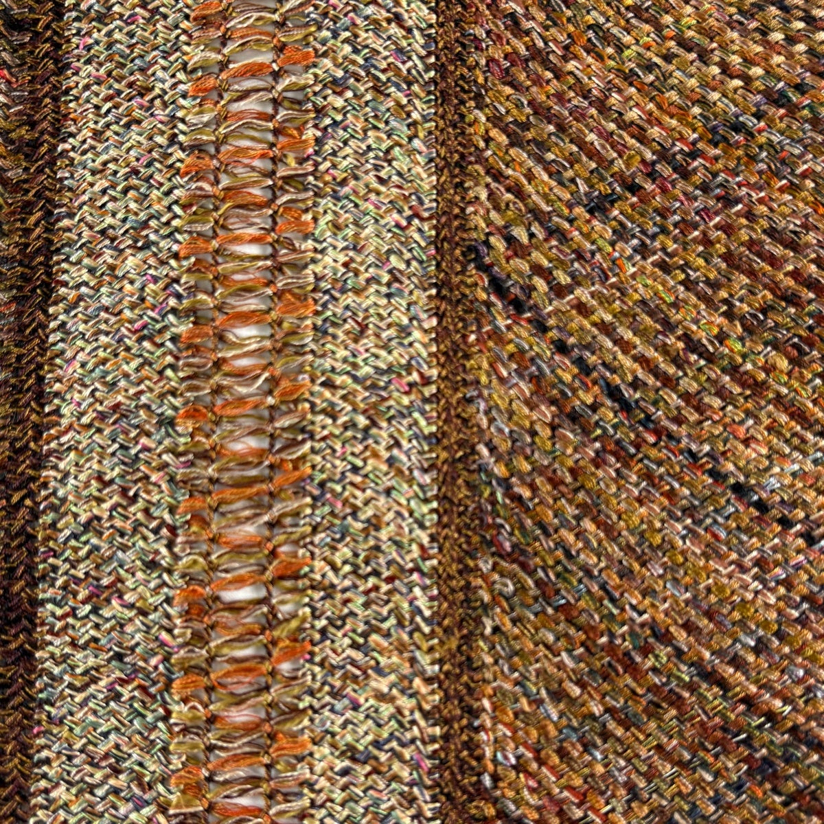 【美品】 袋帯 秀品 縞 斜め格子 茶色 全通 正絹
