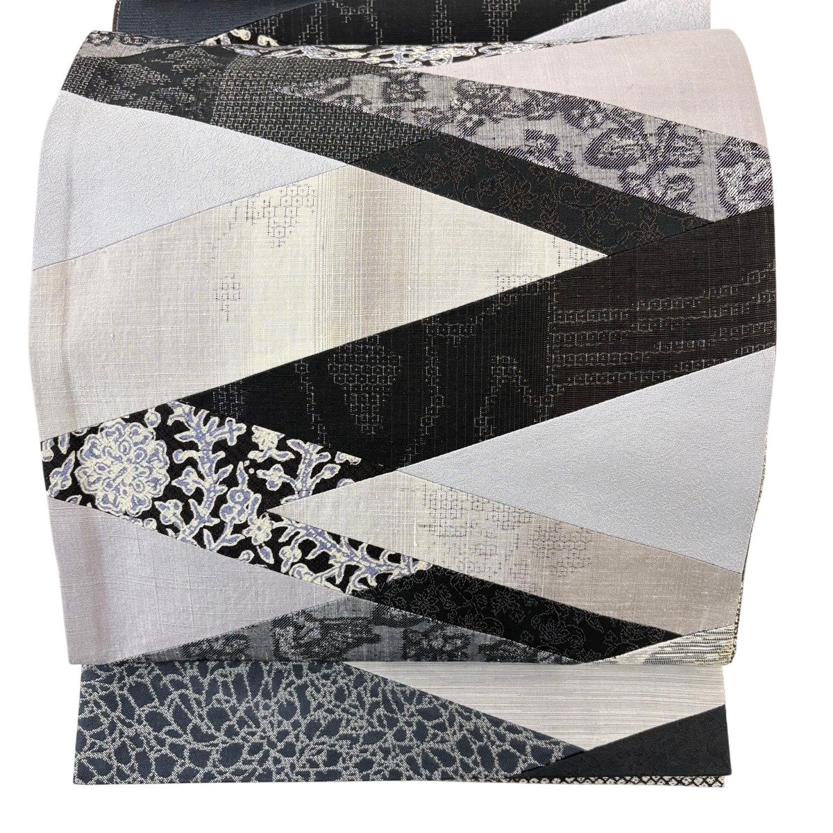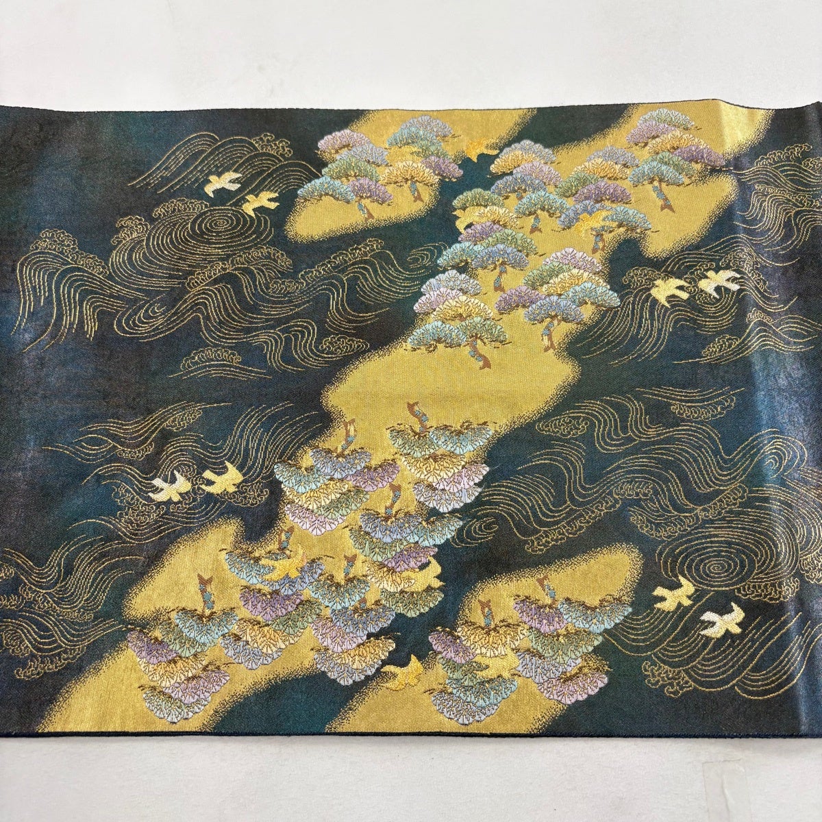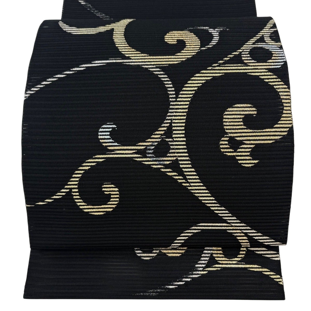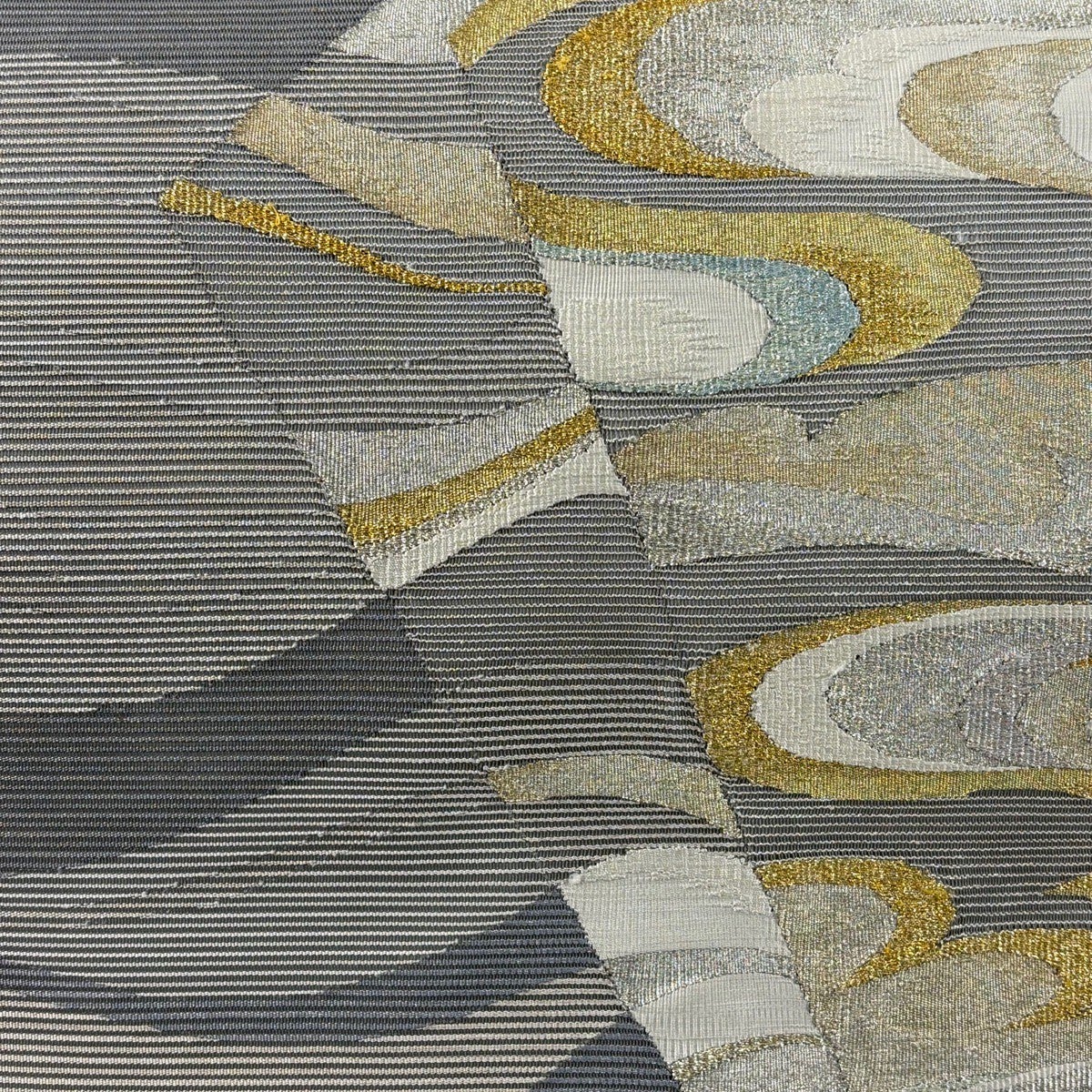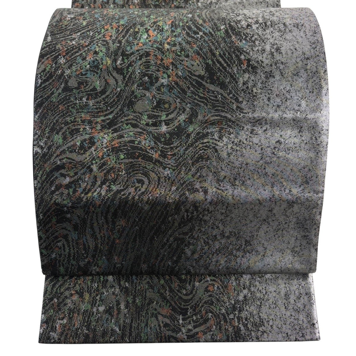 袋帯 秀品 流水 幾何学模様 箔 墨色 六通 正絹