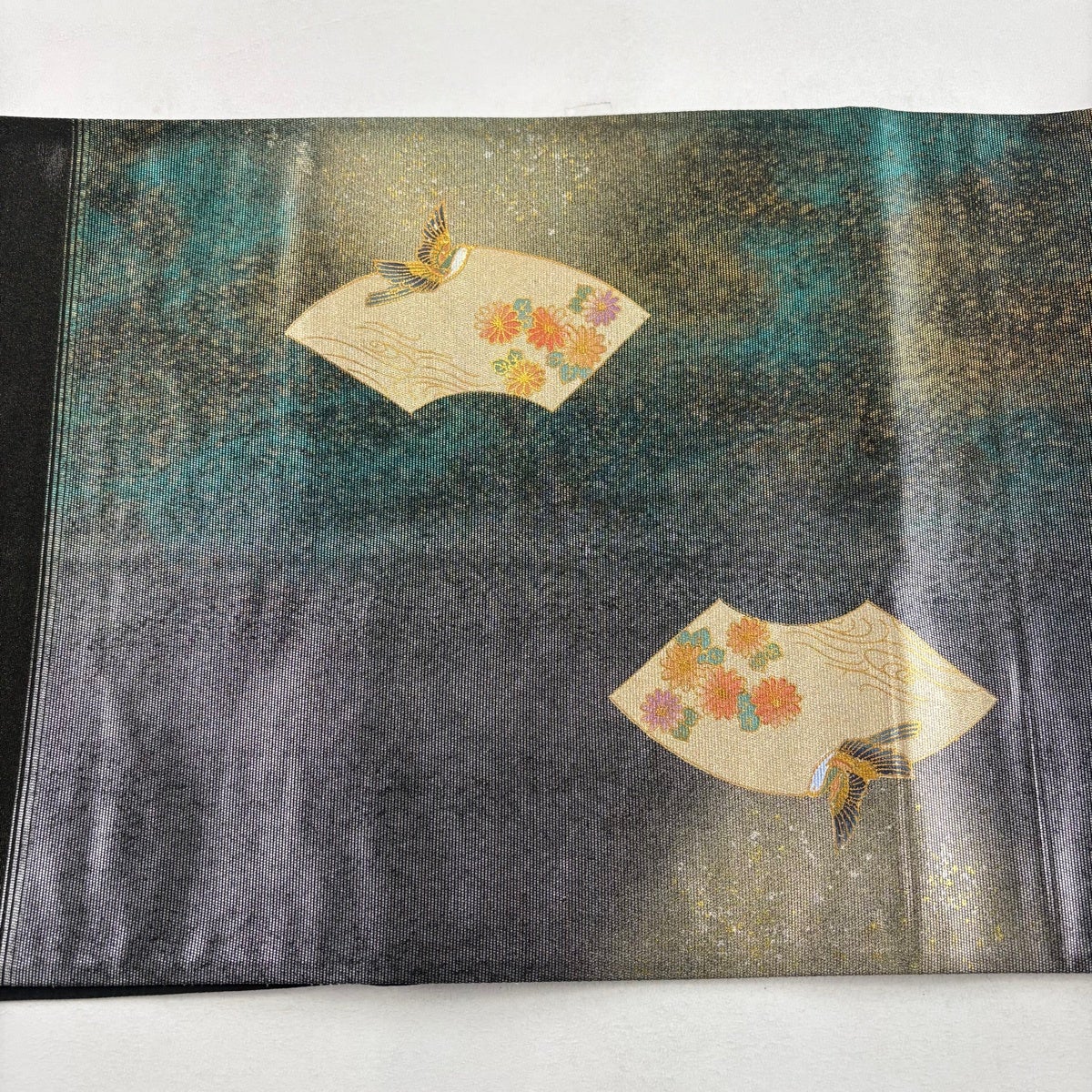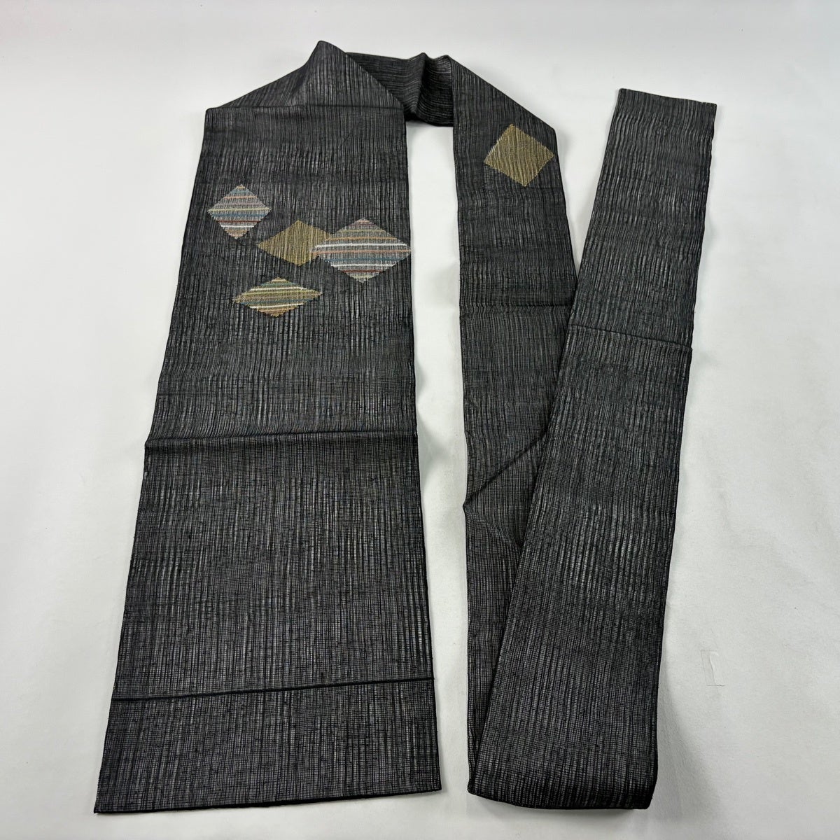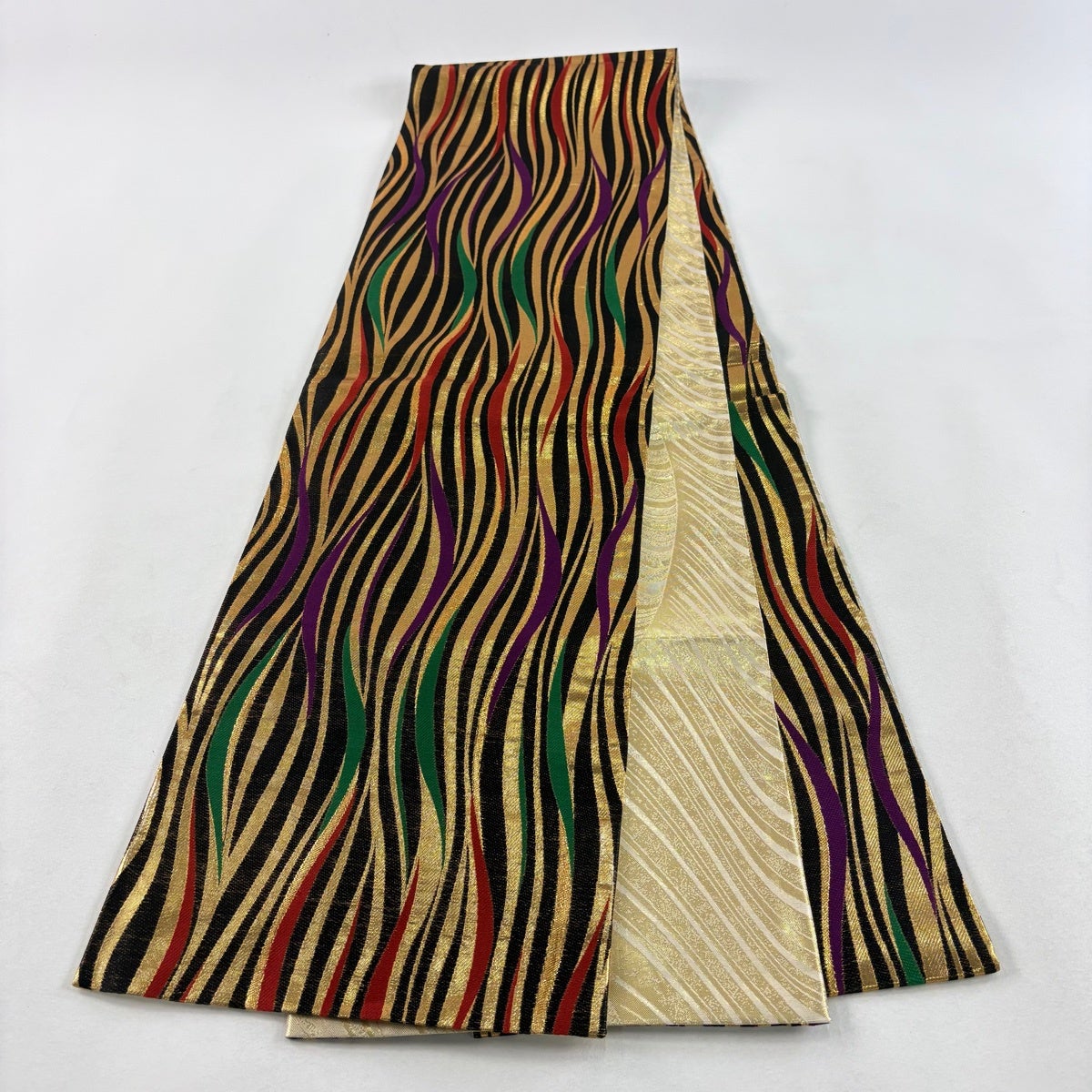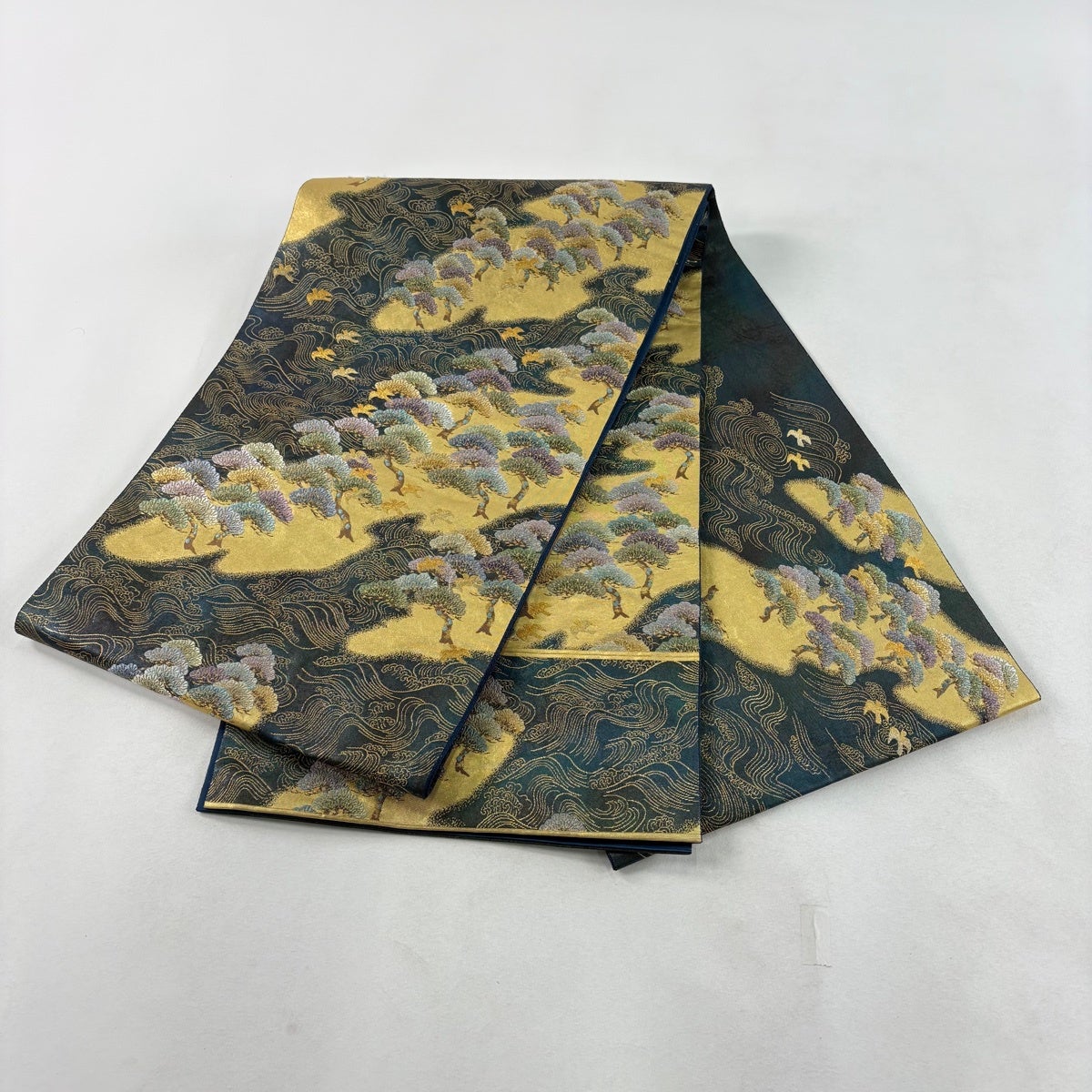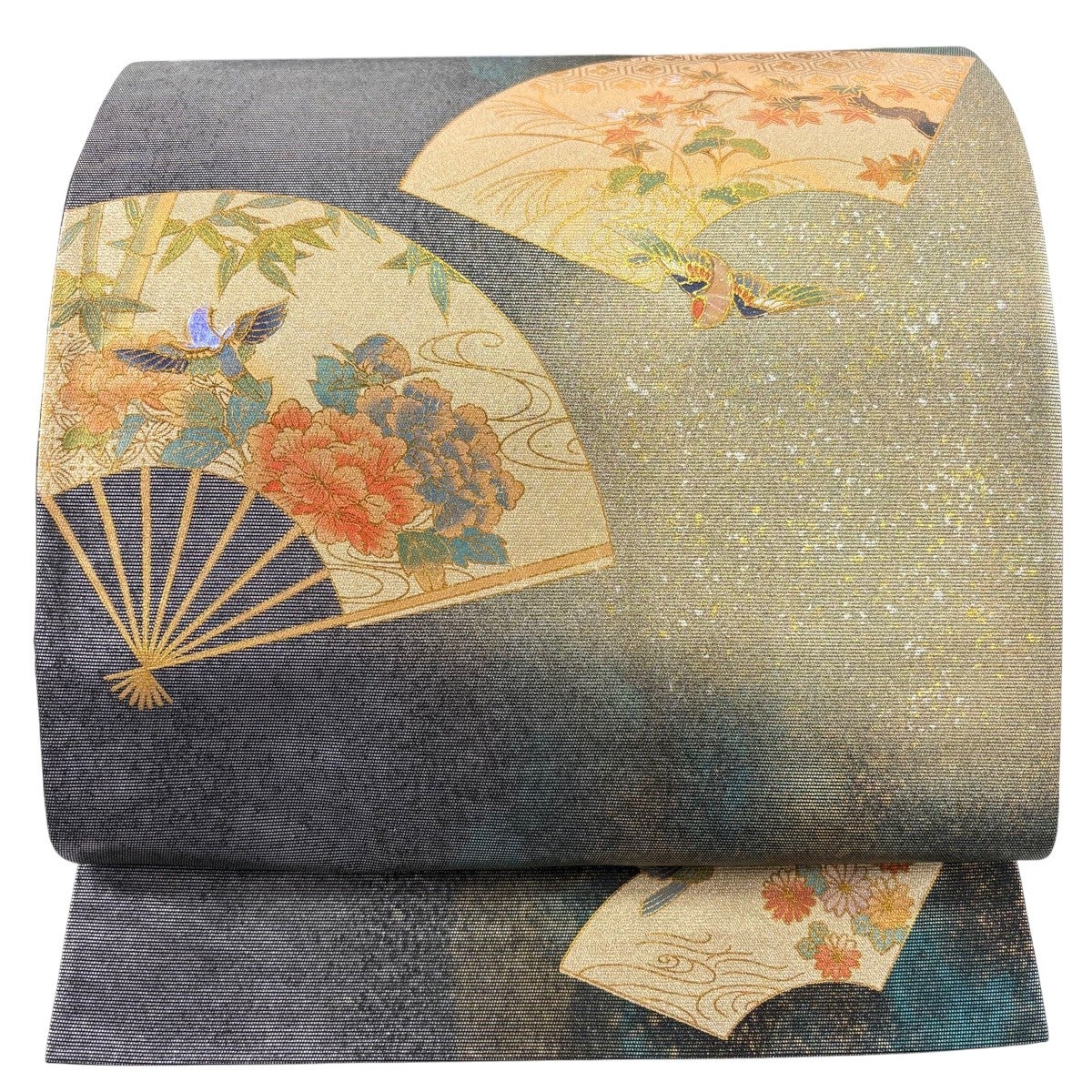 袋帯 秀品 流水 幾何学模様 箔 墨色 六通 正絹