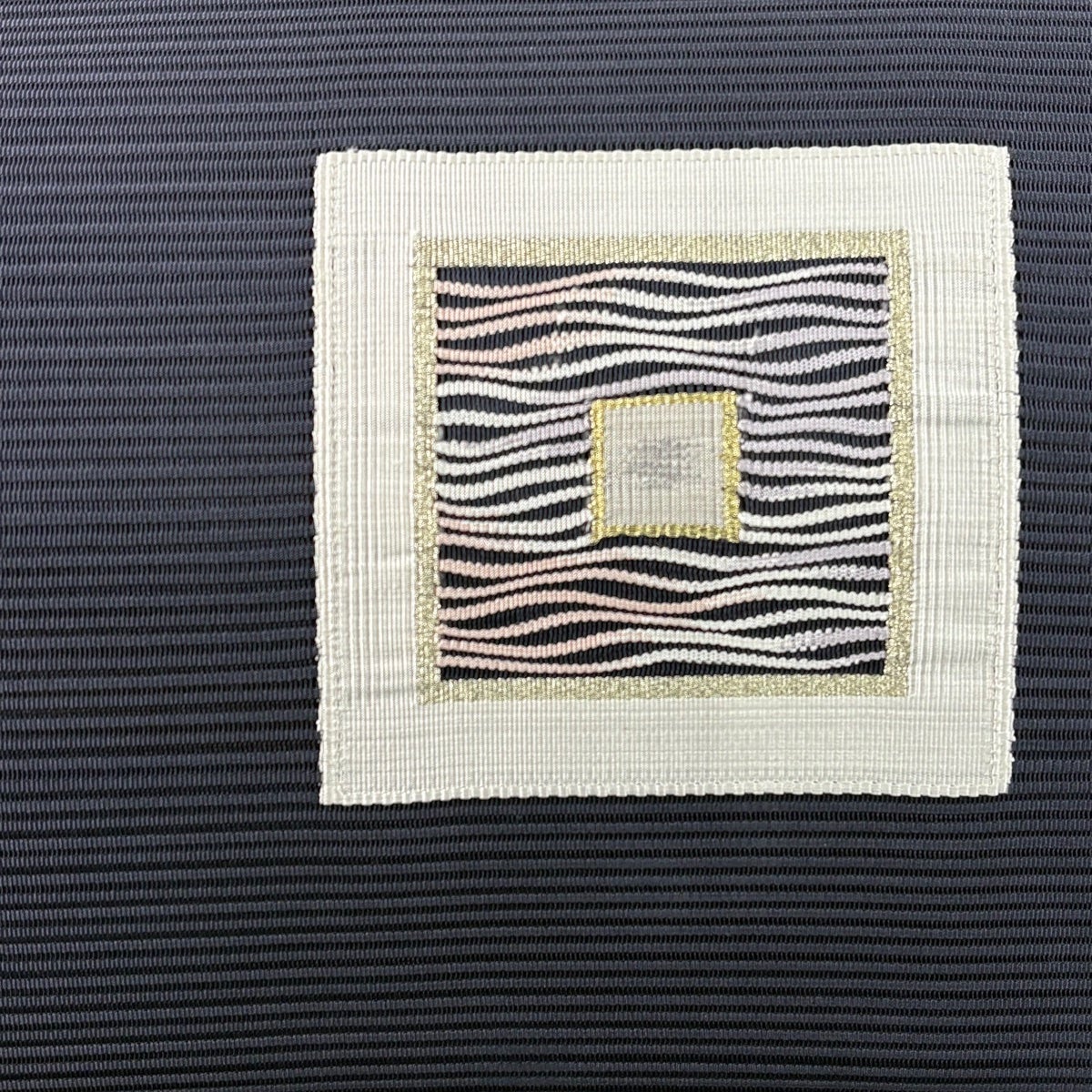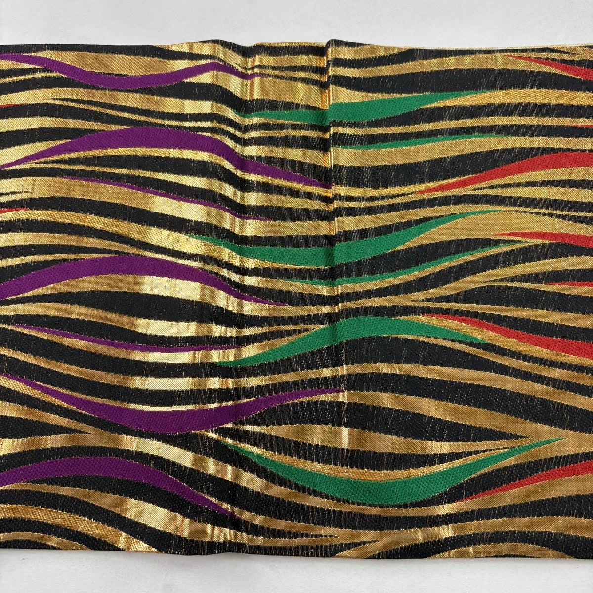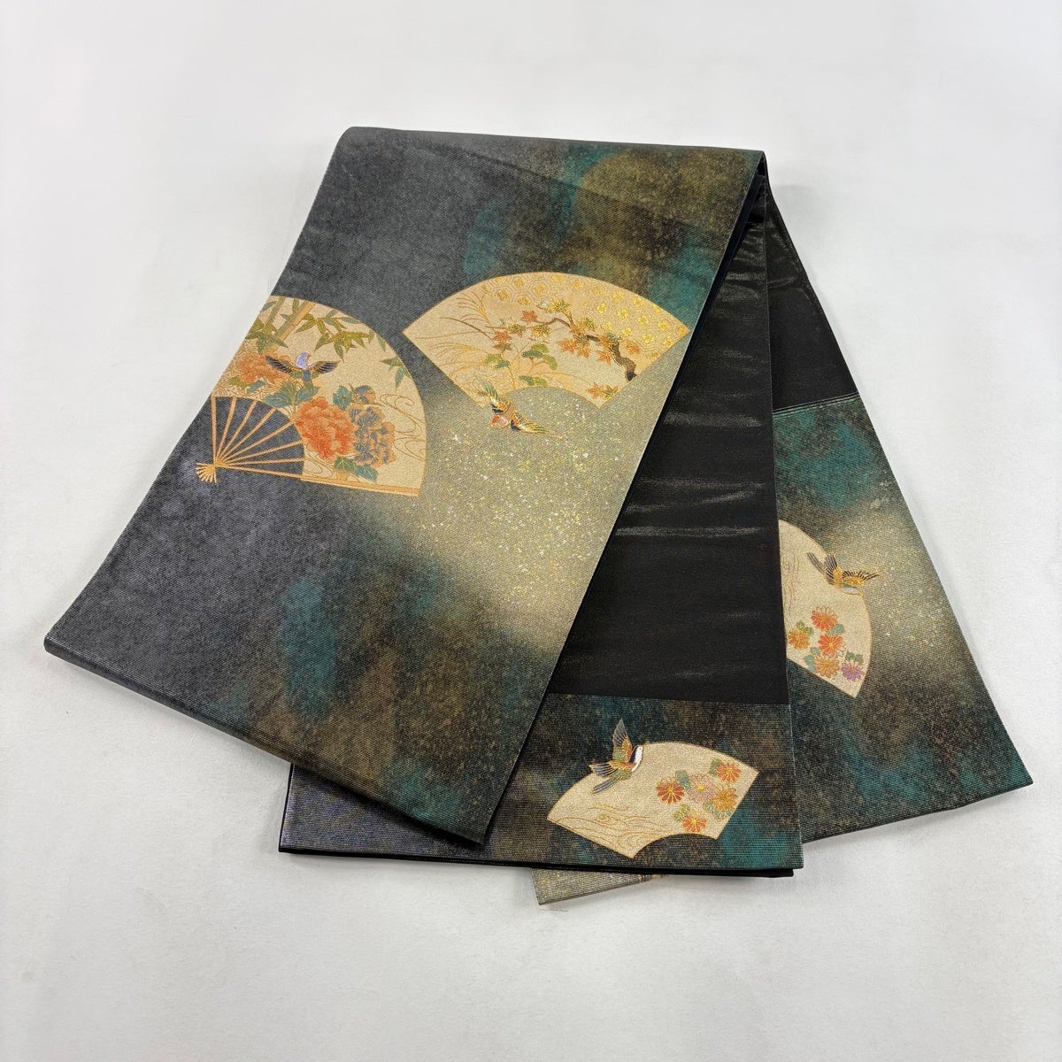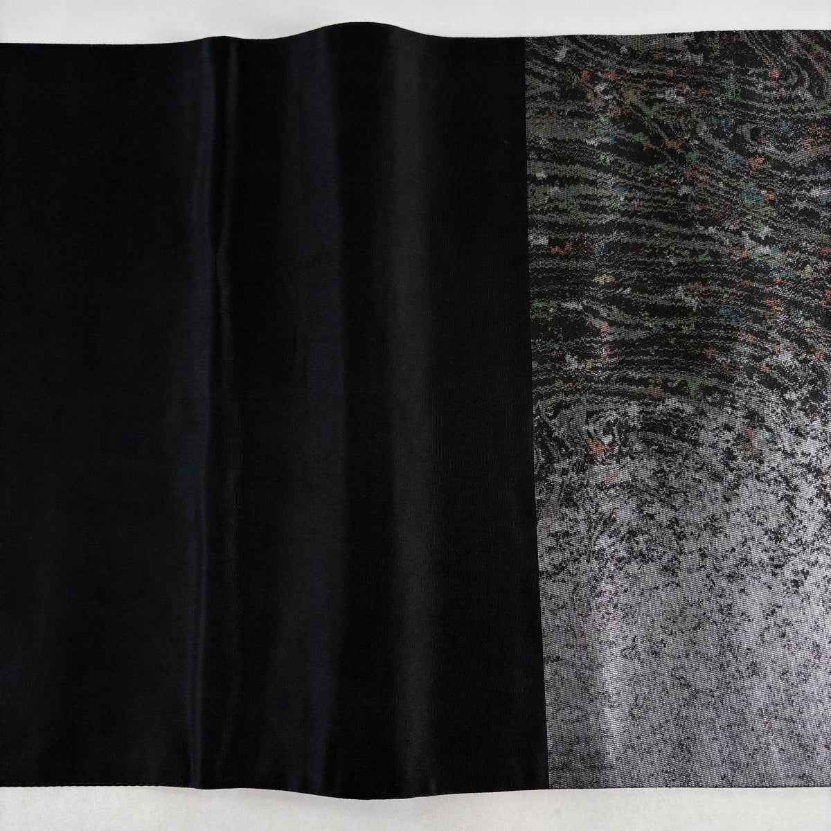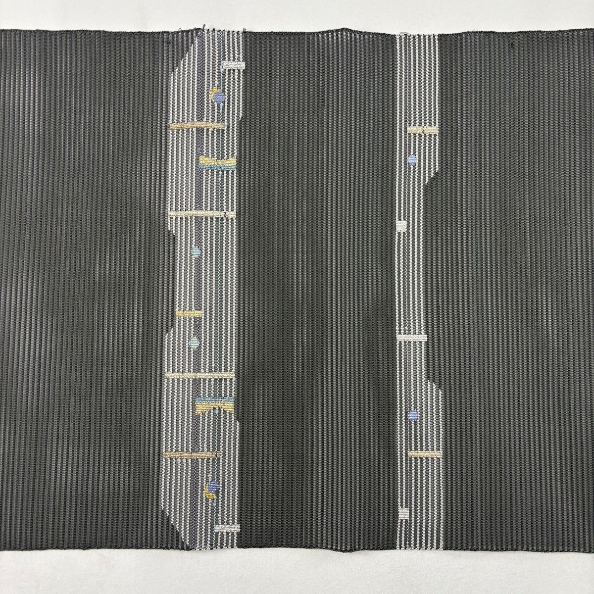 袋帯 秀品 流水 幾何学模様 箔 墨色 六通 正絹