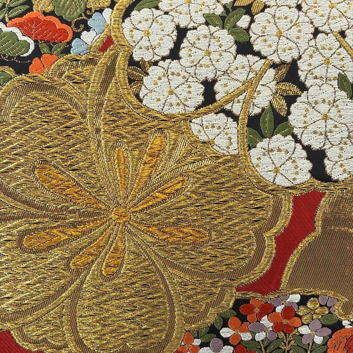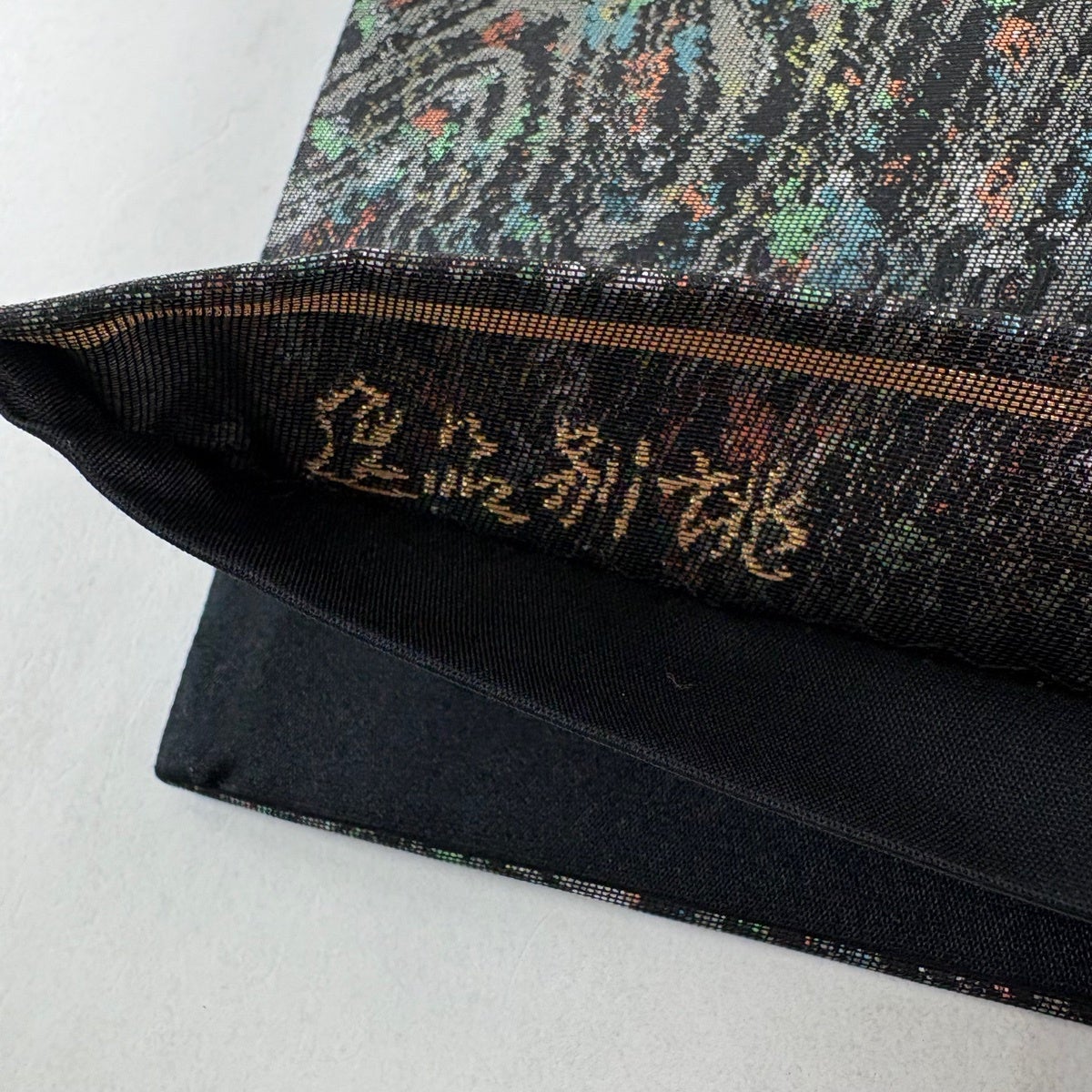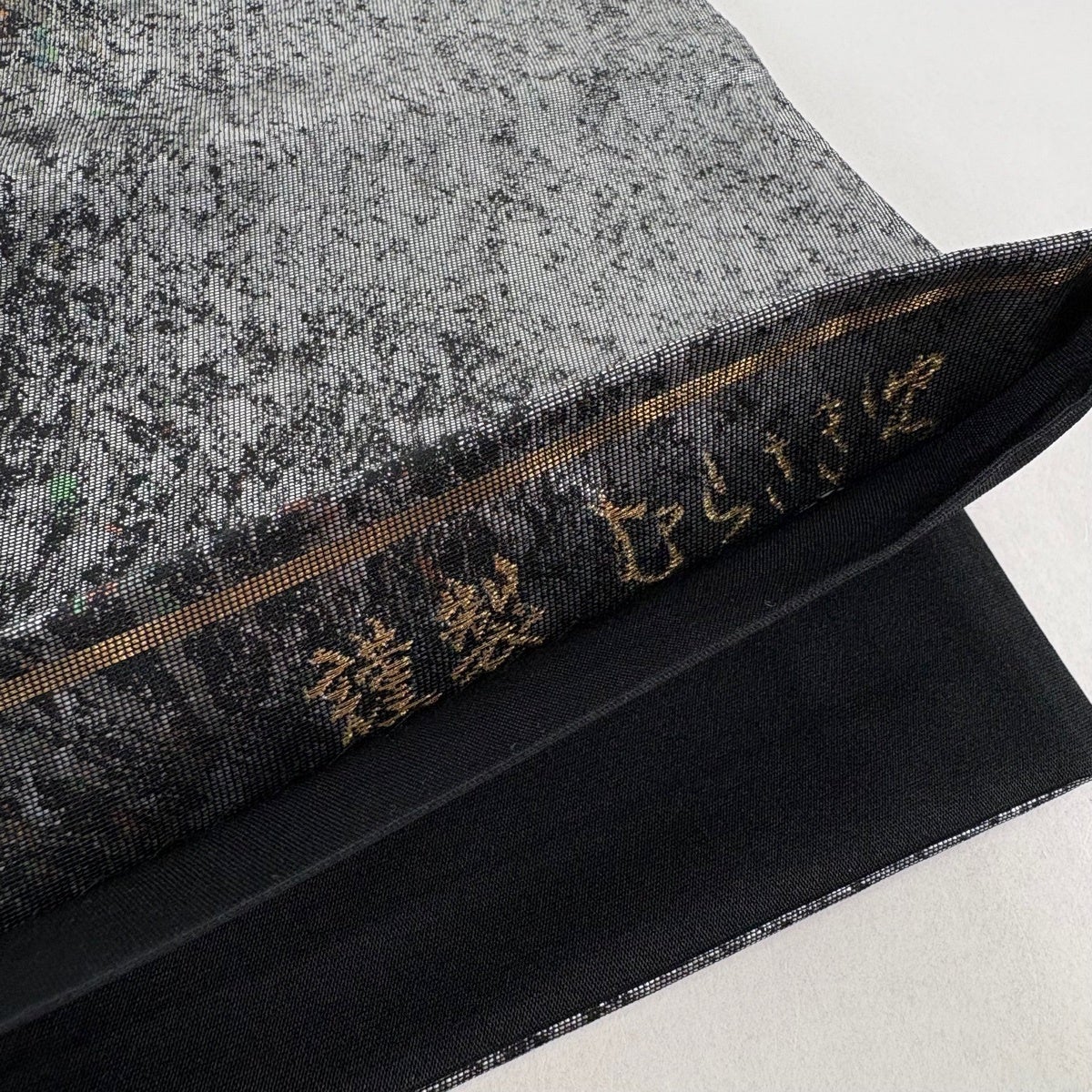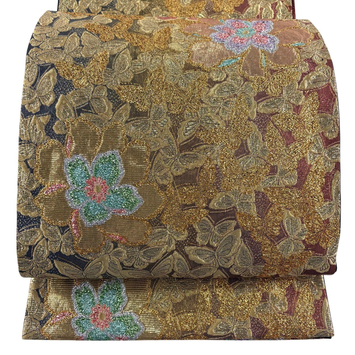 袋帯 秀品 草花 蝶 唐織 箔 黒 六通 正絹
