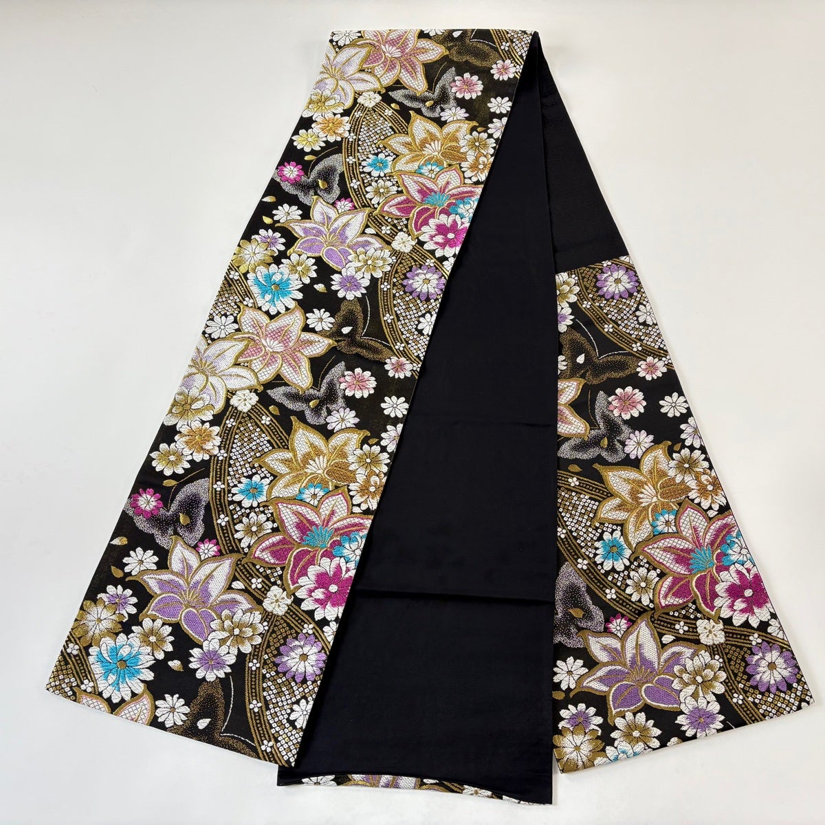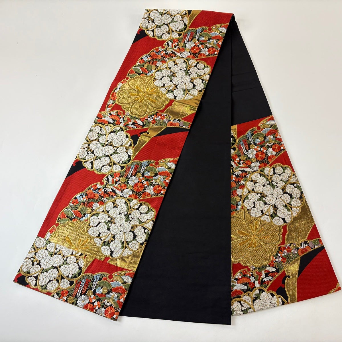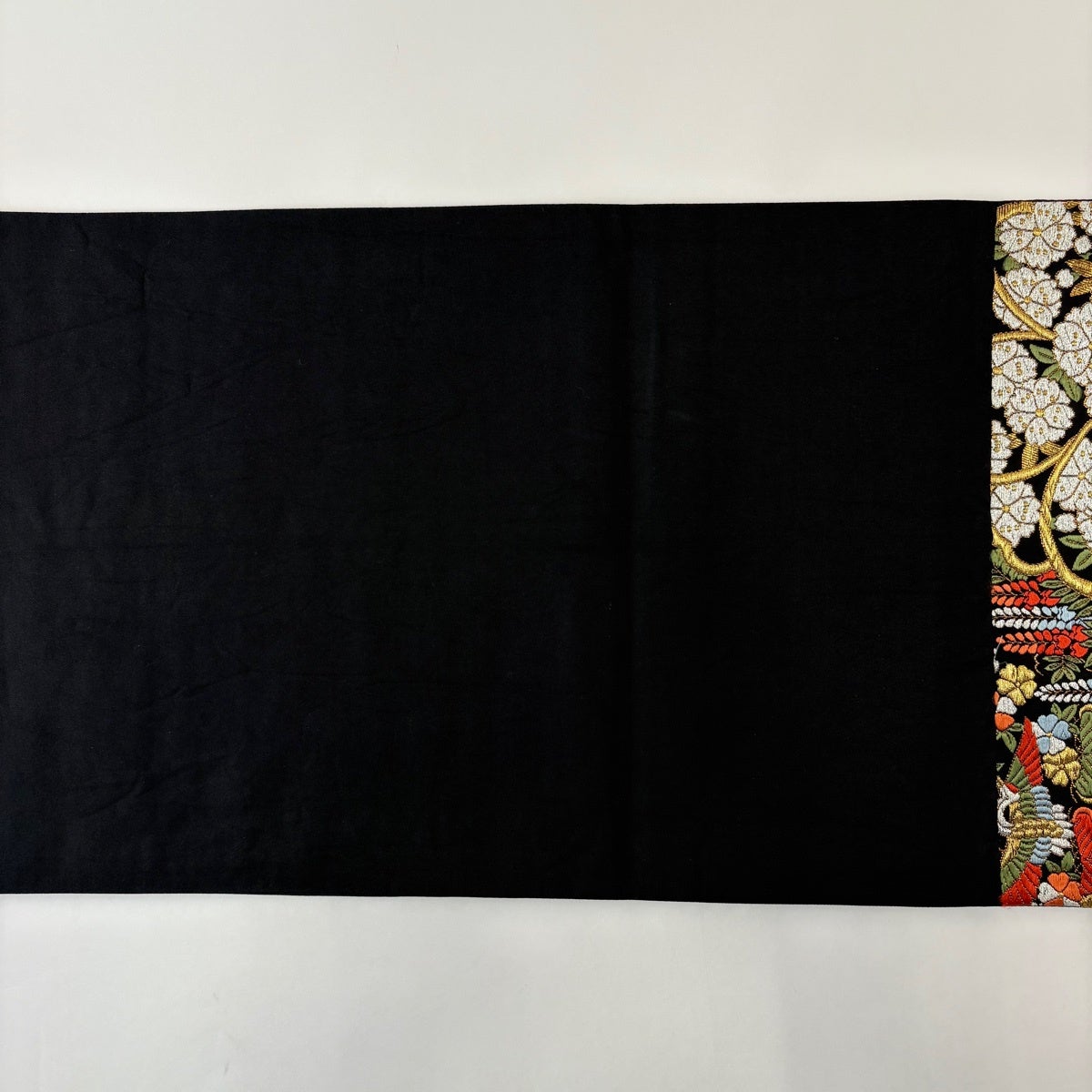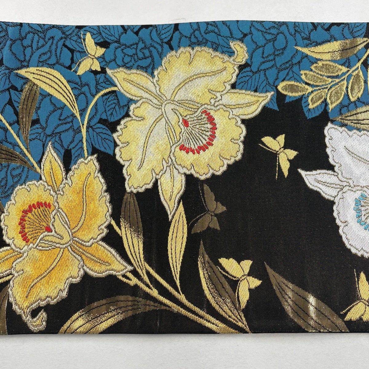 袋帯 秀品 草花 蝶 唐織 箔 黒 六通 正絹