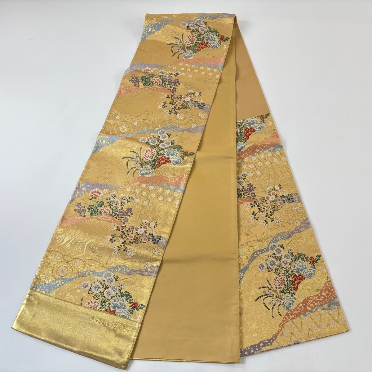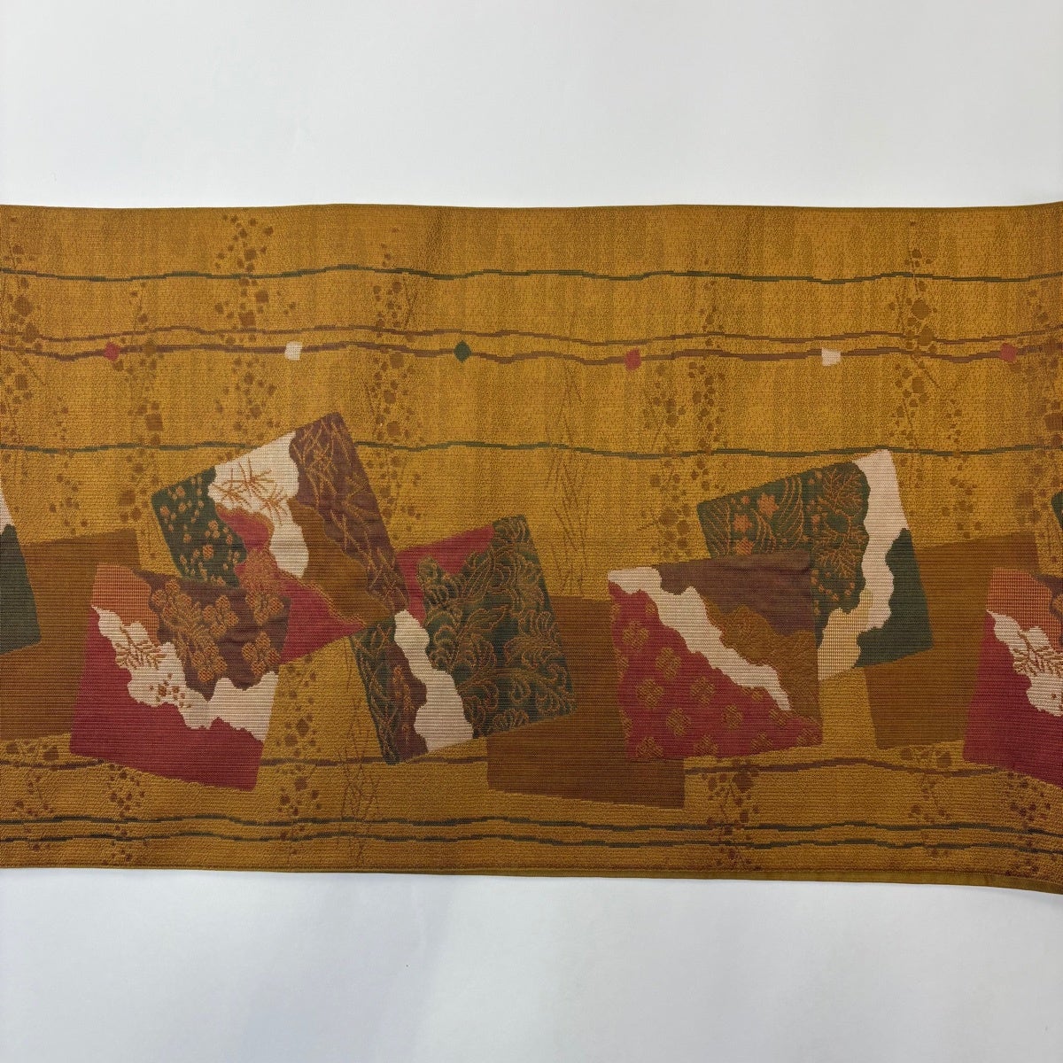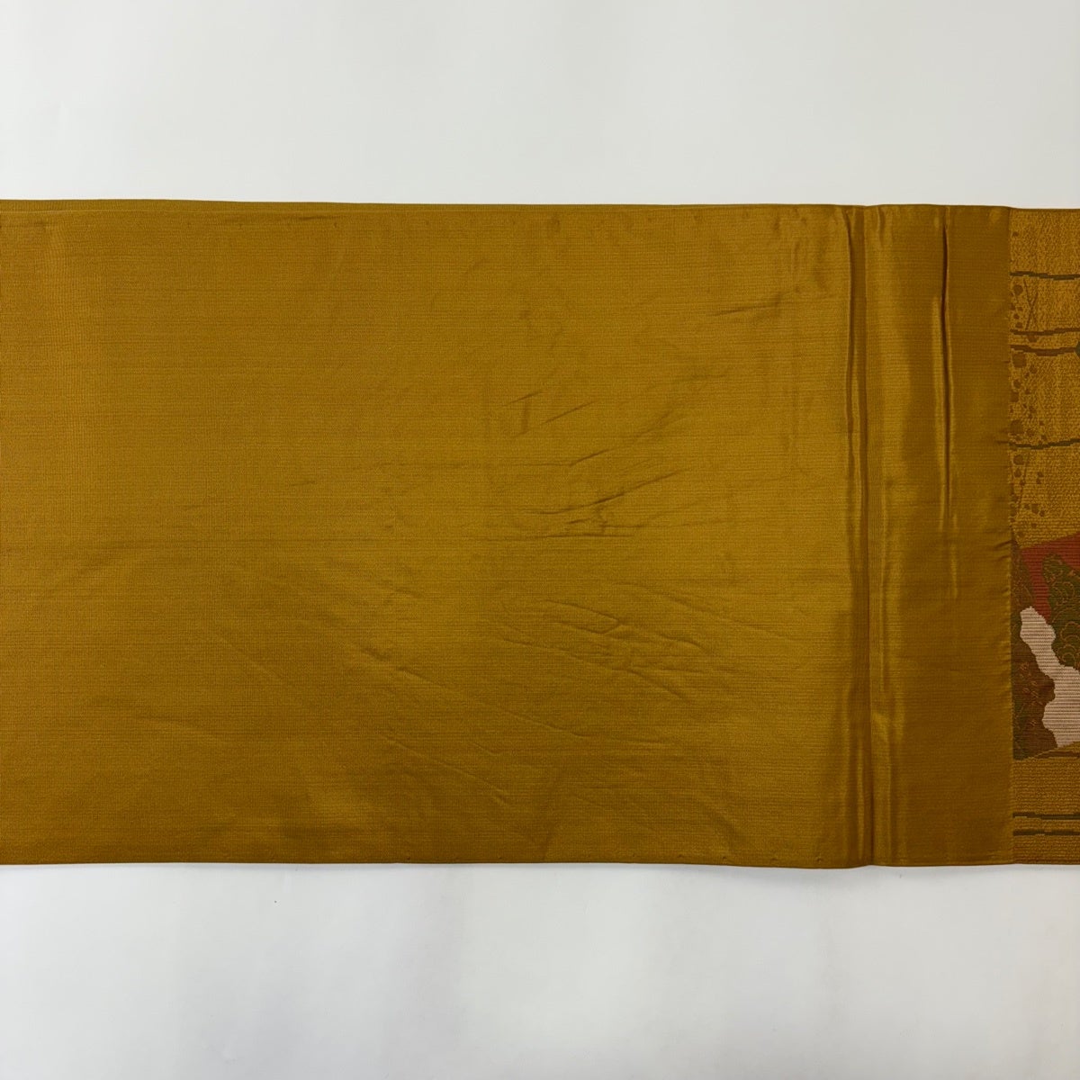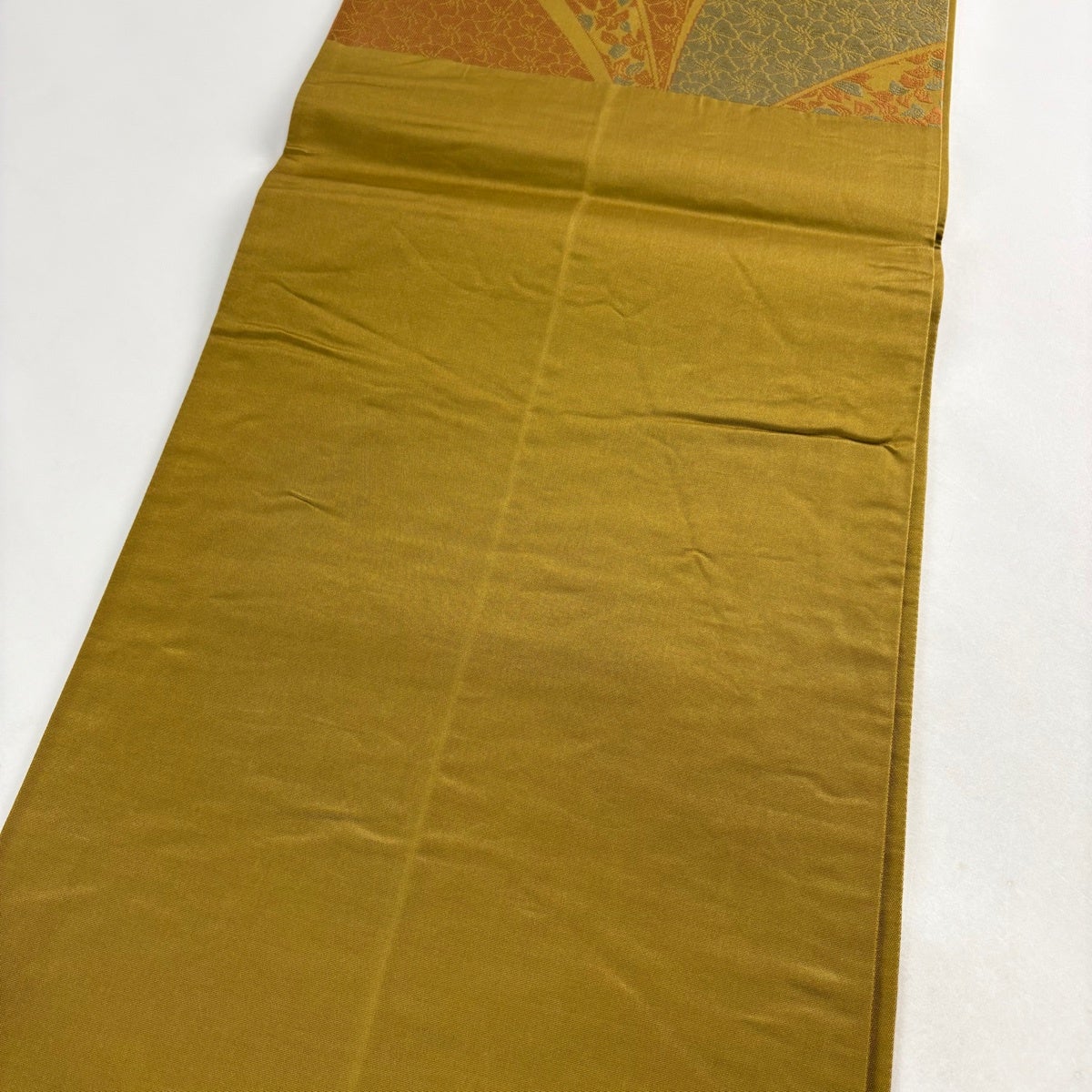 【美品】 袋帯 秀品 色紙 草花 山吹茶色 六通 正絹