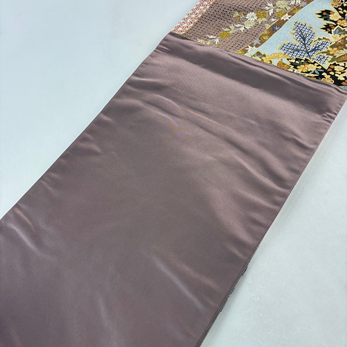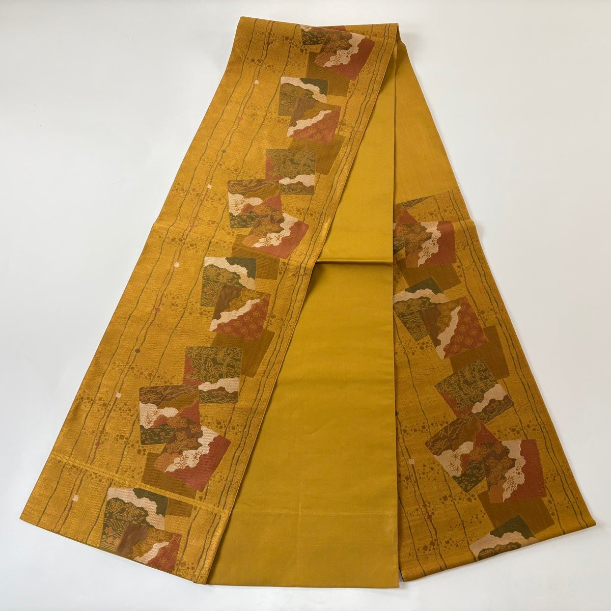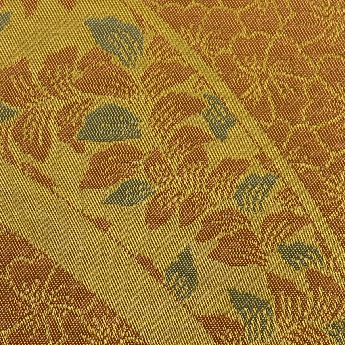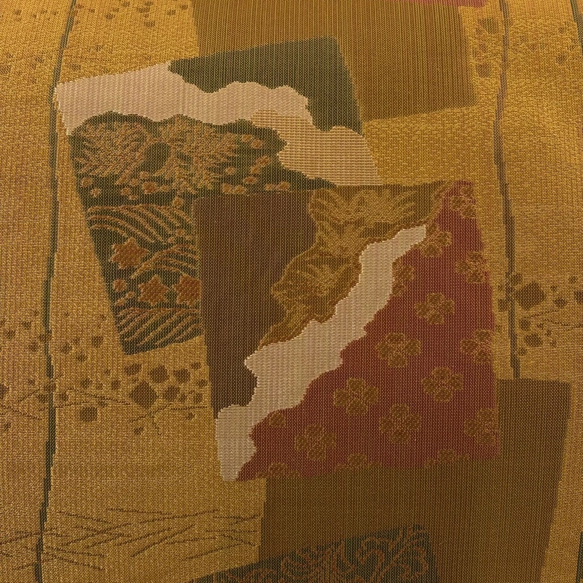 【美品】 袋帯 秀品 色紙 草花 山吹茶色 六通 正絹